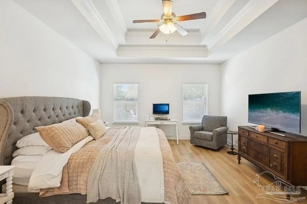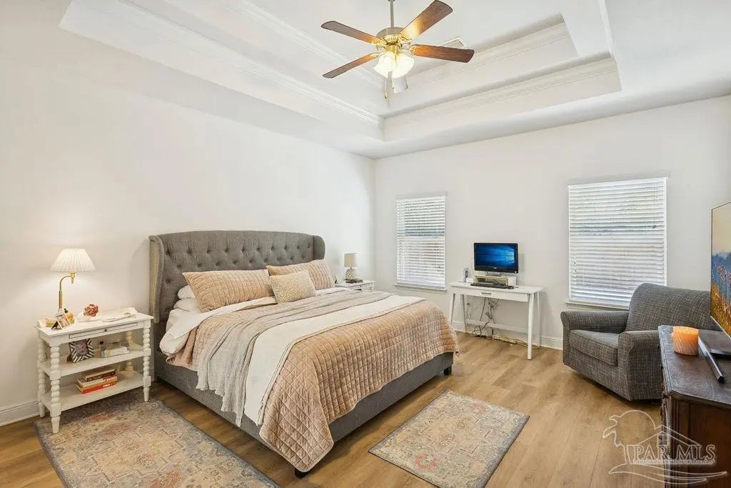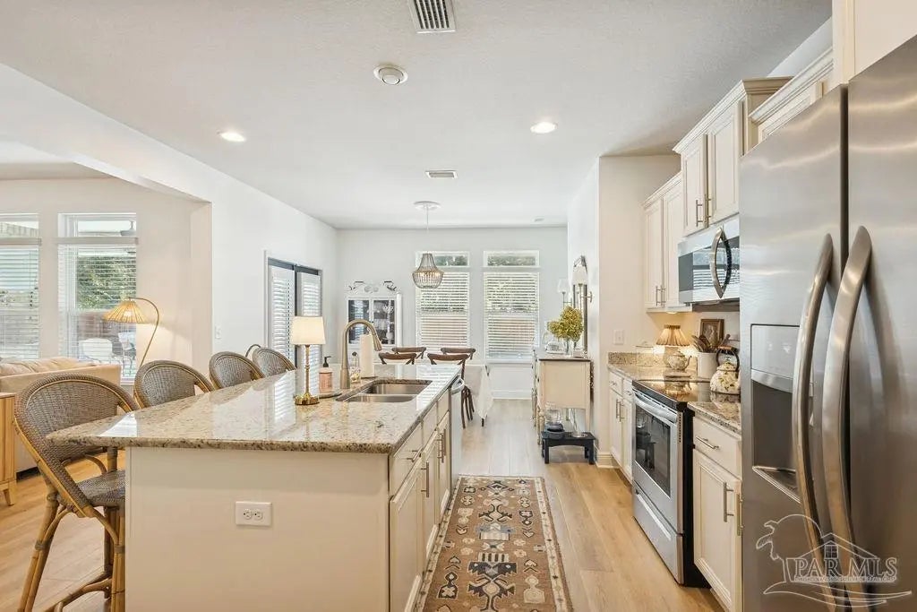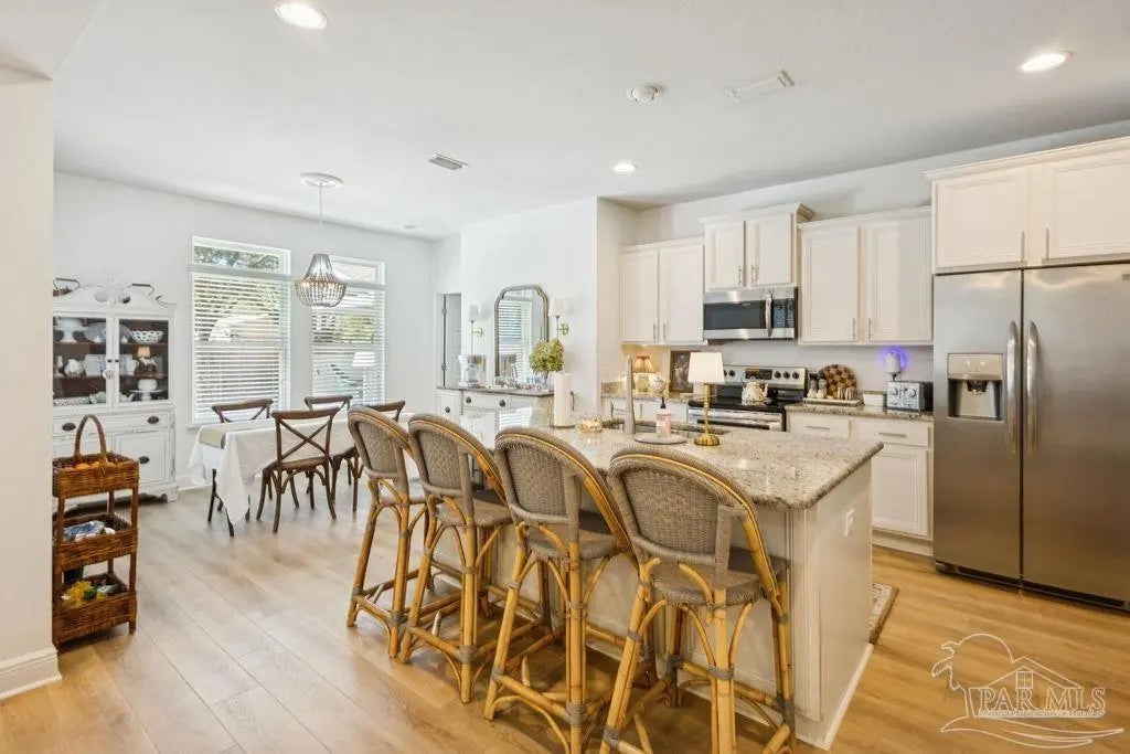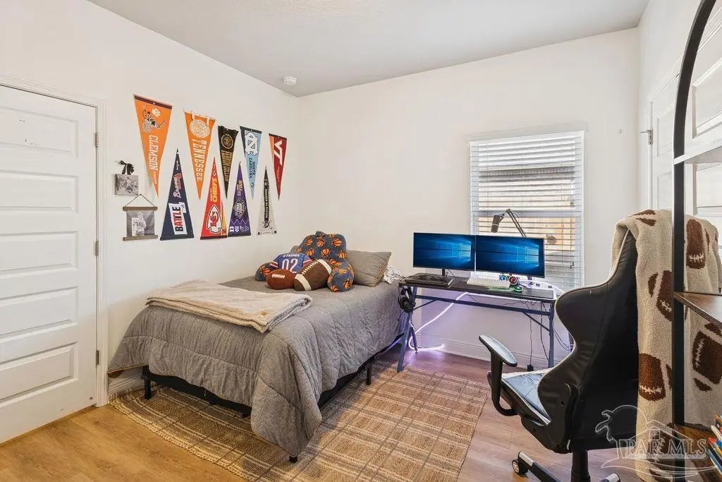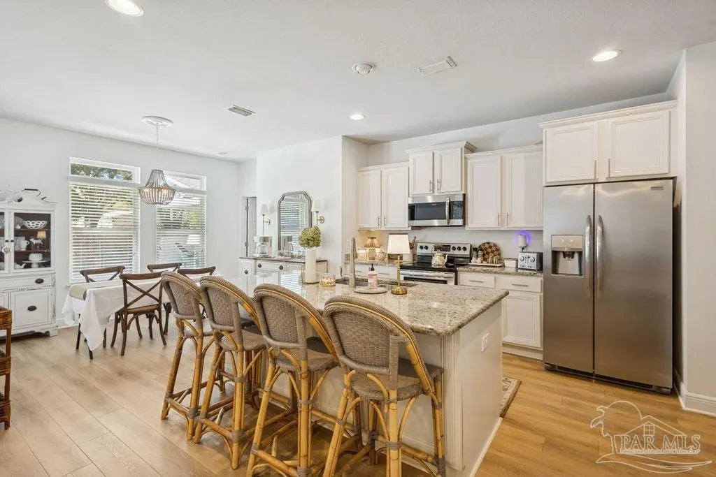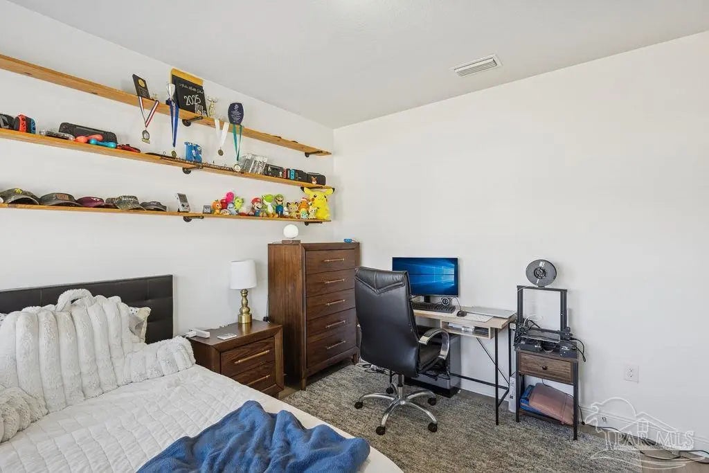 Located in Pace, Florida, this 4-bedroom, 3.5- bath POOL home with a dedicated study offers a functional open floor plan and a backyard designed for everyday enjoyment, complete with an inground pool and outdoor kitchen. Offering a thoughtful split layout with the primary suite privately located at the rear of the home. Two additional bedrooms share a Jack-and-Jill bath, while the fourth bedroom is tucked away with hall access to the third full bath, making it ideal for guests or a private secondary suite. The study provides flexible space for working from home or a quiet retreat. The kitchen includes a large island and opens to the great room with a double tray ceiling and designer ceiling fan. Double French doors connect the breakfast area to the covered back porch, creating easy indoor-outdoor living that leads to the pool and outdoor kitchen. Additional highlights include luxury vinyl plank flooring throughout, fresh interior paint, a shiplap accent wall in the dining area, gutters, and full irrigation. Conveniently located just minutes from shopping, dining, and local parks, this home is move-in ready and offers comfort, space, and functionality in a desirable Pace location.