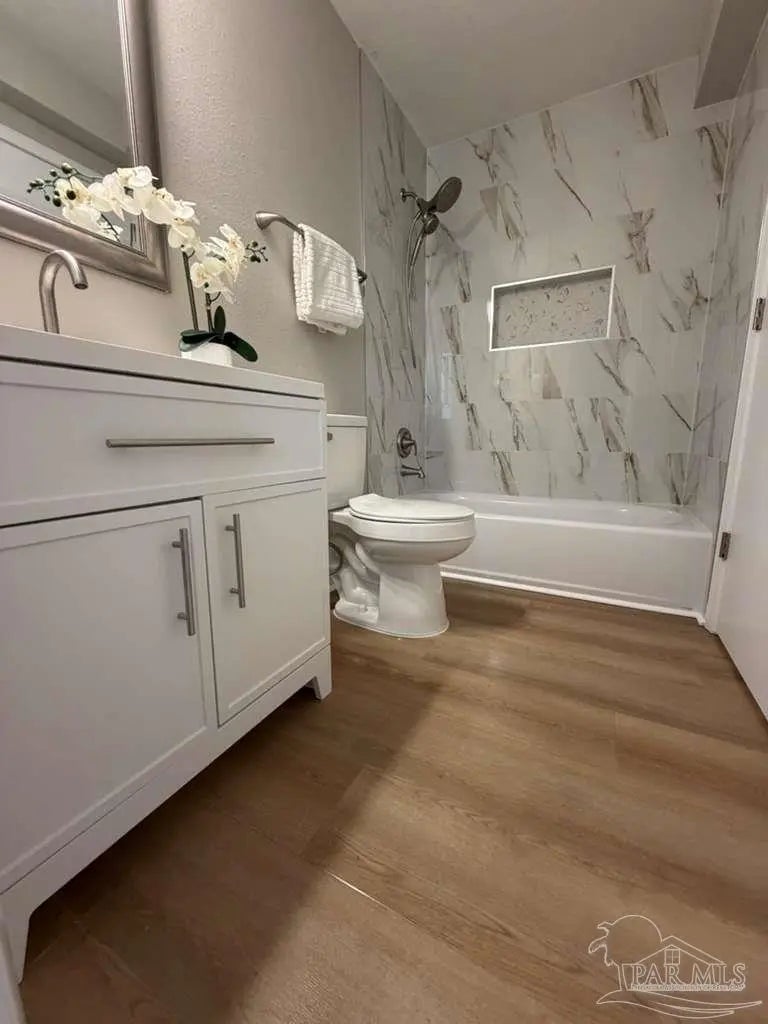 Professional Photos- Show and sell>> Newly Updated 3 bedroom, 2 bath home in Cantonment. New Paint, Flooring throughout, New Updated Kitchen with Granite and new Stainless Appliances, lighting throughout home, New door knobs & hinges, Updated bathrooms.. .30 Acre. Come visit us and see if this can be your next home!! 2025 Ac being installed,2025 Hot Water Heater 2024 Roof to be verified.