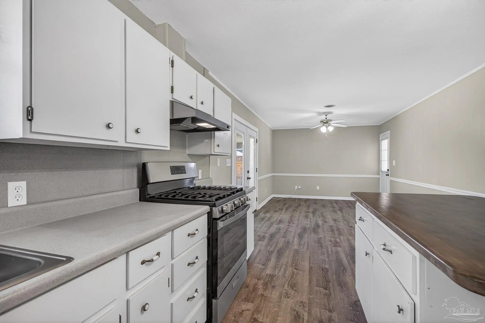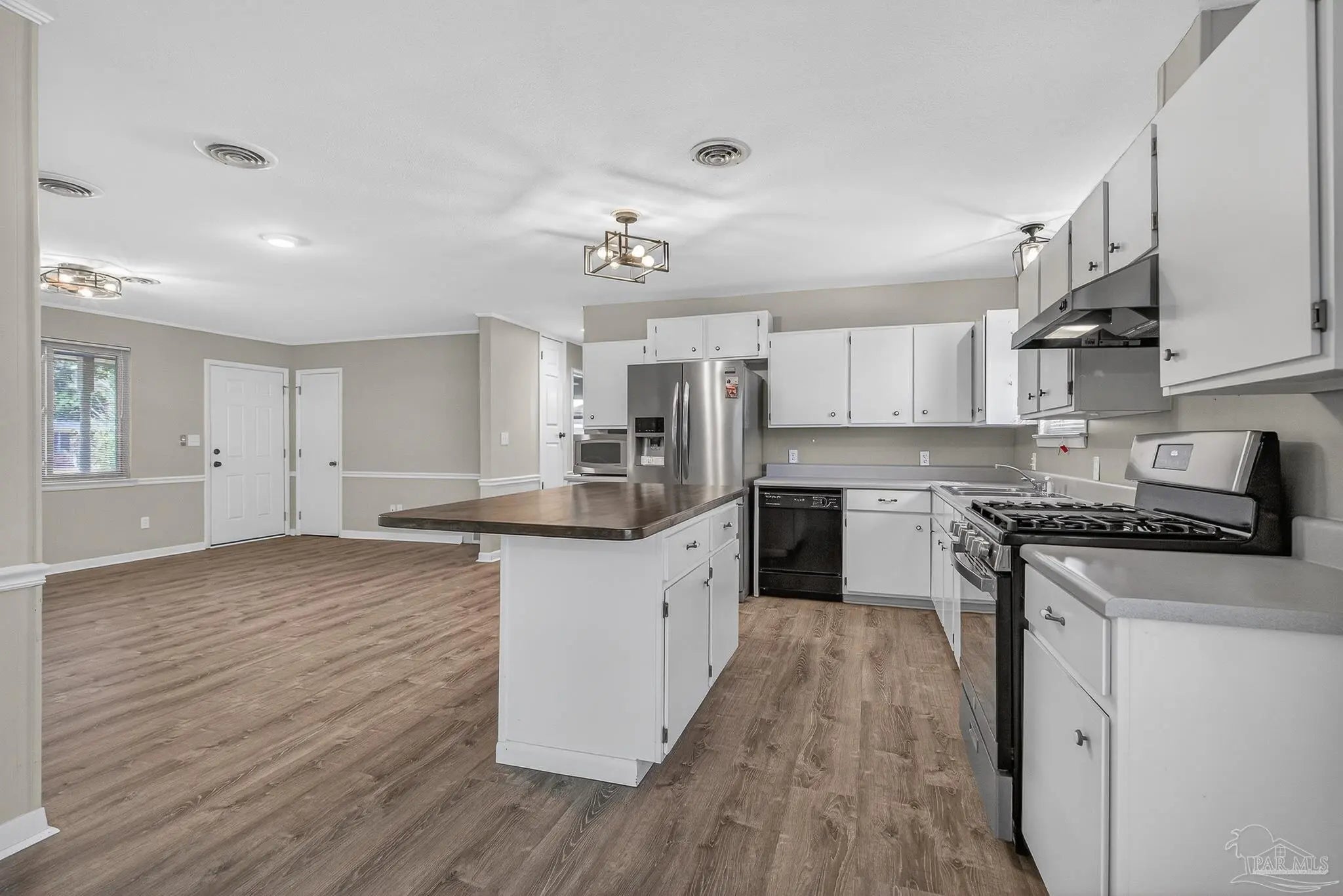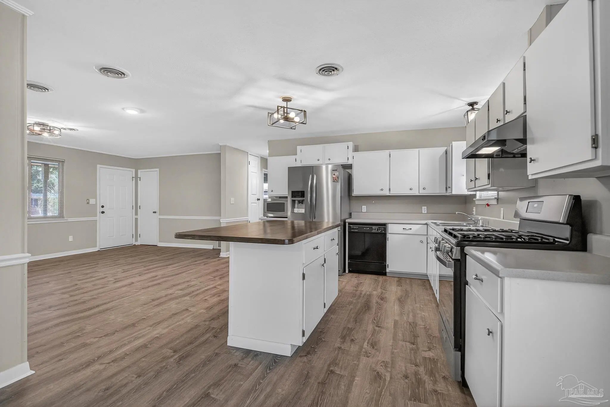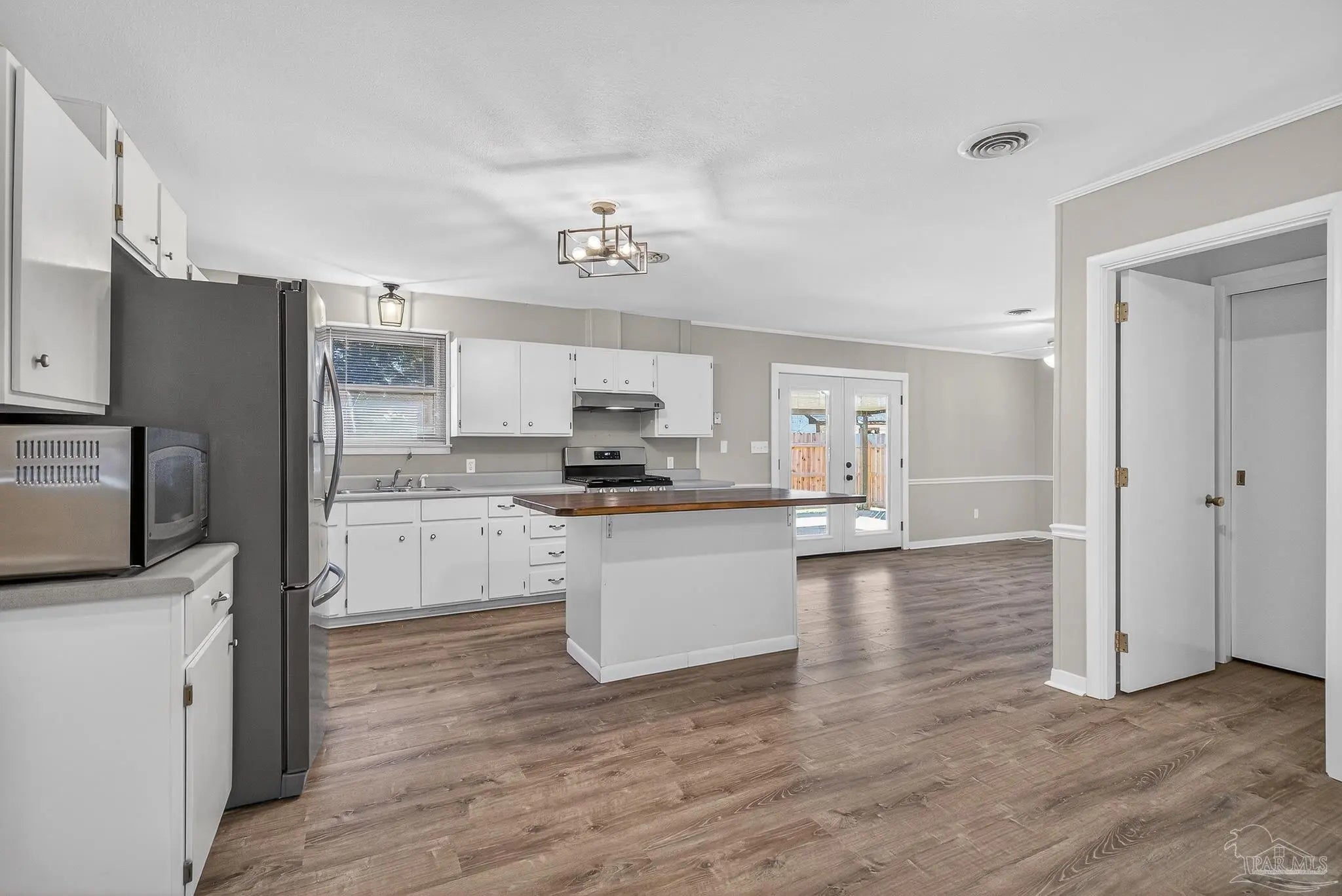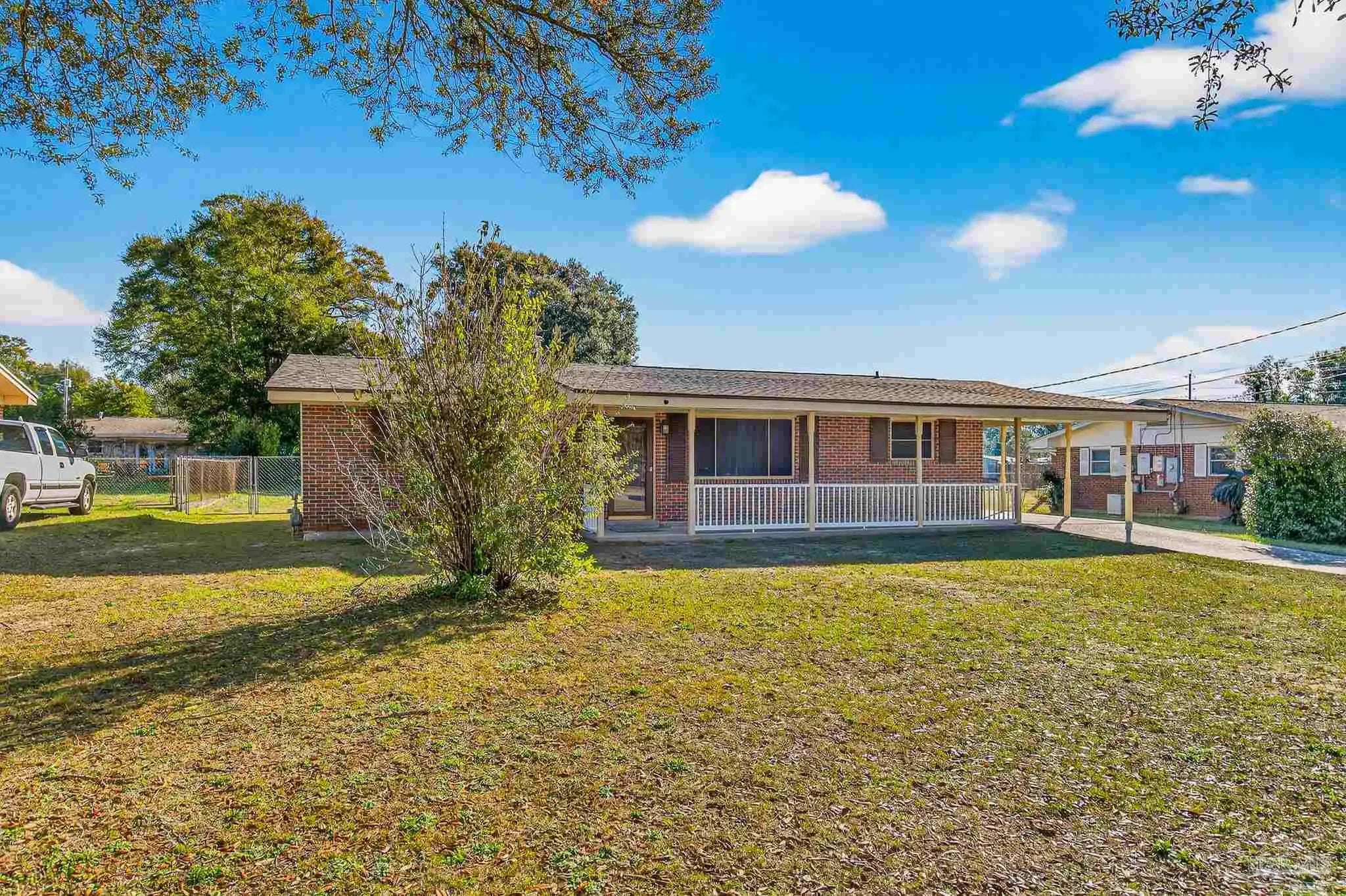 Welcome to this well-maintained 3-bedroom, 2-bath home on Melba Street in Pensacola, offering solid construction, thoughtful updates and a highly sought-after central location. Recent major improvements include a new roof and HVAC system in 2024, providing peace of mind for years to come. In 2025, luxury vinyl plank flooring was installed throughout the home, interior walls were opened to create a more spacious living area and the home was refreshed with a neutral paint palette. The kitchen features a newly stained butcher block island top with seating for barstools, perfect for casual meals, along with a dedicated dining area just off the kitchen for everyday sit-down dining. French doors at the rear of the home open to a large, covered back porch that was roofed and enclosed with a wood surround in 2025, offering added privacy and outdoor living space. The fully fenced, level backyard includes a 10 x 16 storage shed, mature fruit trees and a double gate on one side of the property allowing easy access for boat, RV or additional storage. An attached covered carport provides convenient parking and protection from the elements. Hurricane shields offer added storm protection and with no HOA, this property delivers flexibility and freedom that’s increasingly hard to find. Centrally located near hospitals, shopping, a wide variety of restaurants and entertainment options, with easy access to the interstate, this area is highly sought after for its convenience and accessibility. This move-in ready home offers a great combination of location, upgrades and everyday functionality.