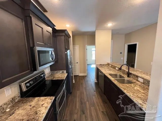Ultimate Backyard Living in this almost brand new 3 bedroom 2 bath home with a huge back covered patio plus an open stamped concrete patio. Backyard is fully fenced for privacy! Irrigation system! Ceilings are 9 ft high throughout the home. There is no carpet in this home; The entire home has beautiful porcelain wood look plank tile! Beautiful granite countertops throughout; Tray ceilings in the Living Room, Dining Room and Master Bedroom; Tongue and groove ceiling with 2 step crown moulding in all tray ceilings; Delta plumbing fixtures at all sinks; Not only is the large covered patio as wide as the home, but the uncovered stamped concrete patio is huge and great for entertaining. This home is beautiful and built by an award winning local builder.