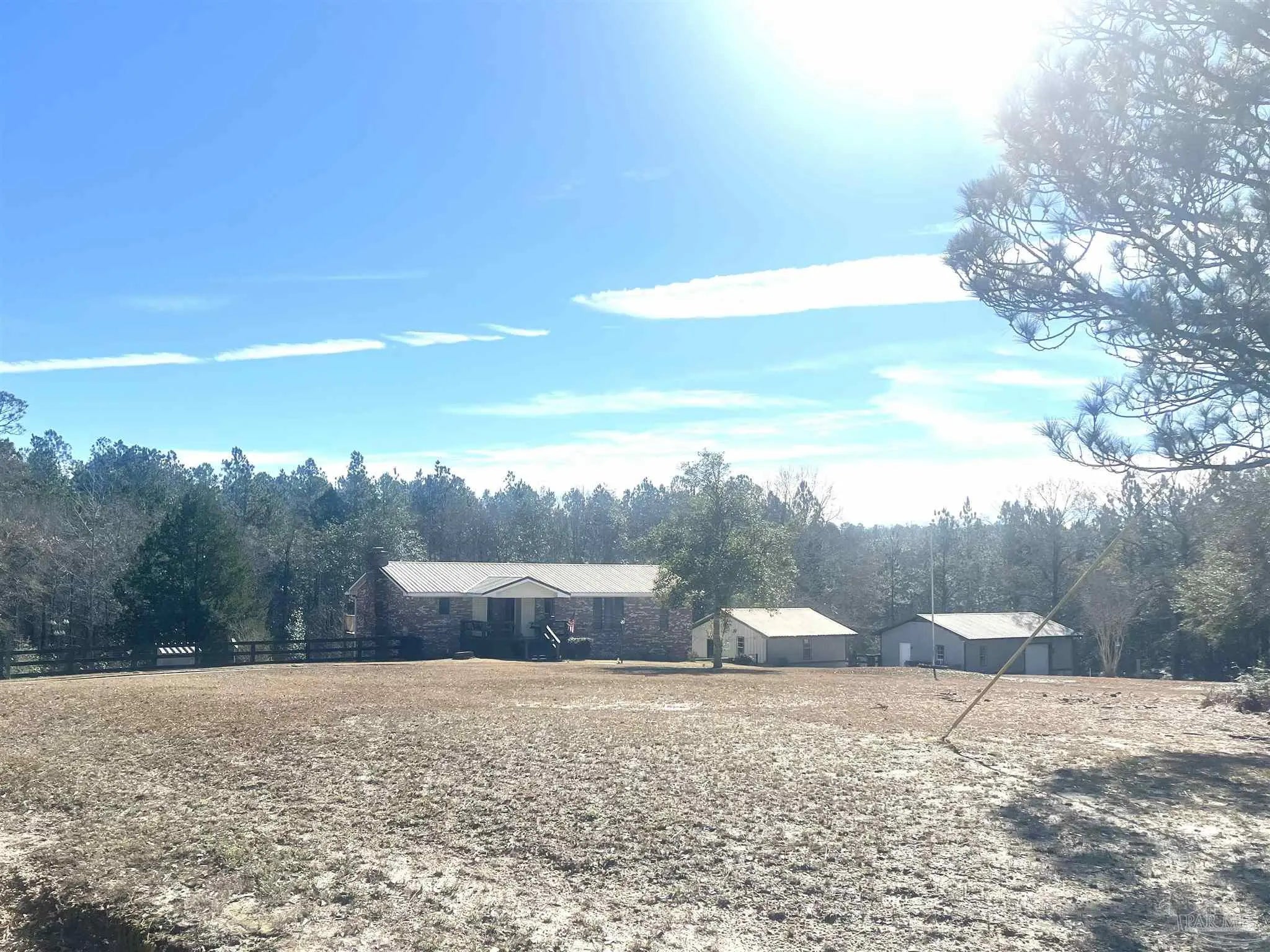 Come See this 8 acres and its unique 2,900+/- sq. ft. brick home, beautifully maintained and thoughtfully designed for comfortable living. Featuring three spacious bedrooms and three full baths, this residence offers three versatile living areas perfect for gathering, entertaining, or relaxing. The large kitchen and dining space come complete with appliances and a generous pantry, providing ample room for culinary creations and storage. Enjoy outdoor living with an open patio, an expansive deck, a covered porch, and a fenced backyard ideal for privacy and play. Additional perks include a detached double garage , plus a separate detached 40 x 24 hobbyist workshop—perfect for projects and hobbies. Experience convenience, space, and style all in one exceptional home. Schedule Your Personal Tour Today!! Property in Excellent Condition / Move In Ready ALL SQ. FOOTAGE AND DIMENSIONS ARE APPROXIMATE AND IS THE BUYER'S RESPONSIBILITY TO VERIFY DURING DUE DILIGENCE PERIOD.