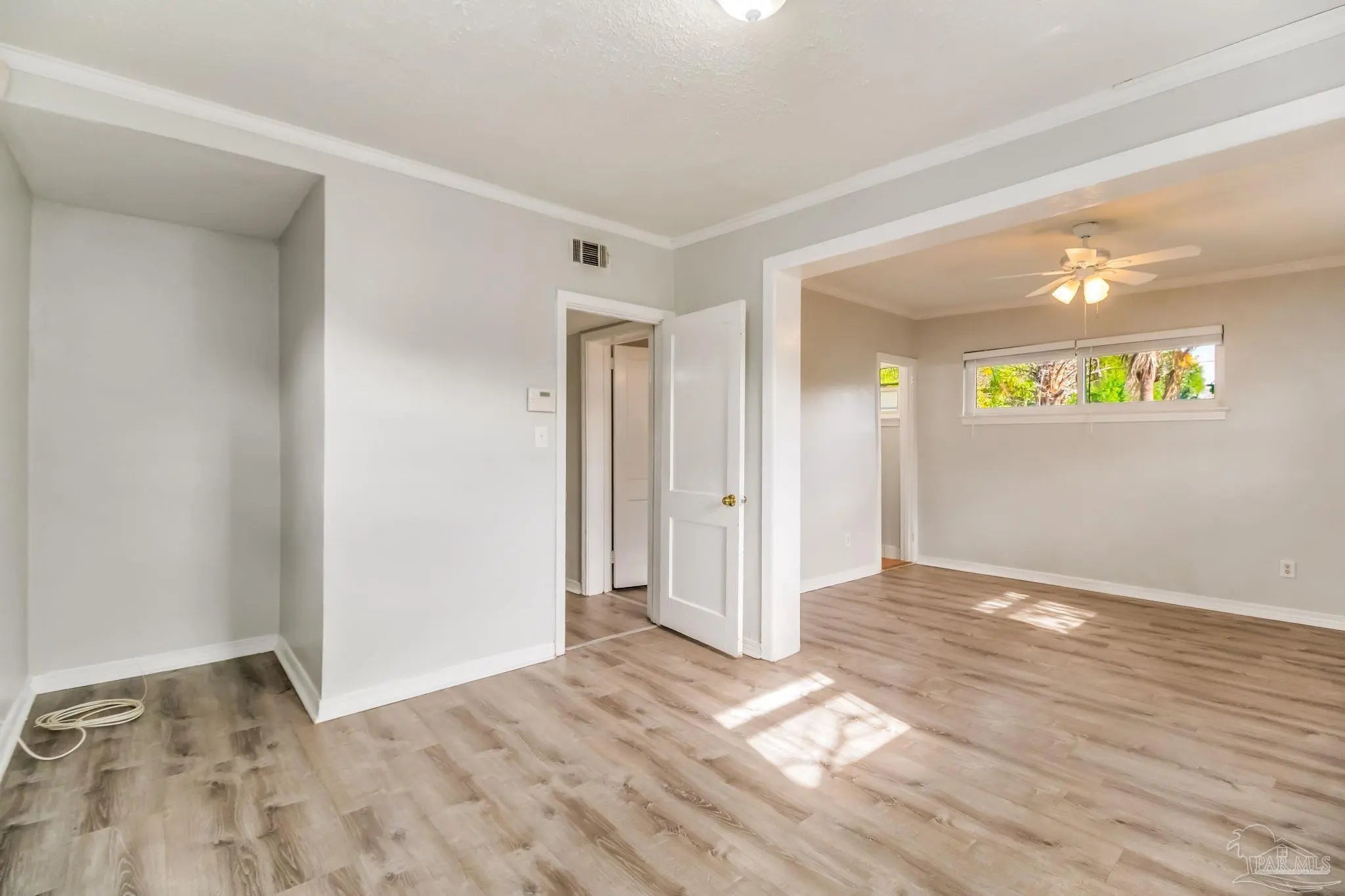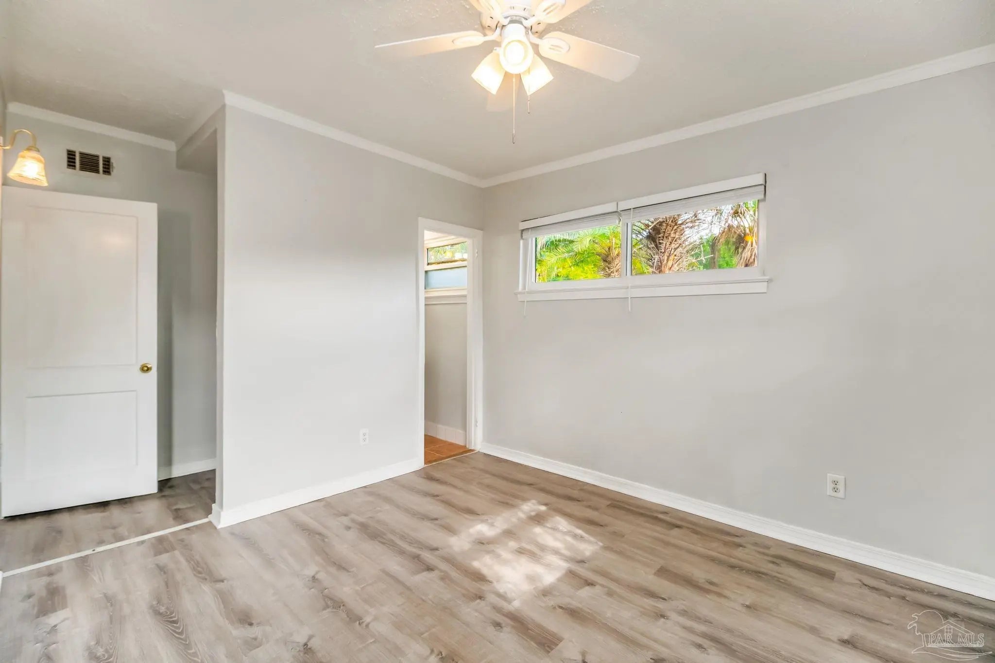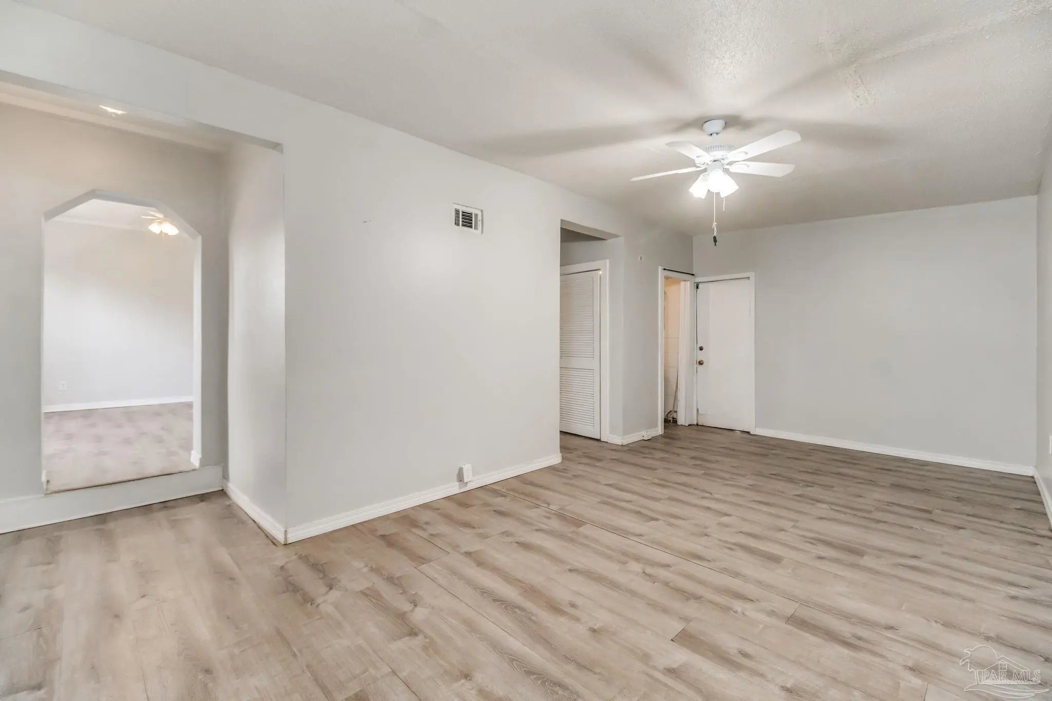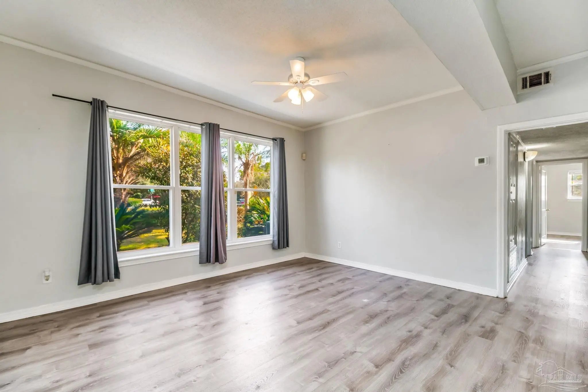 Welcome home to this updated 2 bedroom, 1.5 bath bungalow at 228 Topaz, perfectly located just steps from Oakcrest Park. Enjoy easy access to walking and biking trails, a playground, and nearby green space all while being less than 20 minutes from NAS Pensacola, Downtown Pensacola, shopping, dining, and healthcare. From the moment you arrive, you’ll love the massive corner lot and landscaped front yard with an inviting front porch and patio. Inside, the home features neutral paint tones, stylish luxury vinyl plank flooring throughout the main living areas, and TWO separate living spaces, offering flexibility for entertaining or relaxing. The main living area is open and filled with natural light, highlighted by high ceilings and charming arched doorways that add character throughout. The eat-in kitchen is functional and efficient, with appliances in place and plenty of potential to personalize over time. The spacious primary bedroom includes a private half bath, while the second bedroom offers generous space and easy access to the full bathroom. Major updates include a 2023 HVAC system and water heater. Washer and dryer hookups are conveniently located inside the home. Step outside to a large, fully fenced backyard, perfect for gatherings, pets, or creating your own outdoor oasis. With its thoughtful updates, flexible layout, and convenient Pensacola location, this charming bungalow is ready to welcome its next owner.
