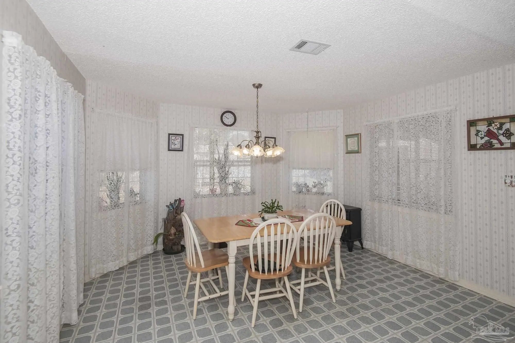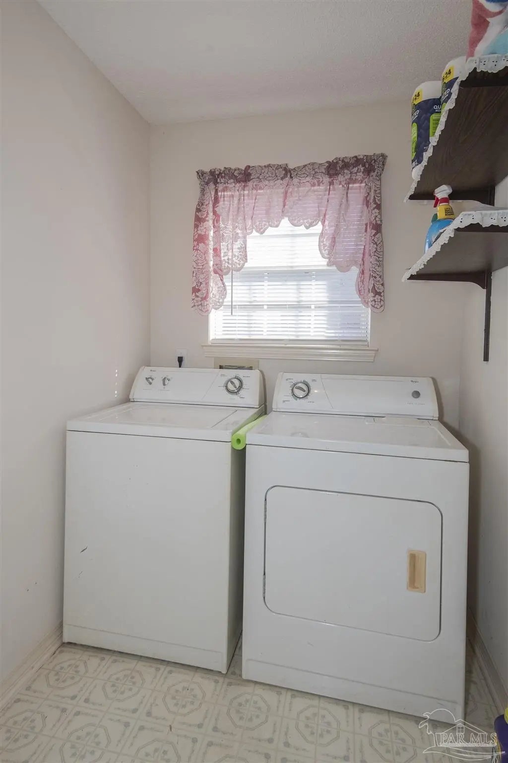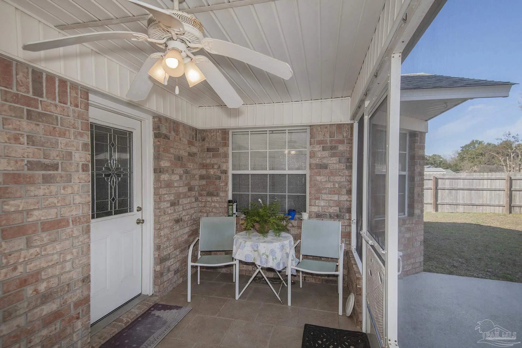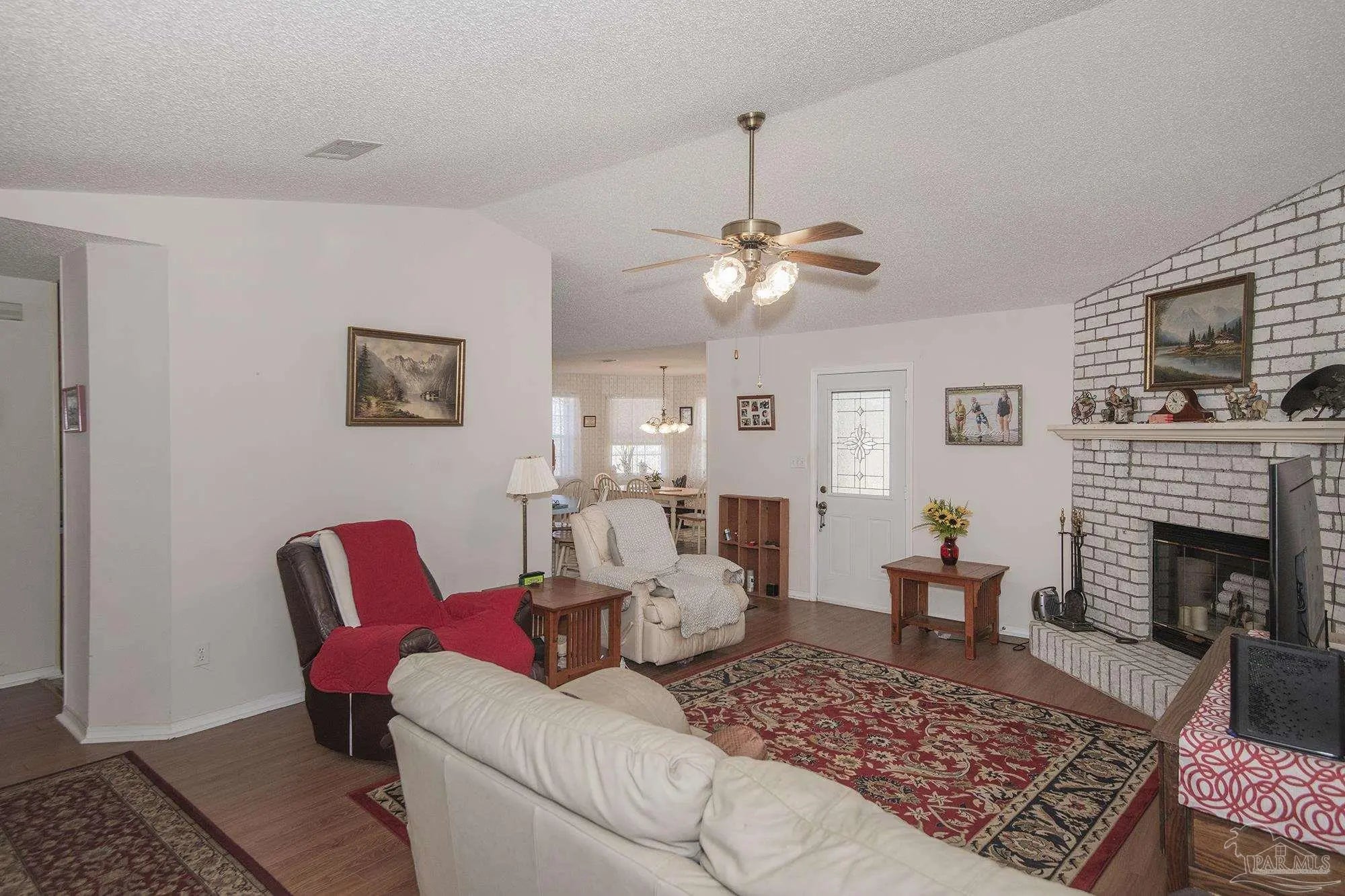 Lovely home in popular Briarcliff in the heart of Pace but off the busy thoroughfare. On a Cul de sac street, this terrific floor plan offers an exceptionally large kitchen and dining area that allow plenty of room for 2 cooks and plenty of space for family dining and guests to enjoy. Abundant wood cabinetry, breakfast bar and natural light from large bay window. There is a cozy and inviting family room with fireplace (capped off at the roof..no chimney), vaulted ceilings that extend to the kitchen. Split bedroom plan. Main suite features spacious bath with double vanities, separate shower and garden tub, 2 oversized closets. 2 additional bedrooms are spacious and bright. Huge, privacy fenced back yard with ample room for a pool and includes a large utility shed . Right off the kitchen/ living area there is a breezy screened porch very private and a good place for a nap or a good book, watching the birds and just relaxing. Convenient Inside laundry room plus double garage. Recent updates and improvements include: roof 3 yrs; water heater 2020; HVAC 2024. Sprinkler to convey "As Is".