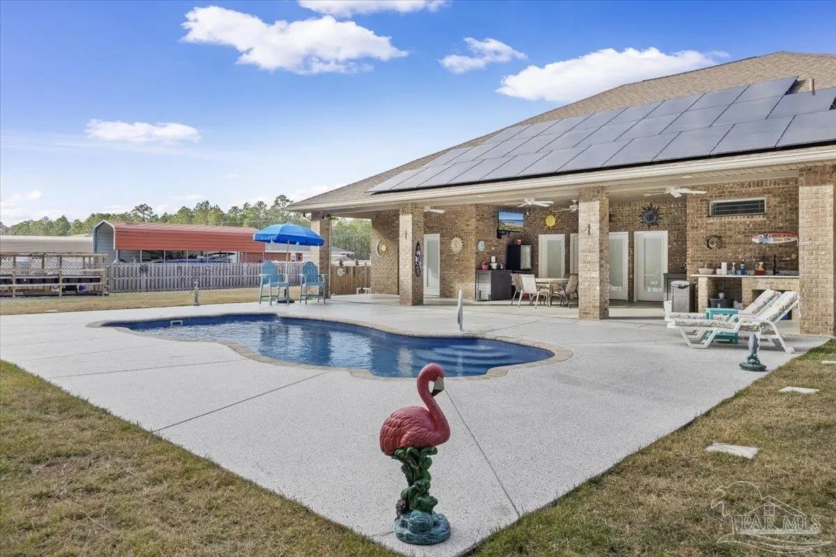 Open Sat Feb 7 from 10:30 am to Noon. This gorgeous custom-built estate offers a rare blend of refined luxury and tranquil sanctuary living on a pristine .92 acre setting. Step into soaring 12' ceilings, exquisite architectural details, and an open living space centered around a sleek gas fireplace and a gourmet kitchen designed for both style and performance. The indulgent primary suite evokes a boutique resort feeling with serene finishes and a spa-like ambiance. Outside, a beautifully designed covered patio overlooks a shimmering inground fiberglass saltwater pool, great landscaping, a raised garden area and energy-saving solar features. There are 2 additional buildings for creative pursuits. A stunning guest house with expansive porch elevates the property even for elevated hosting, or multi generational living.