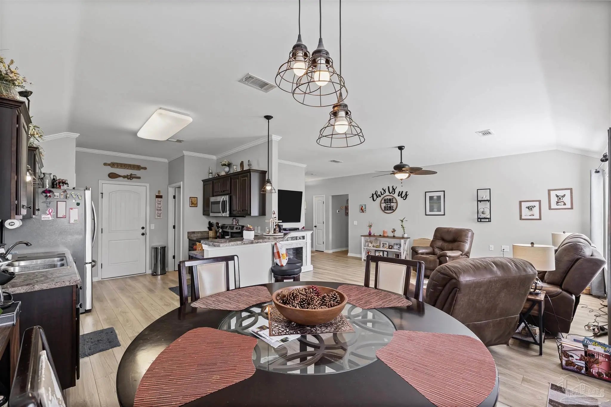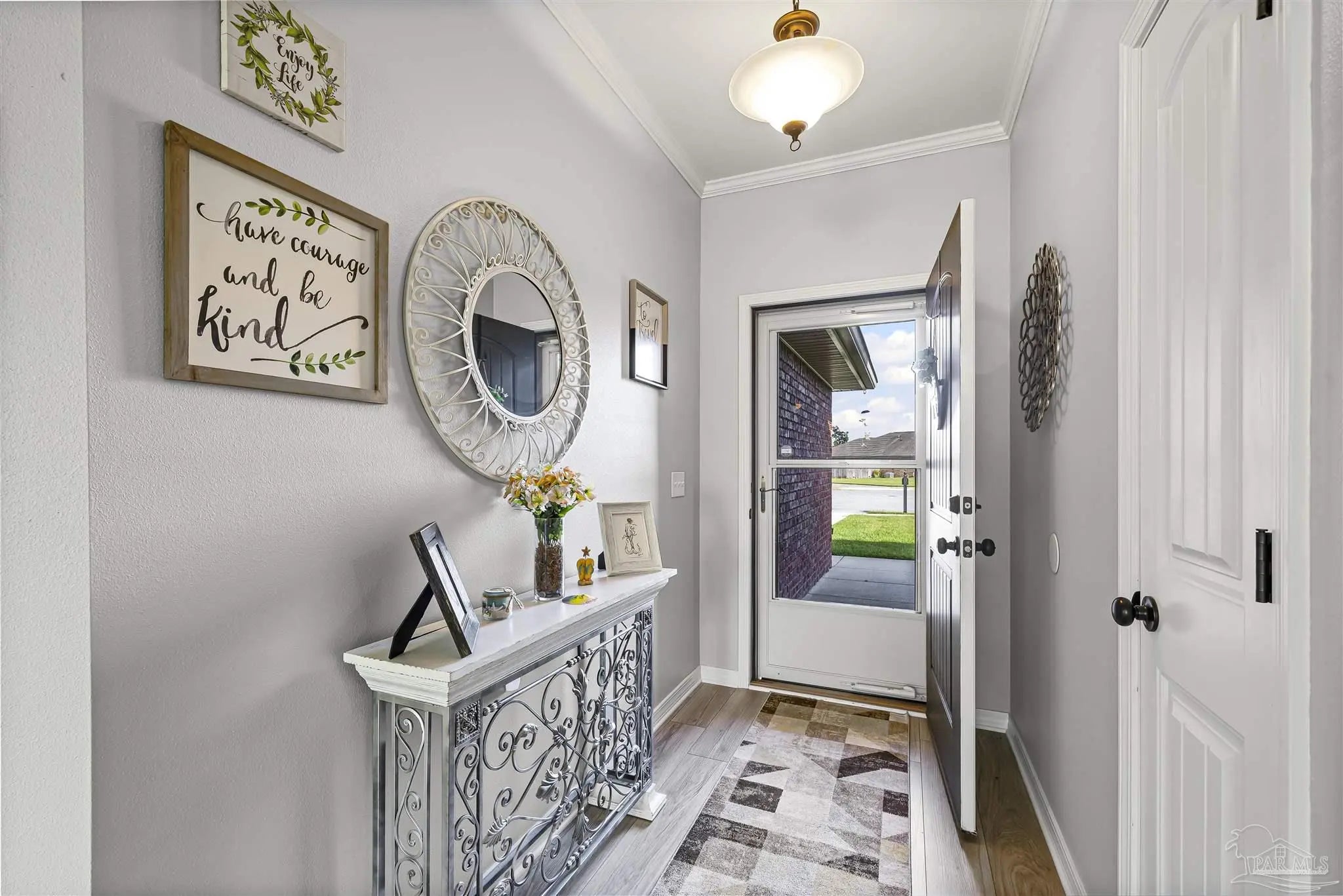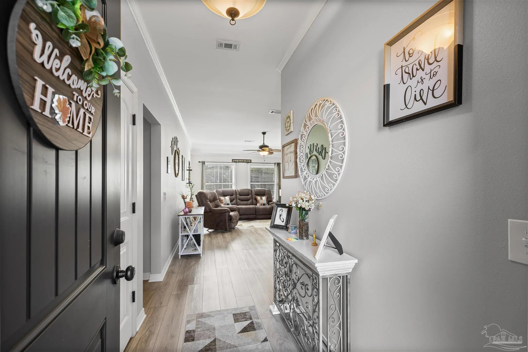 Stunning ranch-style home located in the beautiful Willow Glen subdivision in Pace, Florida. Situated on a quiet cul-de-sac, this meticulously maintained 3-bedroom, 2-bath residence offers 1,489 sq ft of comfortable living space. Every detail has been thoughtfully cared for — from the custom 10×16 yard barn with storm window to the crown molding throughout the entire home, including both baths. Enjoy Shaw vinyl plank flooring, custom window treatments, fresh custom paint (with extra paint provided), and custom cabinetry in the laundry room. The home features gutters, a sprinkler system, and attic decking for extra storage. Outdoor living shines with a pergola and extended patio, surrounded by beautiful landscaping on a generous .33-acre lot. This home is truly move-in ready and waiting for its next owner to enjoy! Call today to schedule your private appointment.