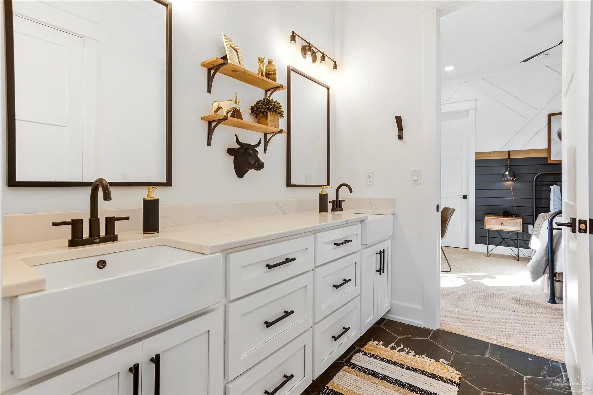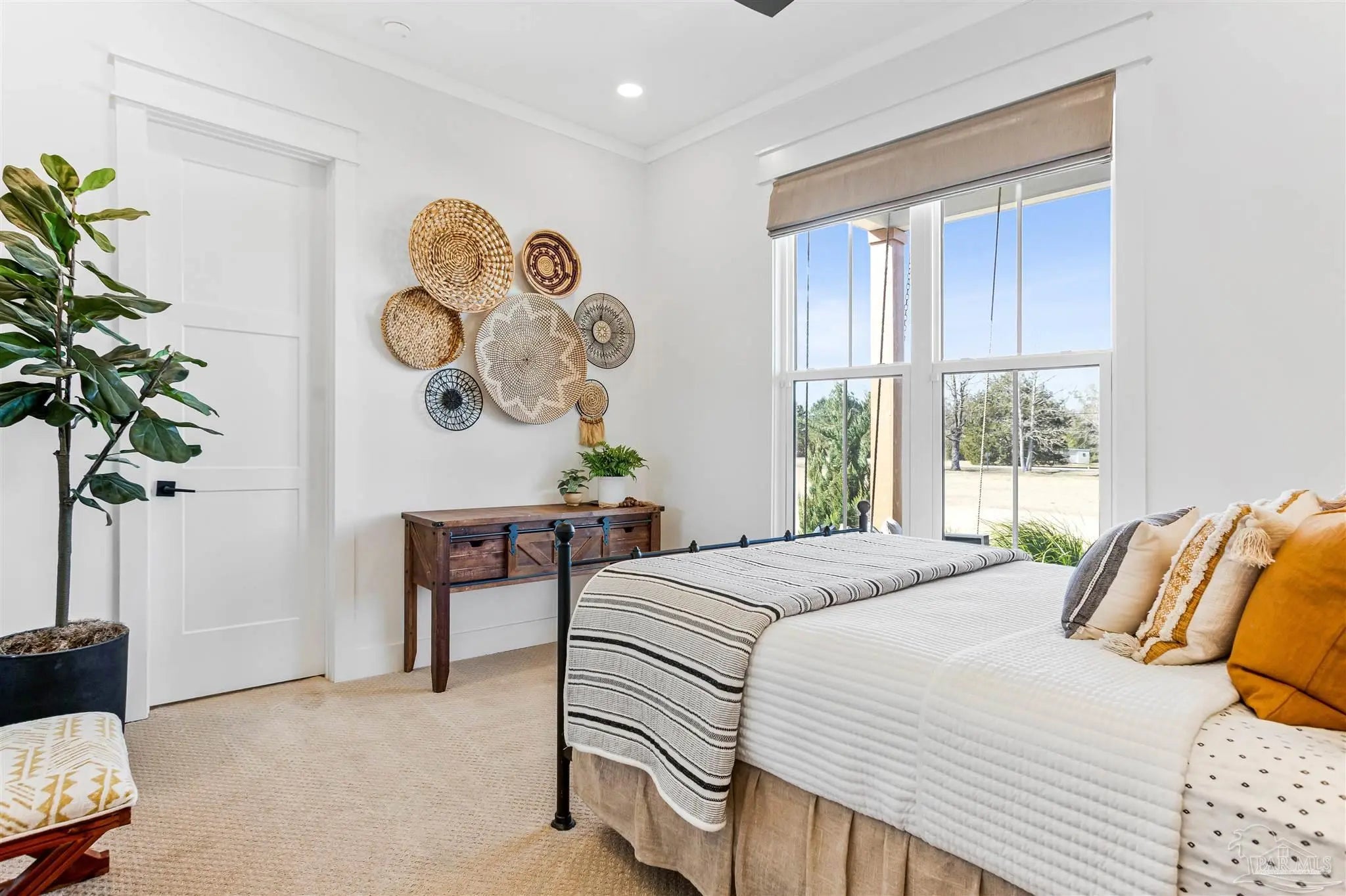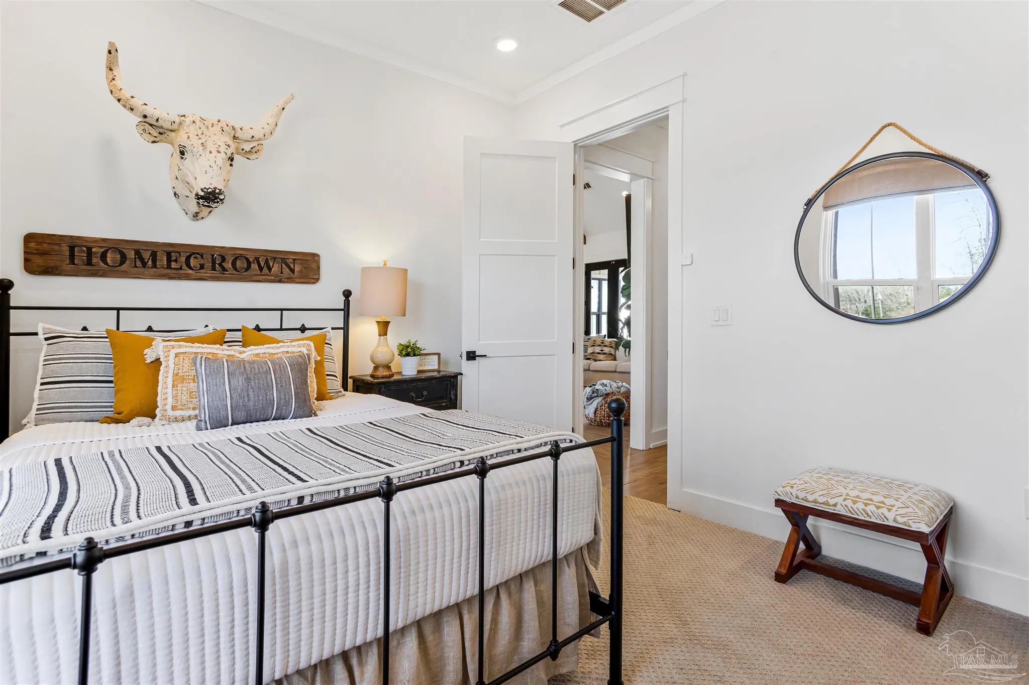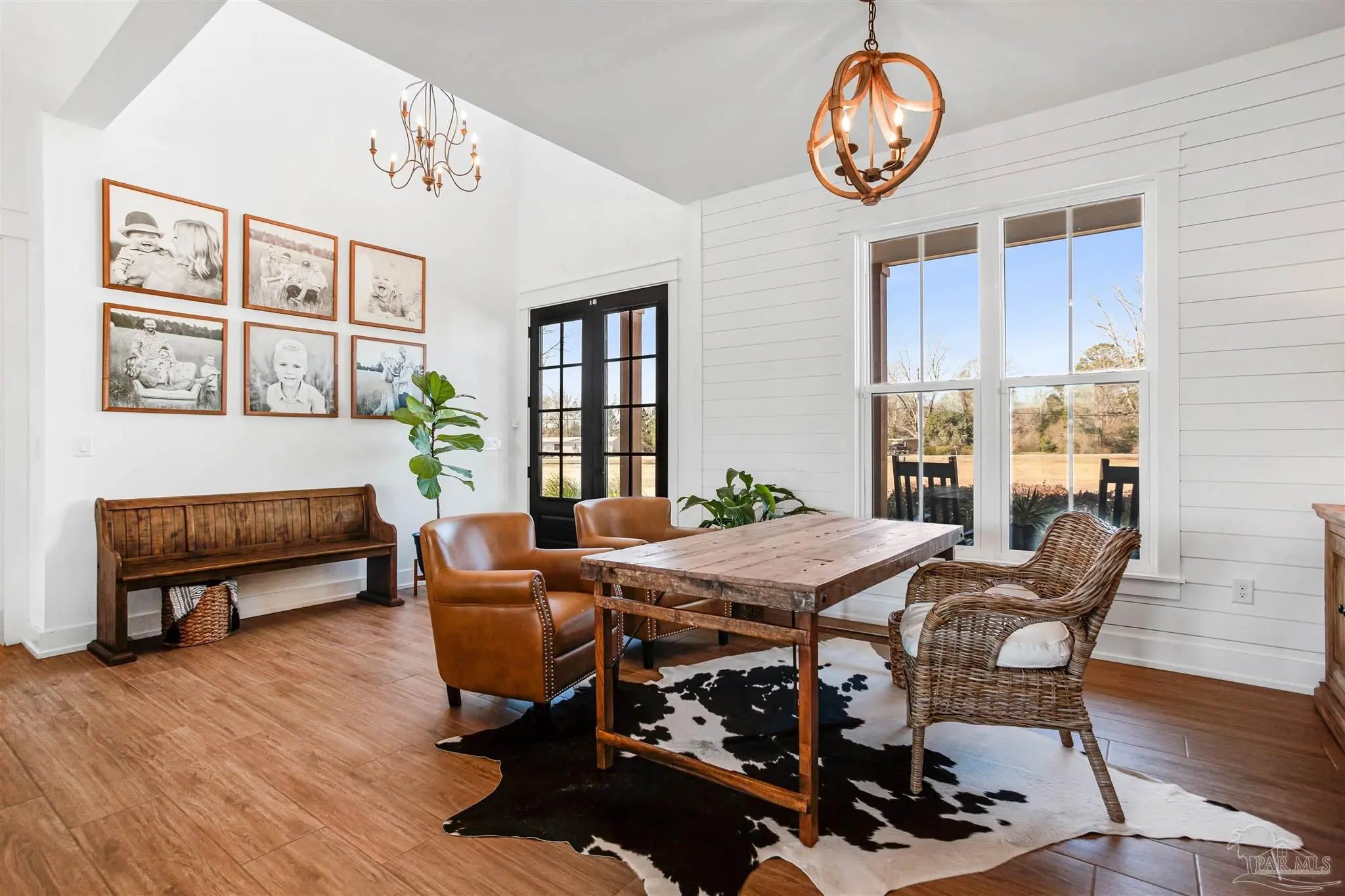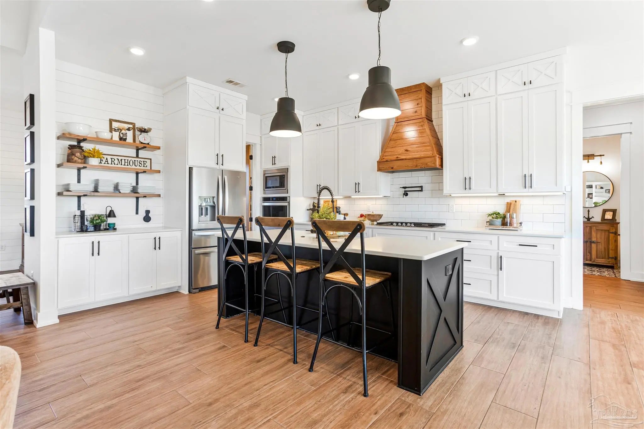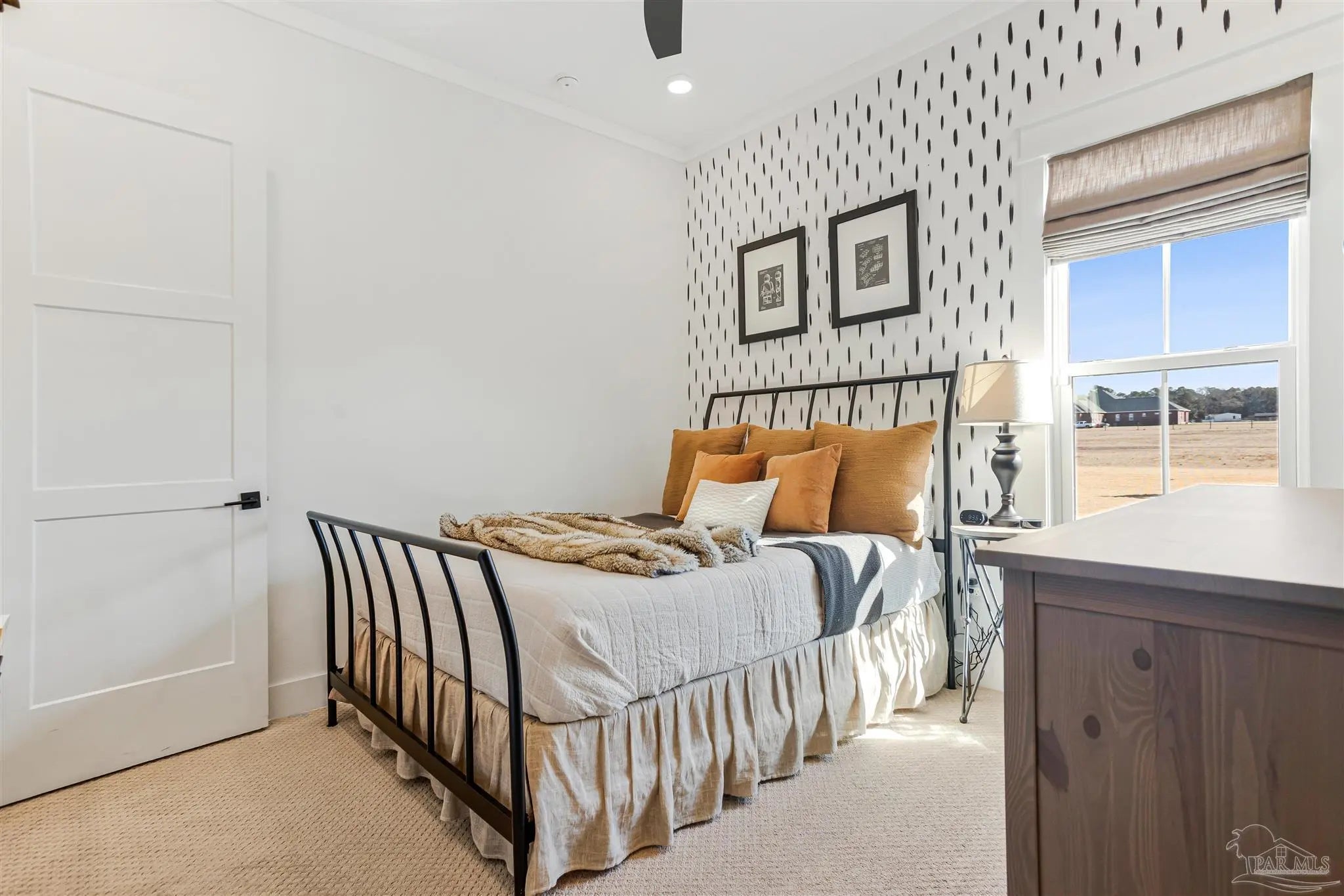 PRIVATE 4.5-ACRE MODERN FARMHOUSE RETREAT — 20 MINUTES TO PENSACOLA. Welcome to a truly exceptional, custom-built farmhouse, set on 4.5 private acres with no HOA—offering the space, privacy, and flexibility to live beautifully, both indoors and out. Freshly painted and thoughtfully finished, this 3,426-square-foot home features 4 bedrooms and 3.5 baths with elevated selections throughout, including wood-look tile flooring, roller shades, and spray-foam insulation for year-round comfort and efficiency. The open-concept main living area is designed for effortless entertaining, while still providing the separation and quiet spaces a home of this caliber deserves. The oversized 3-car garage is complemented by a generous bonus room above—ideal for a home office, media lounge, playroom, or guest suite. Walking attic space adds convenient, accessible storage rarely found in newer construction. Outdoors, the setting is as refined as it is functional. Enjoy evenings by the outdoor fireplace, cultivate your own harvest in the raised garden beds, and appreciate the lush zoysia lawn supported by a full irrigation system across the front and side yards. A premier feature of the property is the 40x48 pole barn, with 24x40 fully enclosed and equipped with power and water—perfect for a workshop, equipment storage, hobbies, or future expansion. Dedicated RV parking with electrical hookup adds even more versatility for travelers and guests alike. This is a rare offering where craftsmanship, acreage, and lifestyle amenities meet—delivering polished country living with the freedom to make it your own.