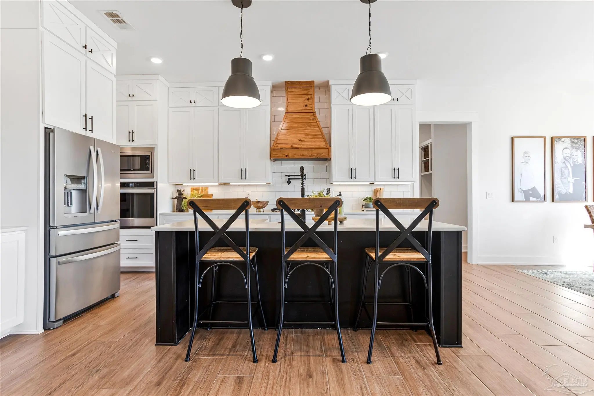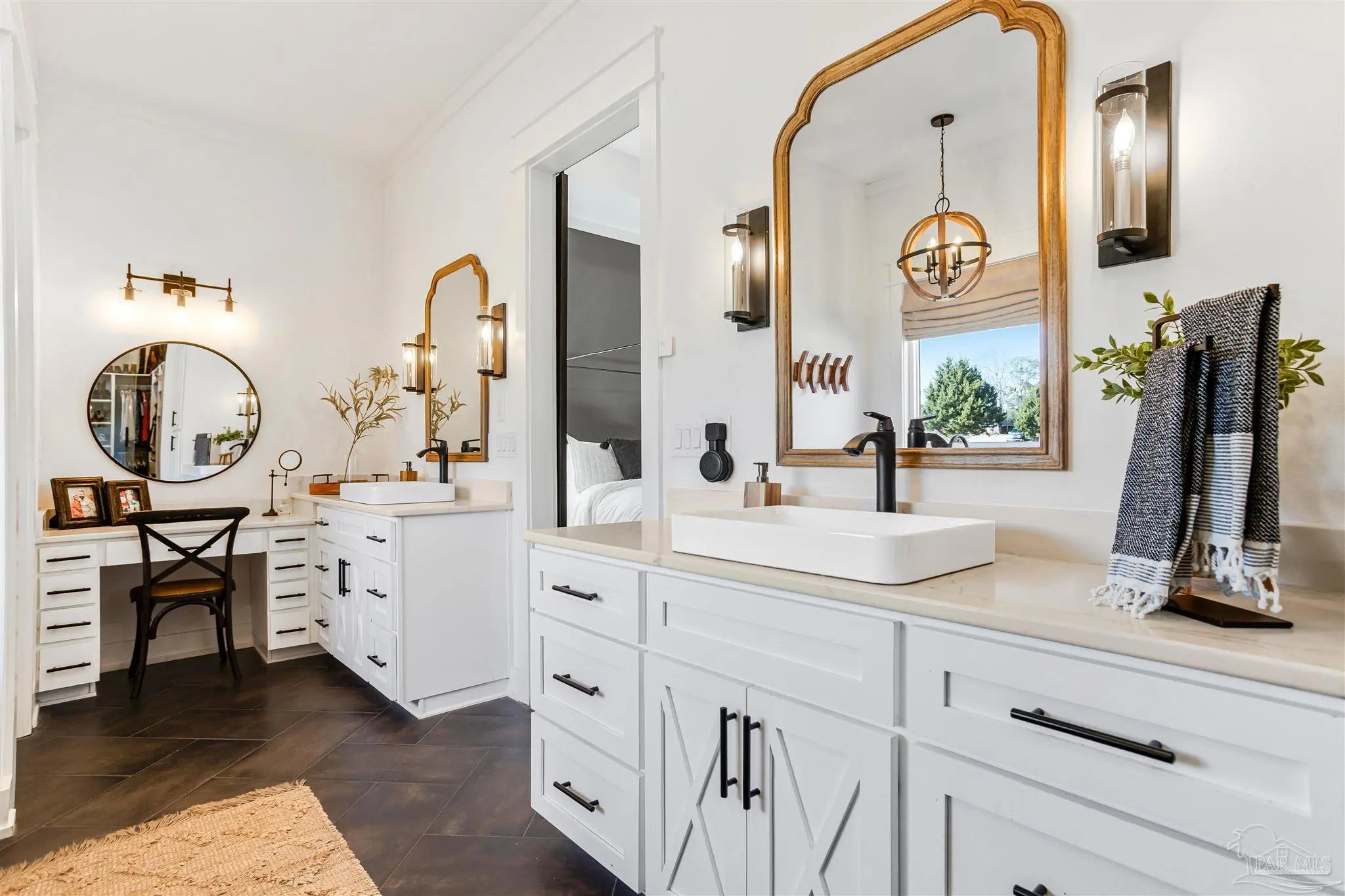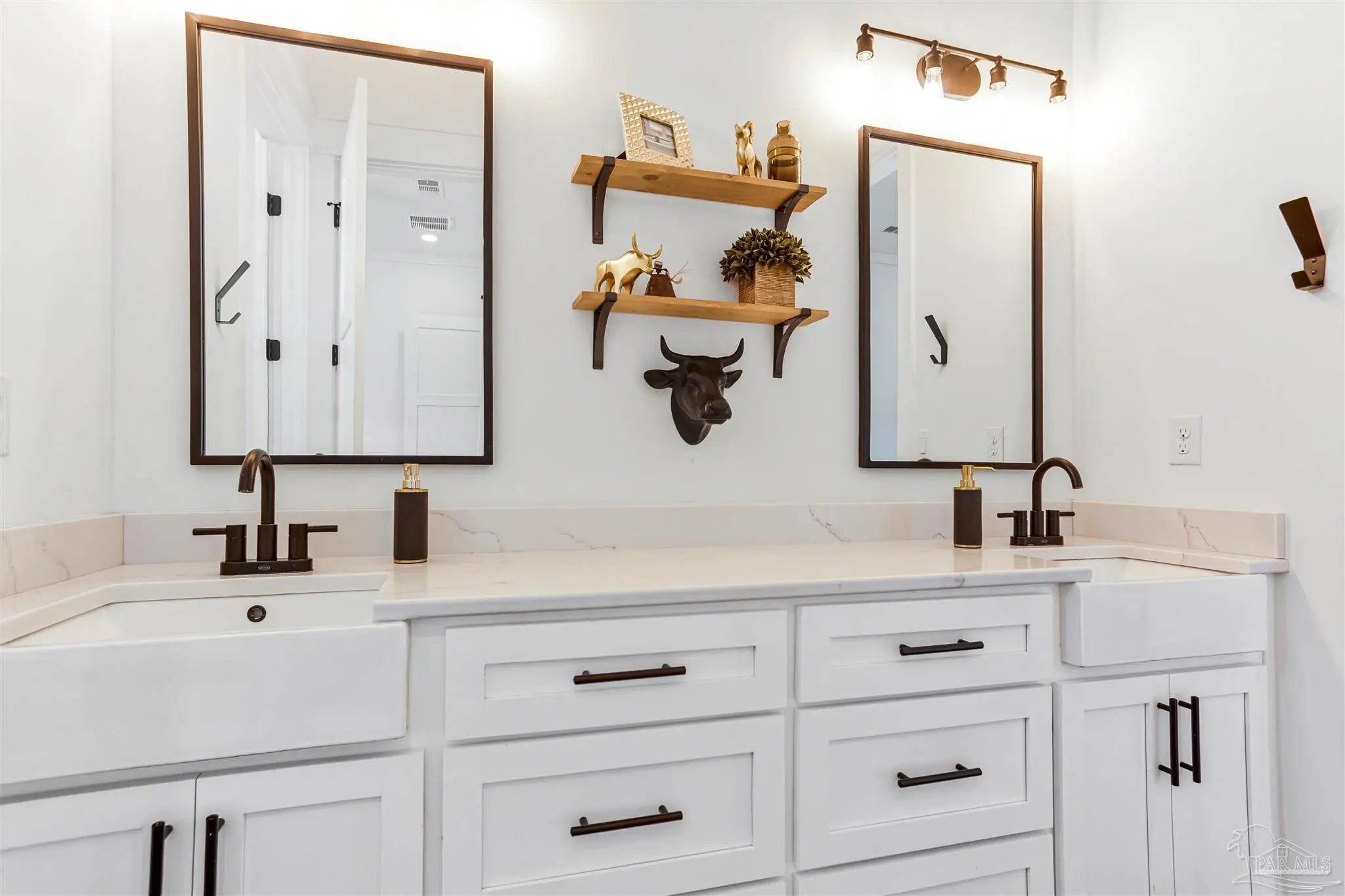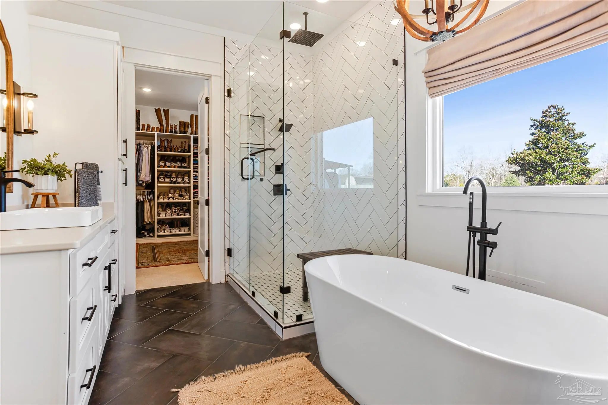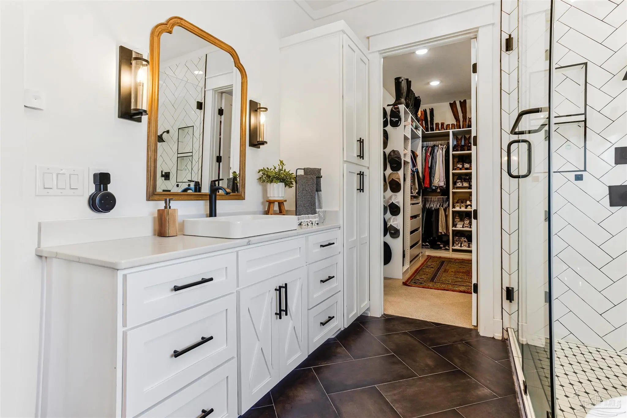 PRIVATE 4.5-ACRE MODERN FARMHOUSE RETREAT — 20 MINUTES TO PENSACOLA. Welcome to a truly exceptional, custom-built farmhouse, set on 4.5 private acres with no HOA—offering the space, privacy, and flexibility to live beautifully, both indoors and out. Freshly painted and thoughtfully finished, this 3,426-square-foot home features 4 bedrooms and 3.5 baths with elevated selections throughout, including wood-look tile flooring, roller shades, and spray-foam insulation for year-round comfort and efficiency. The open-concept main living area is designed for effortless entertaining, while still providing the separation and quiet spaces a home of this caliber deserves. The oversized 3-car garage is complemented by a generous bonus room above—ideal for a home office, media lounge, playroom, or guest suite. Walking attic space adds convenient, accessible storage rarely found in newer construction. Outdoors, the setting is as refined as it is functional. Enjoy evenings by the outdoor fireplace, cultivate your own harvest in the raised garden beds, and appreciate the lush zoysia lawn supported by a full irrigation system across the front and side yards. A premier feature of the property is the 40x48 pole barn, with 24x40 fully enclosed and equipped with power and water—perfect for a workshop, equipment storage, hobbies, or future expansion. Dedicated RV parking with electrical hookup adds even more versatility for travelers and guests alike. This is a rare offering where craftsmanship, acreage, and lifestyle amenities meet—delivering polished country living with the freedom to make it your own.