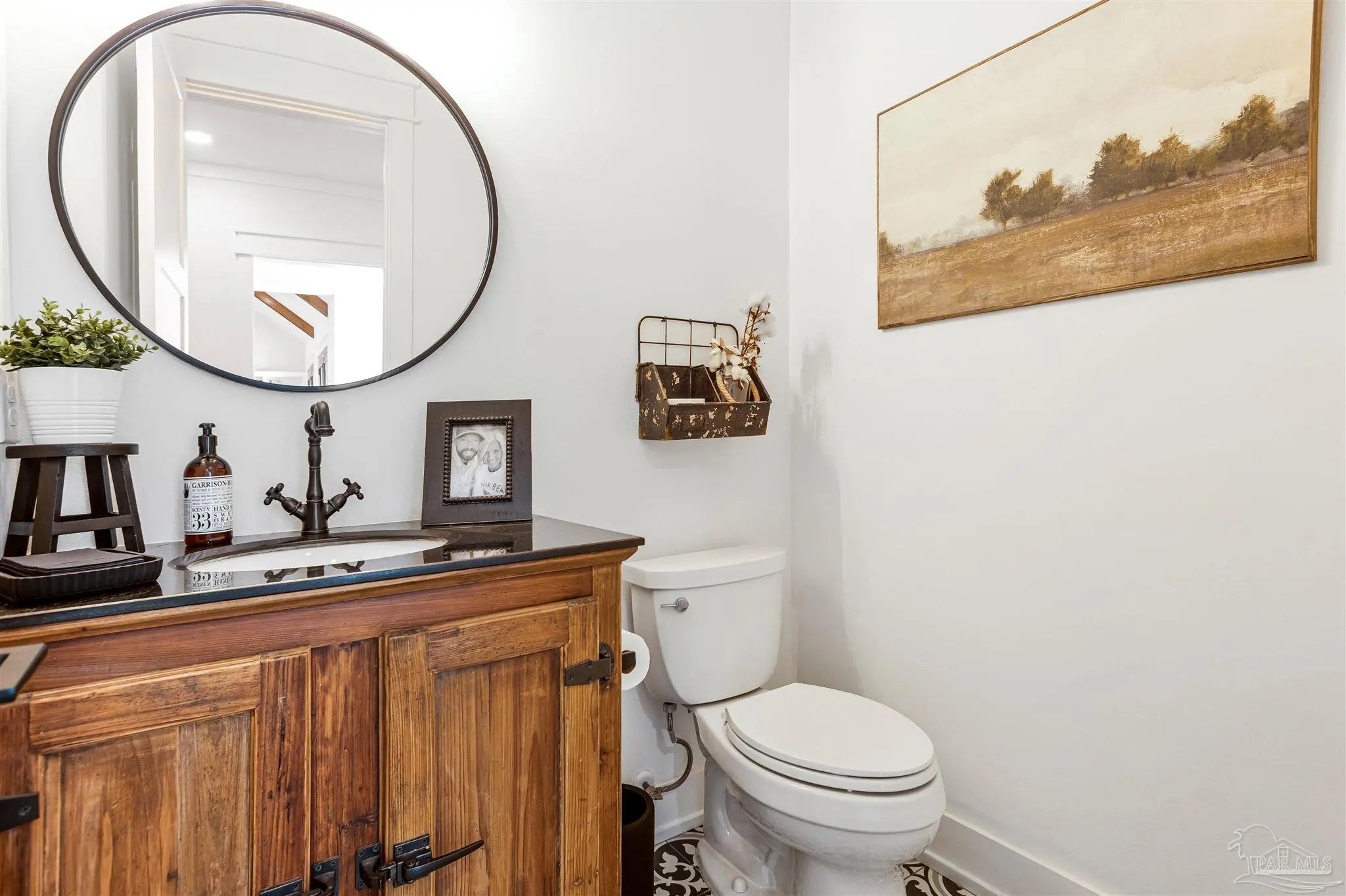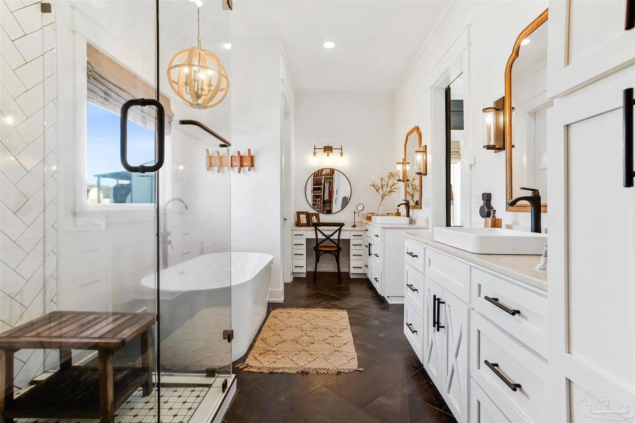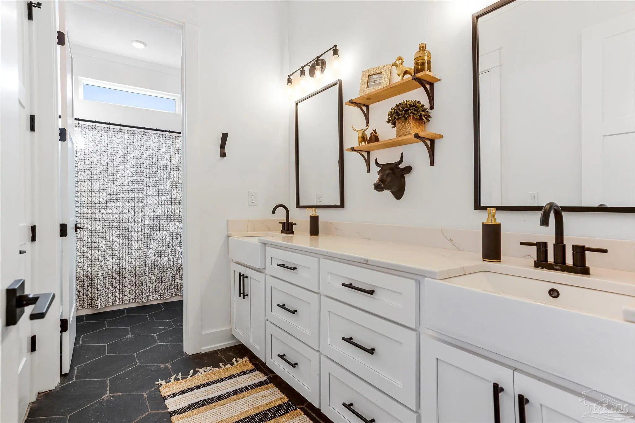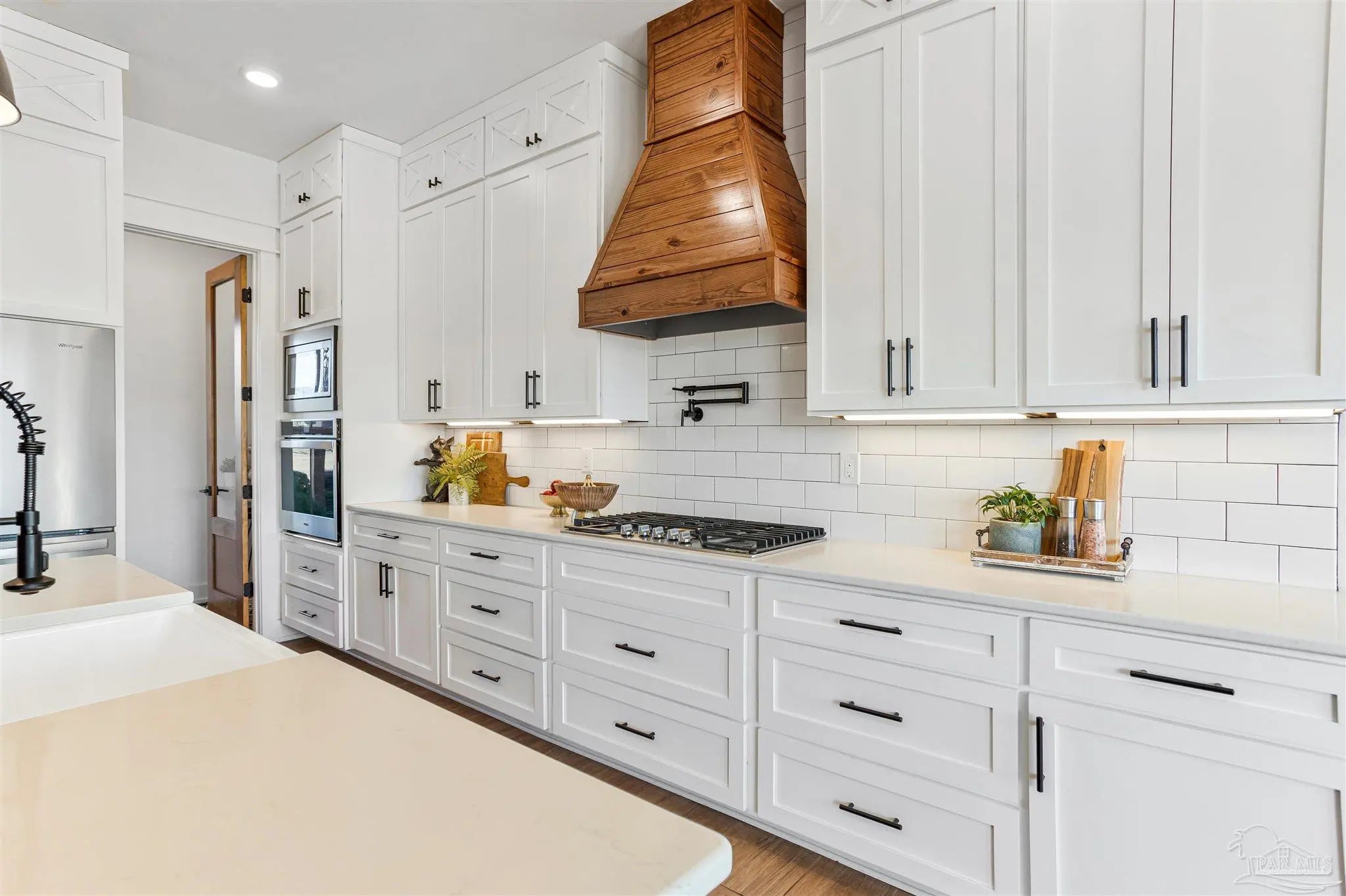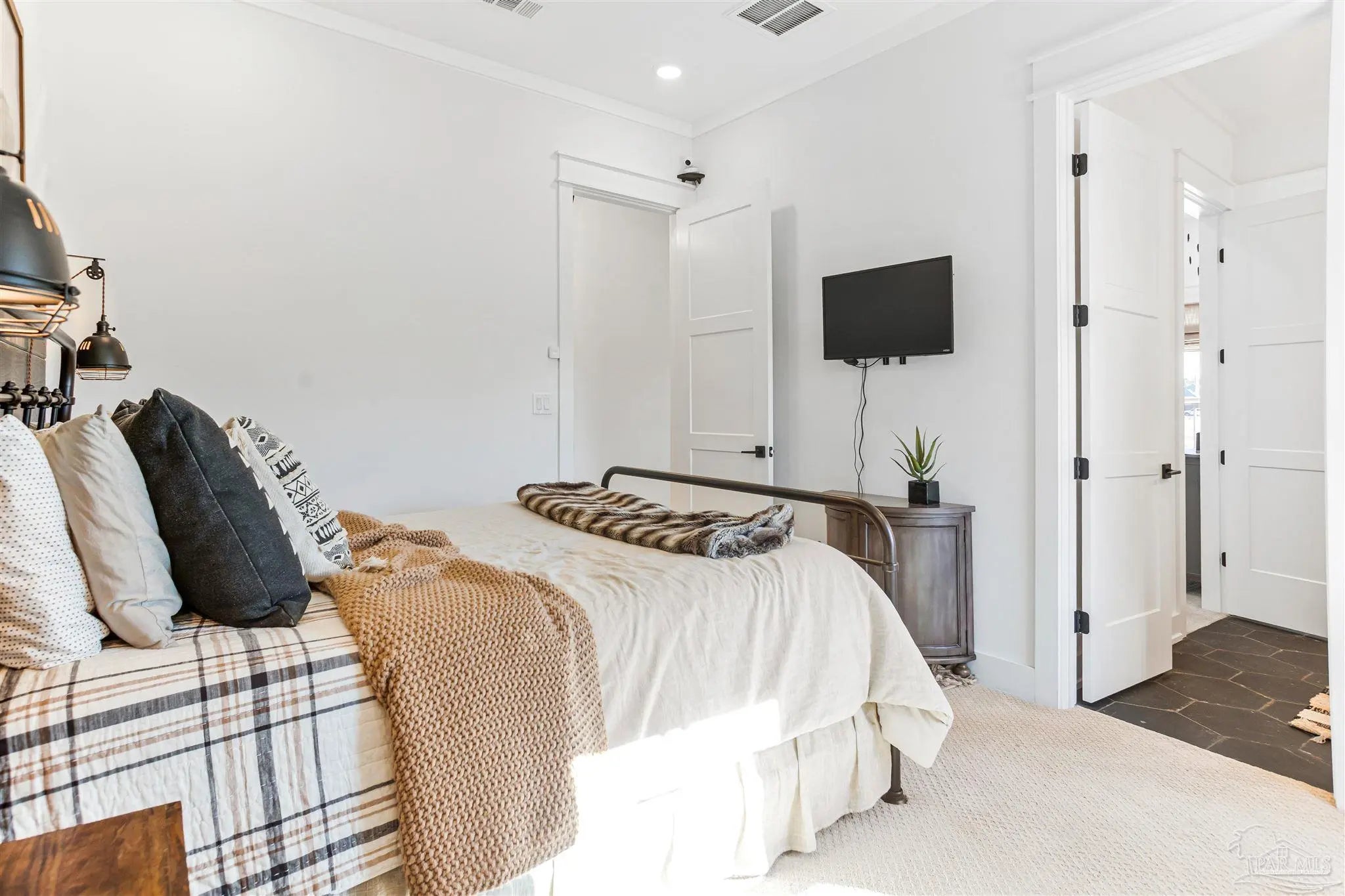 PRIVATE 4.5-ACRE MODERN FARMHOUSE RETREAT — 20 MINUTES TO PENSACOLA. Welcome to a truly exceptional, custom-built farmhouse, set on 4.5 private acres with no HOA—offering the space, privacy, and flexibility to live beautifully, both indoors and out. Freshly painted and thoughtfully finished, this 3,426-square-foot home features 4 bedrooms and 3.5 baths with elevated selections throughout, including wood-look tile flooring, roller shades, and spray-foam insulation for year-round comfort and efficiency. The open-concept main living area is designed for effortless entertaining, while still providing the separation and quiet spaces a home of this caliber deserves. The oversized 3-car garage is complemented by a generous bonus room above—ideal for a home office, media lounge, playroom, or guest suite. Walking attic space adds convenient, accessible storage rarely found in newer construction. Outdoors, the setting is as refined as it is functional. Enjoy evenings by the outdoor fireplace, cultivate your own harvest in the raised garden beds, and appreciate the lush zoysia lawn supported by a full irrigation system across the front and side yards. A premier feature of the property is the 40x48 pole barn, with 24x40 fully enclosed and equipped with power and water—perfect for a workshop, equipment storage, hobbies, or future expansion. Dedicated RV parking with electrical hookup adds even more versatility for travelers and guests alike. This is a rare offering where craftsmanship, acreage, and lifestyle amenities meet—delivering polished country living with the freedom to make it your own.