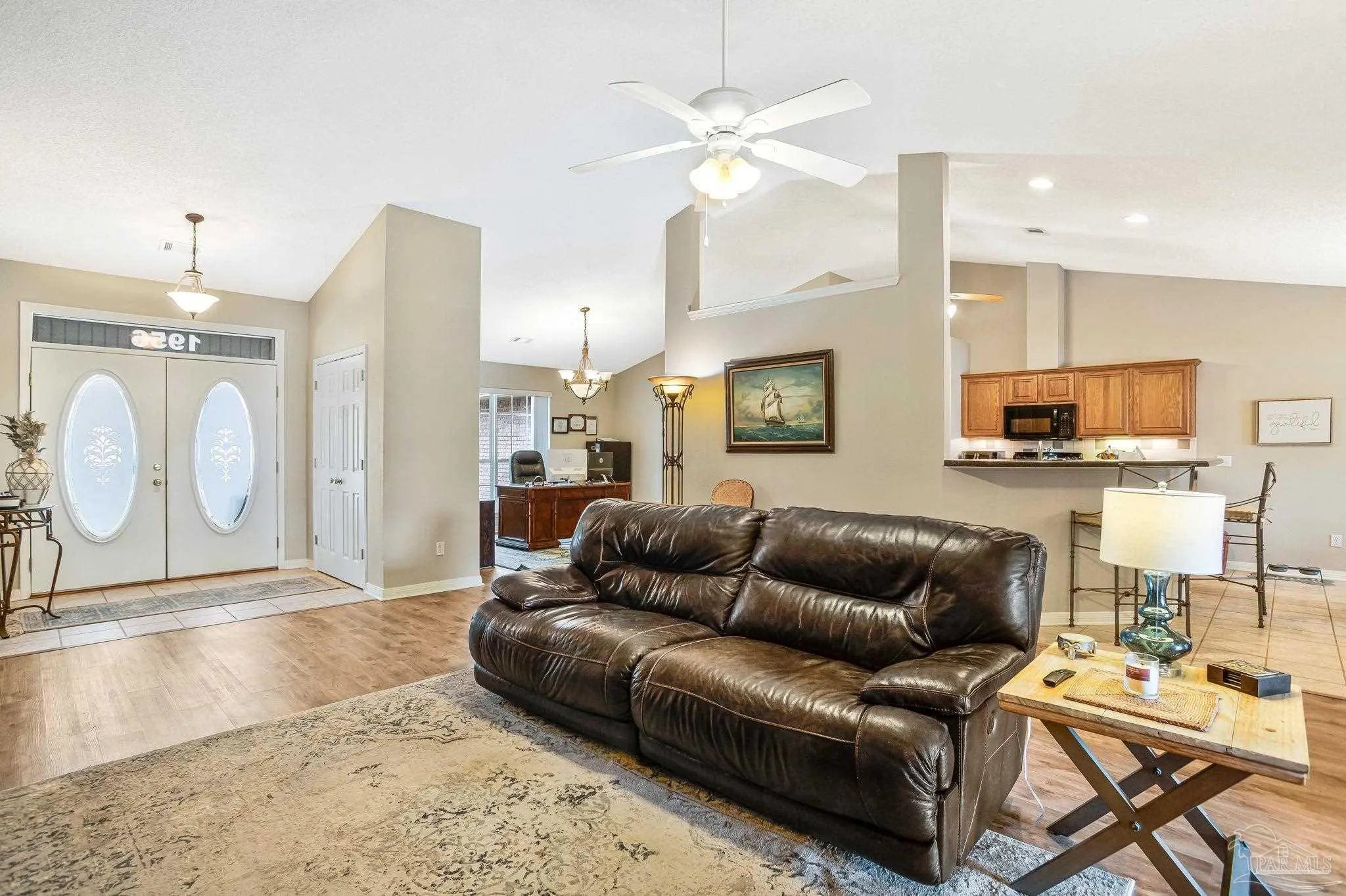 Location is everything! Discover Pensacola’s best-kept secret in The Preserve at Crown Pointe on Perdido Bay. No cookie-cutter homes in here! Tucked inside a quiet, gated, one-street community, this serene retreat offers the perfect blend of privacy, natural beauty, and coastal living. This warm, inviting brick home sits high and dry on a peaceful lake, across from the bay to the west. This quality, solid home was built by Ricky Wiggins Builders. It has weathered multiple hurricanes in it's 22 years without flooding or water intrusion, offering peace of mind rarely found in waterfront-adjacent properties and not in a flood zone. Inside, you’ll find 3 bedrooms and 2 baths, complemented by inviting living spaces including a bright sunroom, a screened porch, and an open patio ideal for enjoying the tranquil surroundings. Views from almost every room in the house. The interior was freshly painted in 2022, and the home features luxury vinyl plank flooring 2022, along with new garbage disposal 2021, and hot water heater installed just 2 years ago. Built-in Microwave is Brand New. Roof to be replaced prior to closing. Great location: Only 12 min to Perdido Key (Gulf Island National Seashore), 20 min to downtown, 20 min to Foley, AL, 20 - 30 min to Florabama and Orange Beach, AL. 10 min to the Blue Angels Home! Whether you’re seeking a full-time residence or a quiet coastal escape, this home delivers comfort, durability, and a setting that feels like a hidden slice of paradise. You'll relish in the abundance of wild life. And you'll fall in love with this neighborhood!