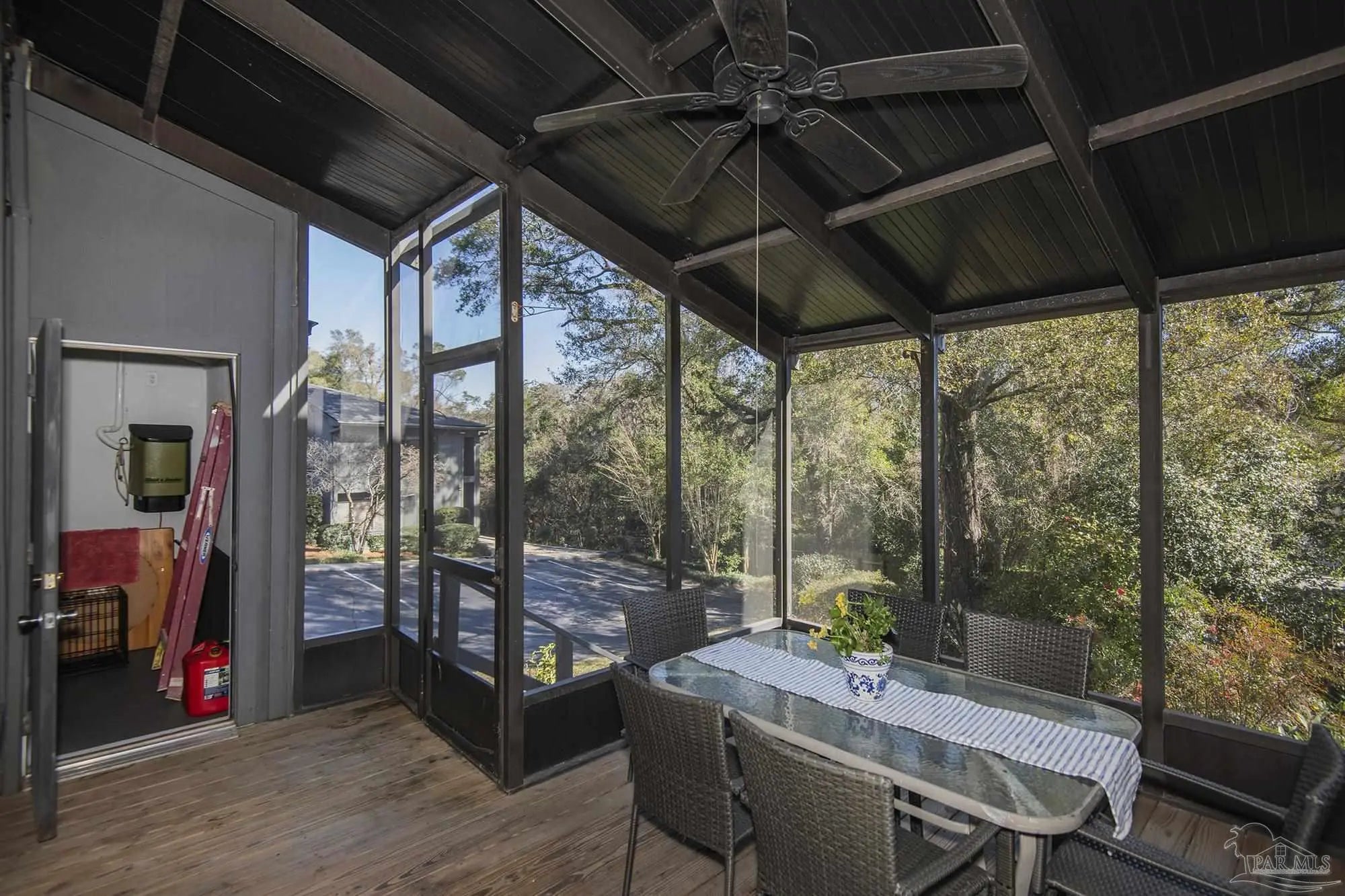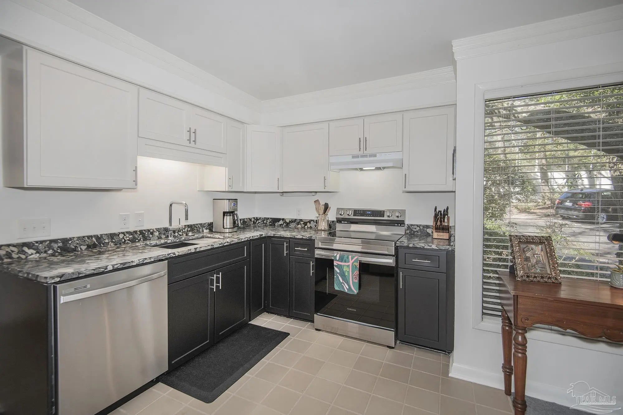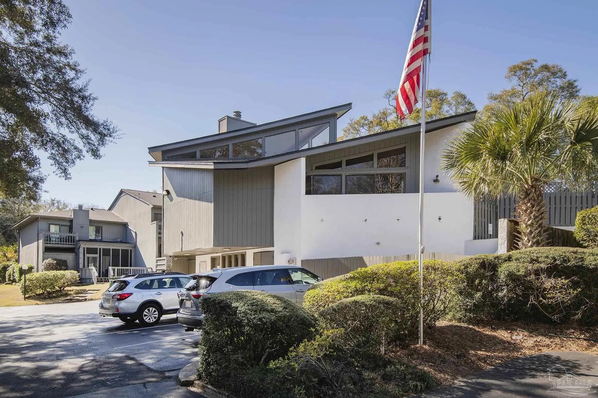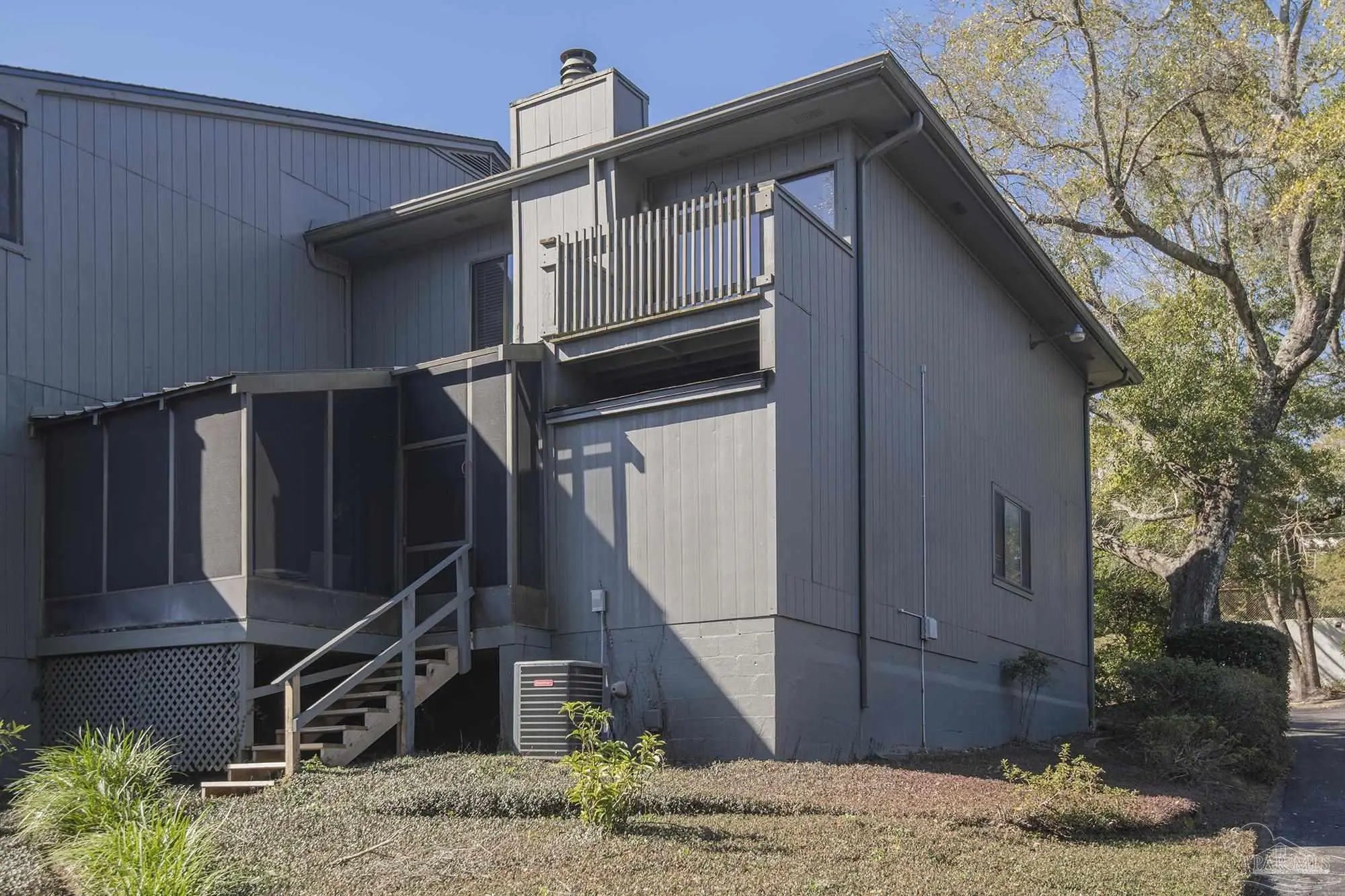 Great PRIVATE, END unit -move in ready! Location is off 9th Ave. between Bayou Blvd. and Fairfield Dr. Two story, spacious comfortable unit with privacy from large balcony, 1,653 sq. ft. with 2 Bedrooms, 2 Full baths and 1/2 Bath downstairs. HOA well managed and dues cover all exterior insurance, roof, trash, water, community pool, tennis courts, exercise room available to residents and conveniently located directly across the street from this unit. This is a two-story unit with both bedrooms and two full baths upstairs. Master suite is private, has full wall of closet space, large room with balcony, double vanities, tub shower and tiled countertops with nice lighting. The second bedroom is spacious, light and bright white with tiled floors and walk-in shower. The washer and dryer convey with the purchase and are located upstairs. New low pile carpet 2025 in light grey color installed on 2nd level and stairway. Tiled kitchen, entry and bath downstairs with living and dining floors light shaded LVP (tan and light browns). Kitchen features new cabinet fronts (refaced all cabinets), Brazilian Marinache granite countertops with featured buffet, new Samsung appliances all electric 2025. Dedicated dining room with picture window overlooking large living room with 10' ceilings and wood burning fireplace with marble base and milled hearth. Crown molding in entry and hallway. 8' sliding doors open to the elevated private (covered and screened) balcony is ideal for dining or relaxing. View from back is wooded, not other units or balconies. Two pets allowed per unit. Stairs in back lead to nice small yard area. Well groomed, quiet, safe and well lighted complex located off 9th Ave. between Bayou Blvd. and Fairfield. Private roads throughout and very nicely landscaped with lots of trees. Great Location! This is a must see for a professional, scaling down scenario or small family on the go. Call for easy access and show.