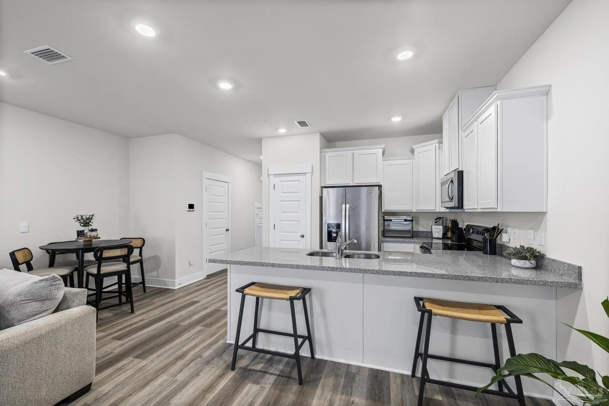 This custom townhouse offers 3 bedrooms, 2.5 bathrooms, and 1,527 square feet of thoughtfully designed living space. Upon entry, you’re welcomed by a light, neutral color palette that enhances the open-concept floor plan, creating an inviting and airy atmosphere. All bedrooms and full bathrooms are conveniently located on the upper level, providing privacy and functional separation from the main living areas. The kitchen features granite countertops, ample cabinetry, and a pantry, making it both stylish and practical for everyday living and entertaining. Enjoy outdoor living on the open patio, perfect for relaxing or dining al fresco. The HOA maintains lawn care, allowing for low-maintenance living, and residents also have access to a community pool—ideal for enjoying warm days and a resort-style lifestyle.
