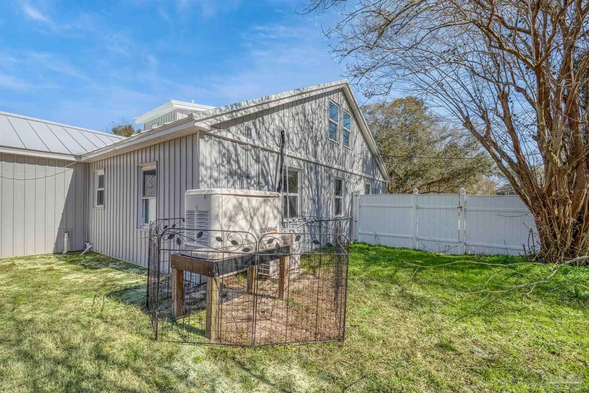 Discover the perfect blend of space and privacy in this 5-bedroom, 3-bath residence with flexibility to house multi-generational living or those seeking extra room to spread out. Situated on an acre of land with no neighbors in sight, this property features a vinyl privacy fence and an expansive yard ideal for entertaining, gardening, or future additions. Inside, the versatile floor plan offering both open-concept gathering areas and private retreats, with luxury vinyl plank and tile flooring on the main level and charming original hardwood floors upstairs. Major improvements provide peace of mind, including impact-resistant windows (2019), updated siding (2019), and a durable metal roof (2020). A whole-house generator (2021) connected to natural gas and water filtration system add comfort and security year-round. Step outside to a large detached workshop with abundant storage. This home is conveniently located minutes from I-10 and Hwy 90, this property offers the serenity of rural living with quick access to shopping, dining, and commuter routes. Unique architectural details and hidden bonus spaces throughout make this one truly special.