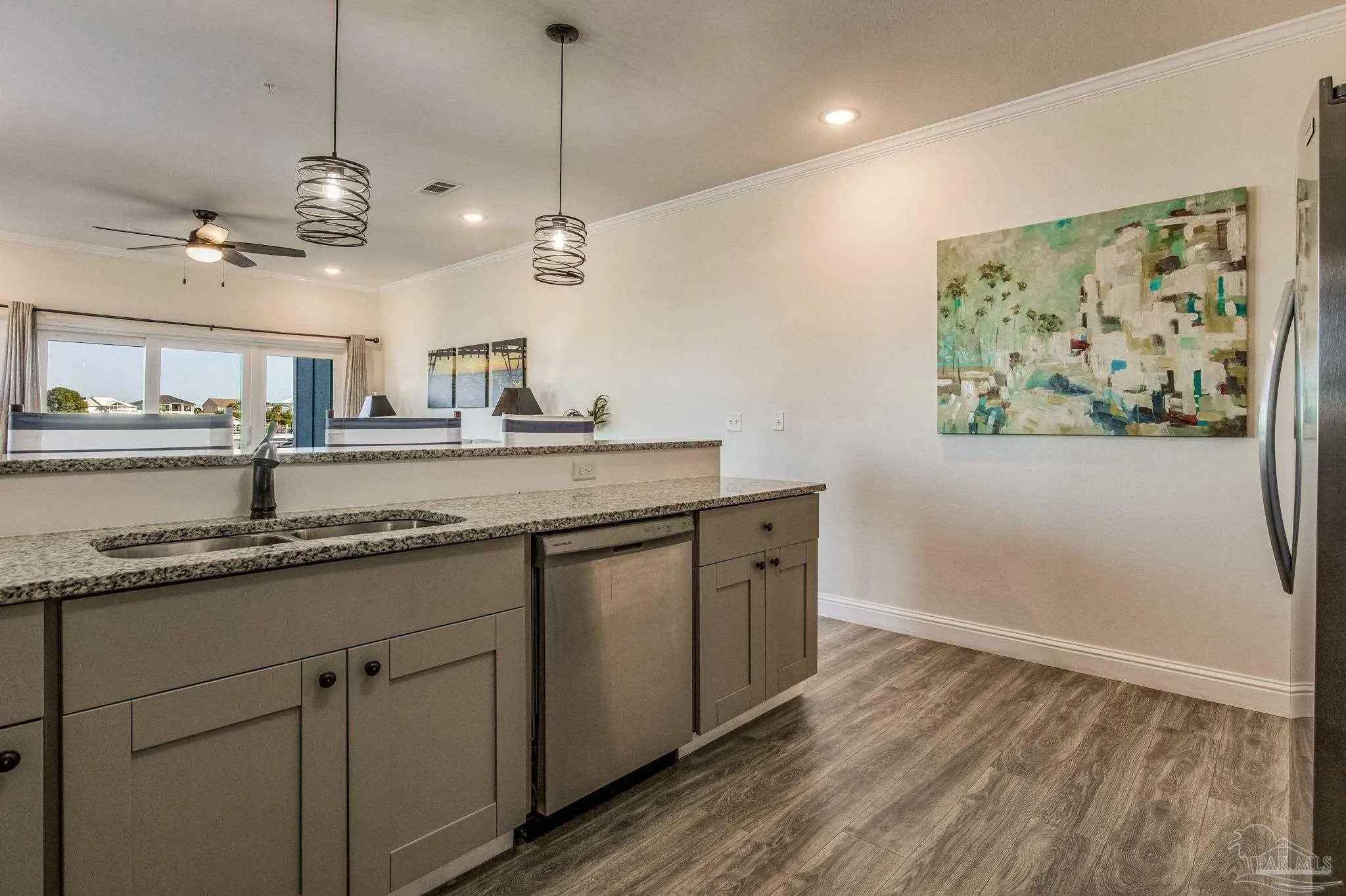 WESTSIDE, GROUND FLOOR, END UNIT UP FOR GRABS at Pescador Landing Condos, where each owner has an assigned slip. Pescador Landing is a newly built (2022) riverside condo tucked off the main road and has only 12 units in total. With this quaint environment, owners and renters enjoy a relaxing and friendly atmosphere. It is standard to see guests on the community deck enjoying each other’s company and the scenery until the sun sets and the stars come out. This amazing new building isn’t short on interior design or comfort, either. These spacious one-bedroom units have two full baths and a massive kitchen with plenty of room to entertain or prepare a full-course meal. Unit A1 is a ground-floor unit with a private patio overlooking Old River and Ono Island. The end units have three additional windows providing a panoramic view of the water. This unit is on the west side/best side, so you can expect to see the most amazing sunsets! The condo is being sold furnished and is turnkey. Pescador Landing has no rental restrictions, making these condos a great investment property. One of the most unique features of Pescador Landing is the designated boat slips. Each owner is assigned a slip for their sole use. The assigned boat slip for A1 is on the east side, the last one before the end of the pier. The slips also have power and water at each one, making the cleanup of your boat a breeze after a day’s outing. Pescador Landing is within walking distance of the famous Florabama complex and is close to one of the public beach accesses, shopping, and many other restaurants.