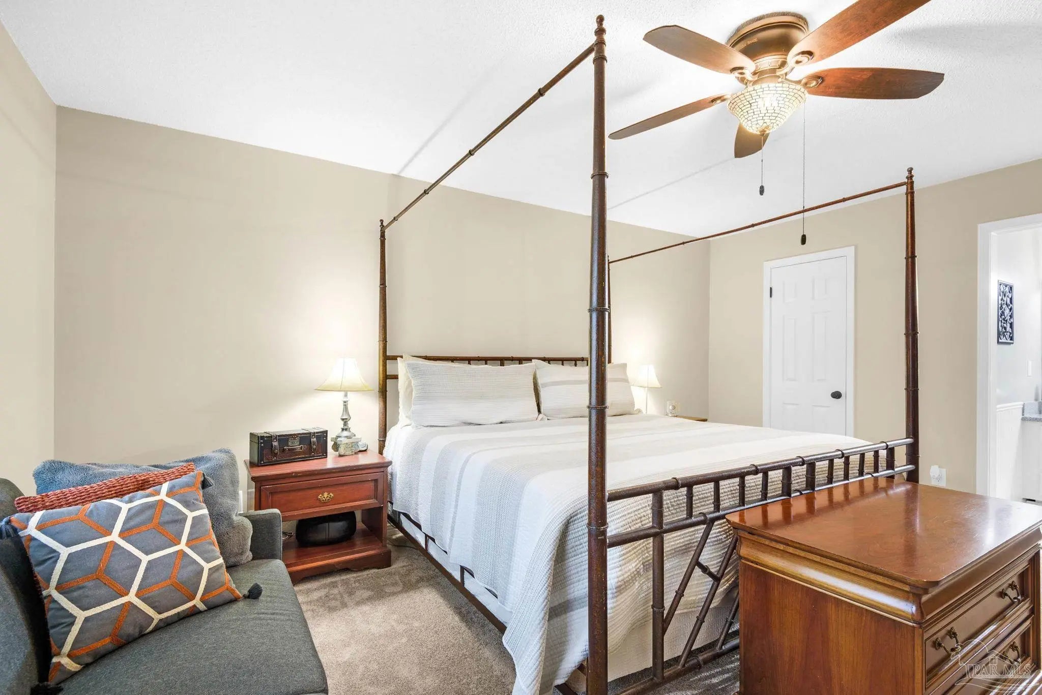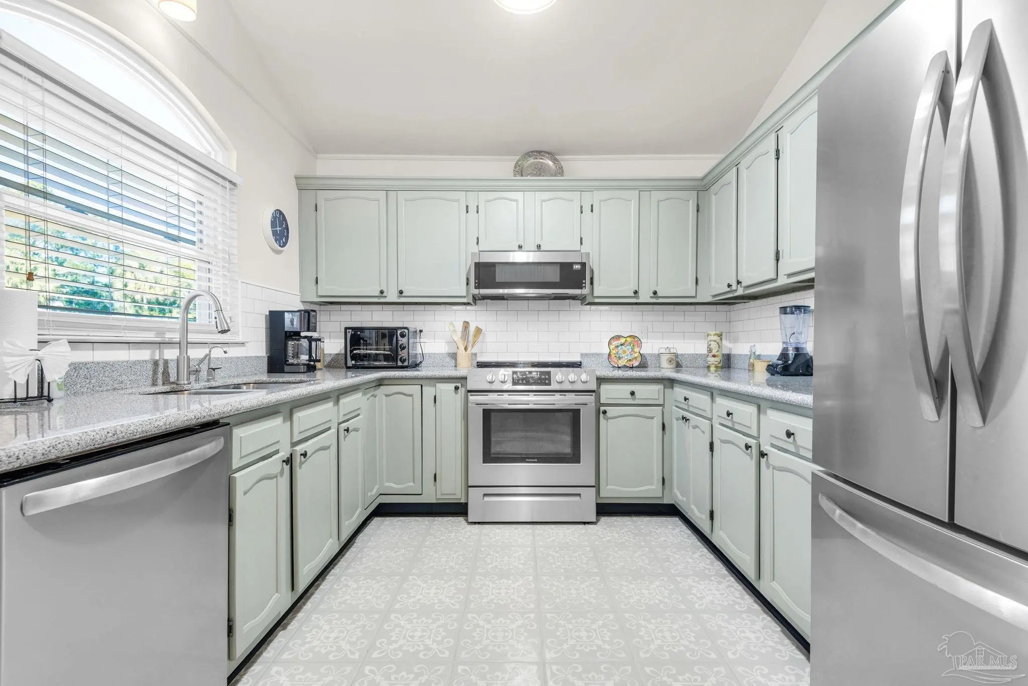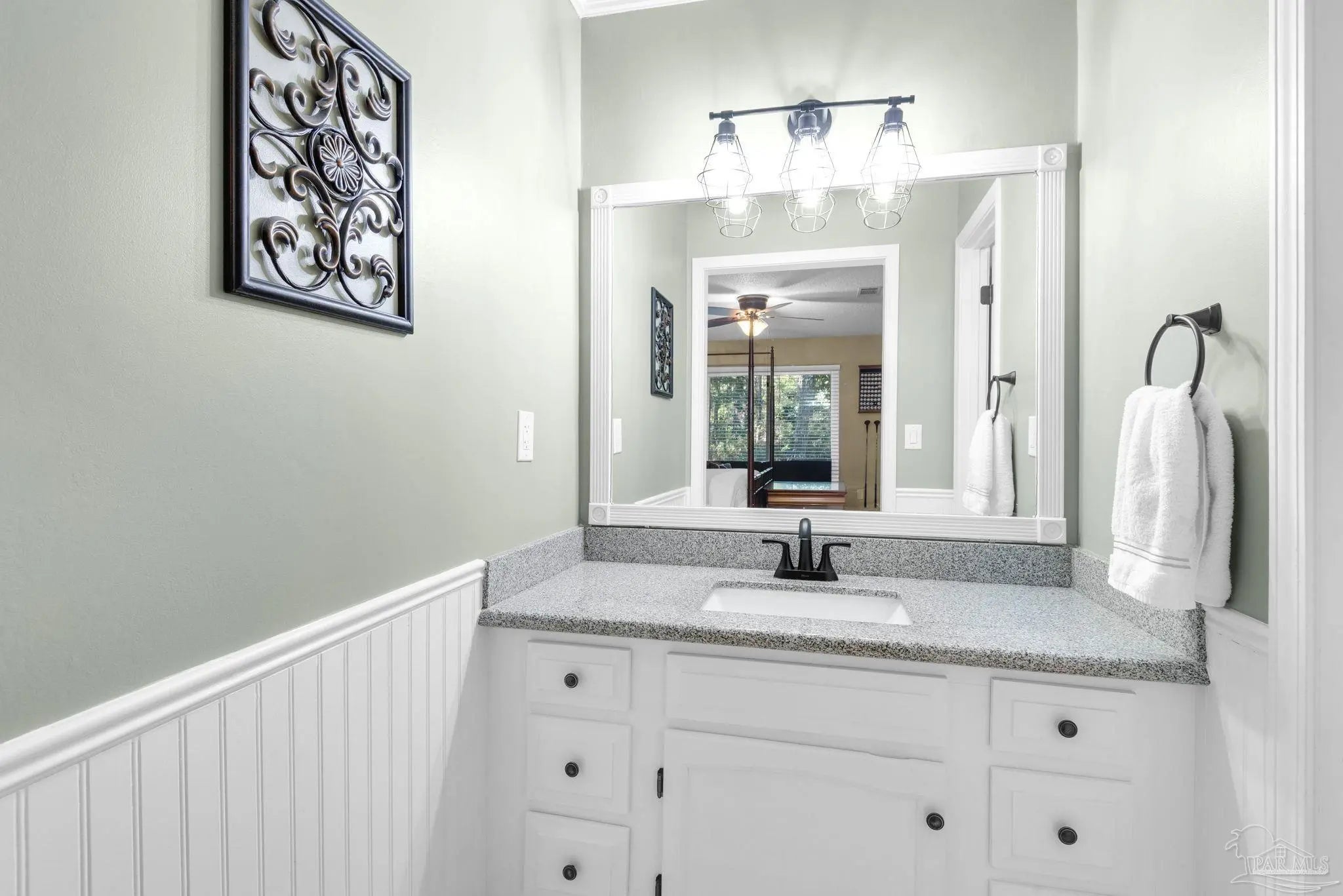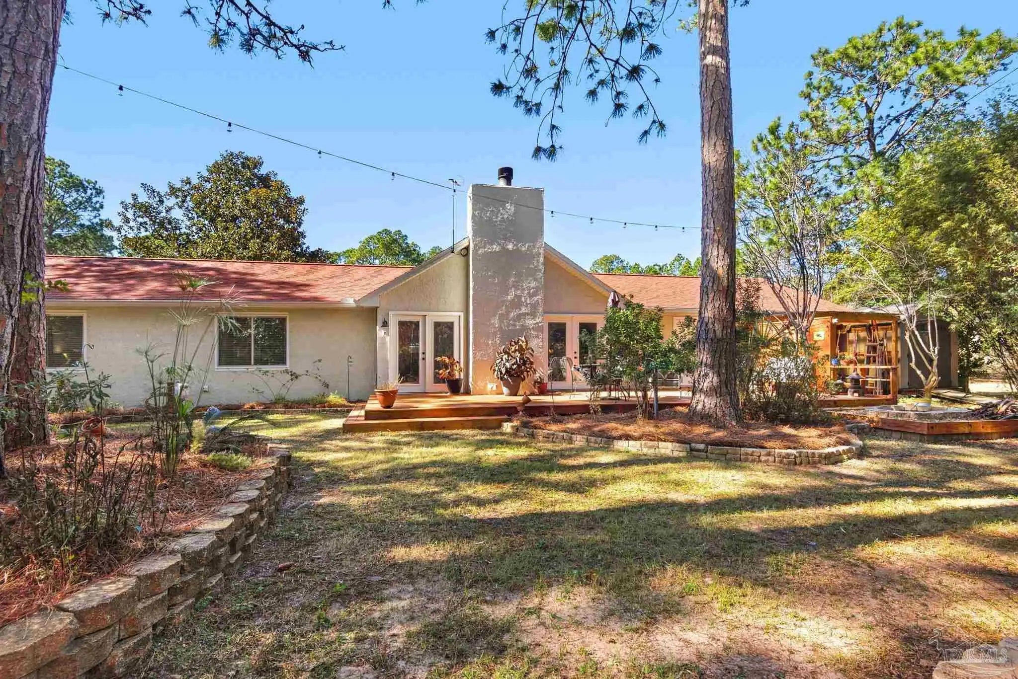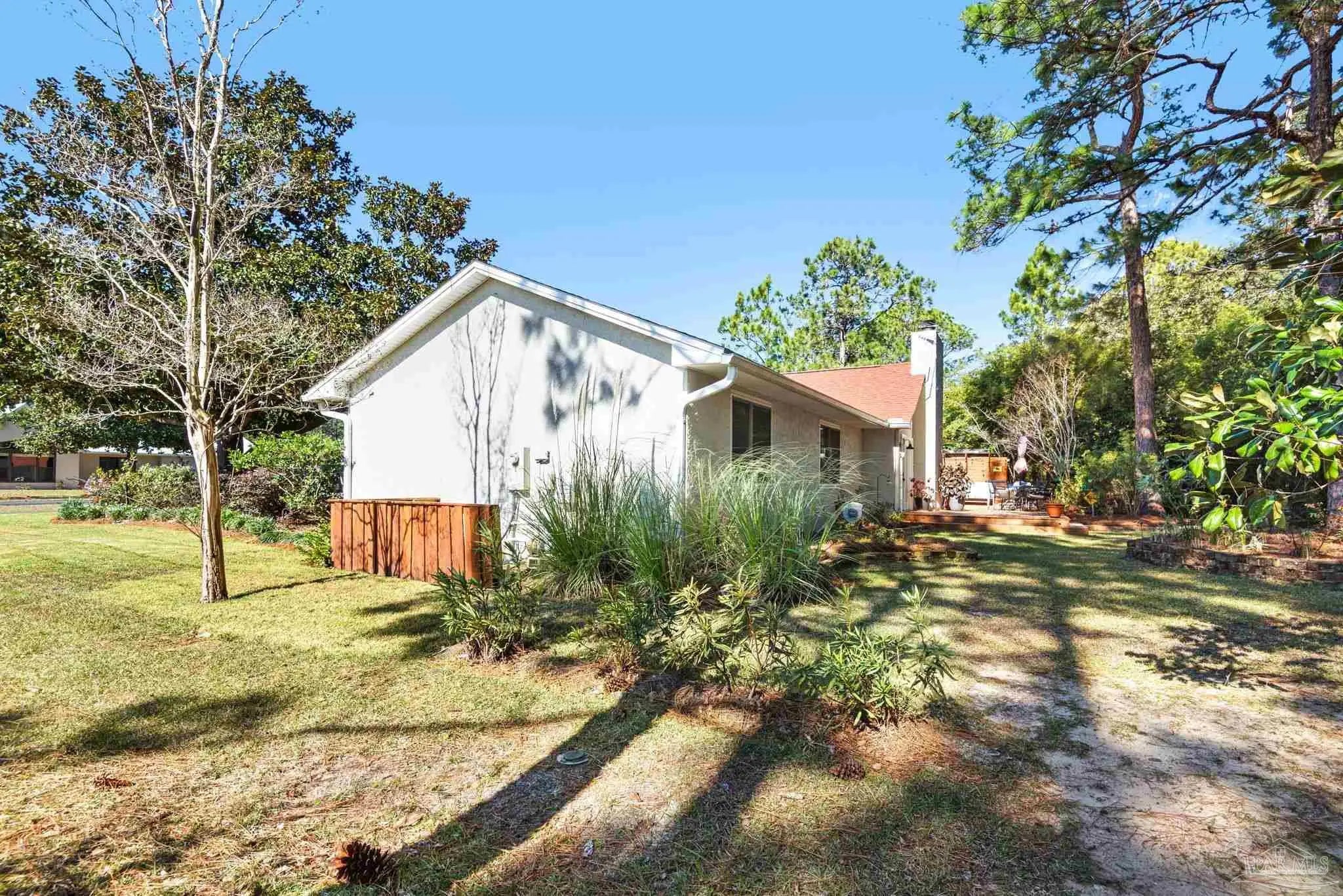 Gorgeous remodeled home in the highly sought after Smugglers Cove subdivision of Gulf Breeze Florida. This move in ready home features a 2021 architectural shingle roof, 2022 HVAC system,2023 impact resistant windows and a completely updated interior with high end plank vinyl flooring and new carpet in the bedrooms. The kitchen and bathrooms offer granite countertops, 2021 stainless steel appliances, and a 2021 hot water heater. Enjoy cozy evenings by the beautiful working fireplace and ultimate privacy in the new outdoor entertainment area complete with TV mount and cable access. The home has been retrofitted for windstorm protection with hurricane shutters, additional attic support, and foam insulation. Additional highlights include a beautiful and functional shed, additional covered storage, and an irrigation system with its own PRIVATE WELL! Golf cart friendly neighborhood with tennis, pickleball, basketball courts, community pool, clubhouse, and DEEDED boat dock with DEEDED launch access! Located almost equidistant between Downtown Pensacola and Hurlburt Field provides exceptional convenience; don't miss this opportunity!
