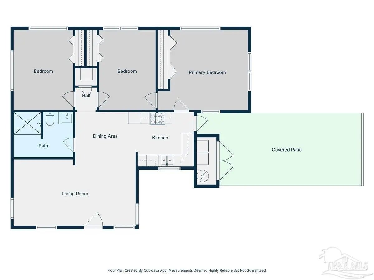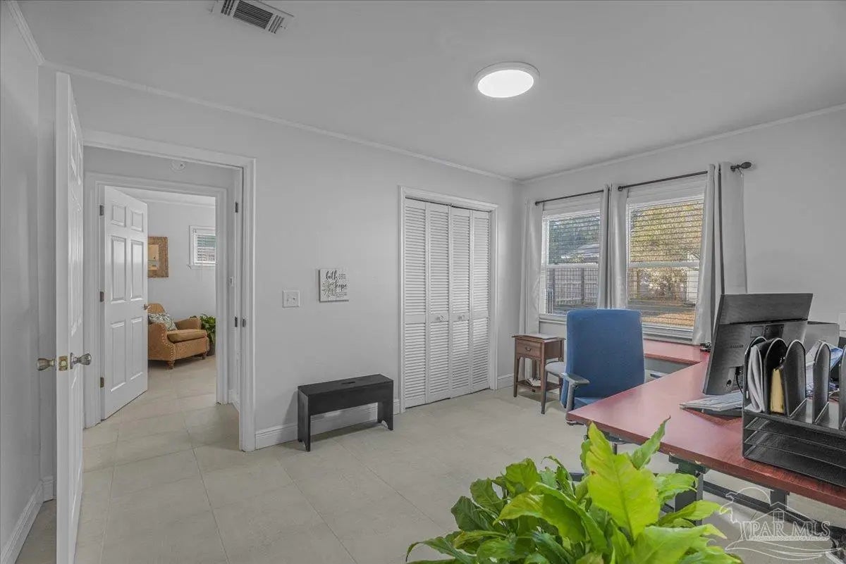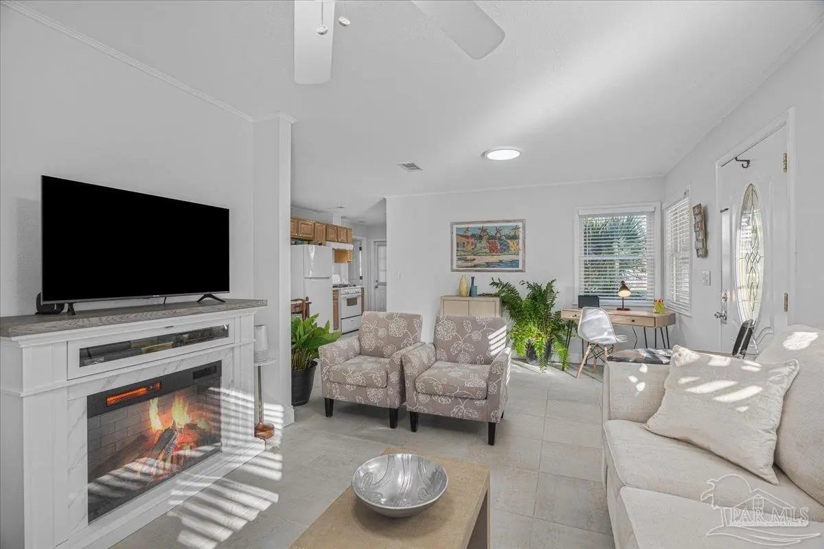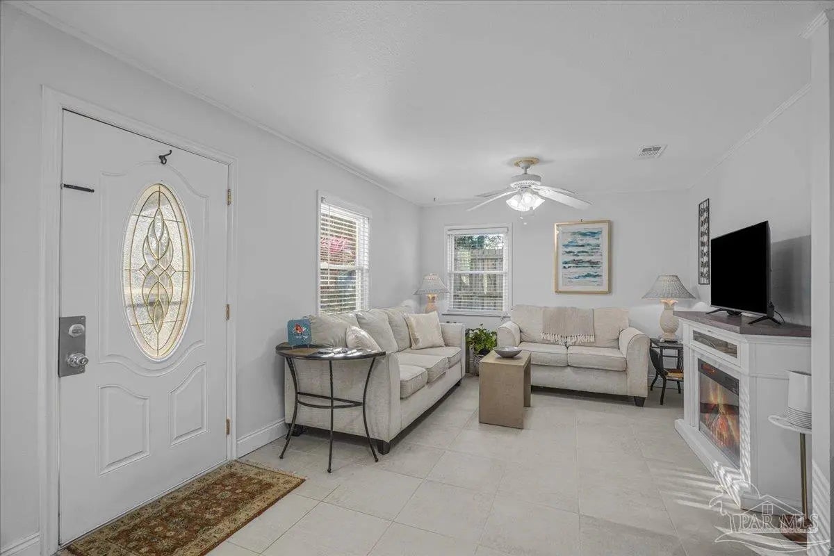 One level open plan living, with beautifully tiled interior, over-height ceilings, bright windows and light decor. 3 large-sized bedrooms with closets and a spacious bath with 4’x4’ walk-in shower. Effective Date 2010 ESCPA. Recently transformed 2021-2025 with new air conditioning, furnace, decorator tile floor, quartz counters, kitchen upgrades. New appliances, fridge, microwave, dishwasher, washer, dryer and bathroom remodel. All interior has been professionally drywalled and painted with new trim. The exterior has a new roof, paint and glazing replaced in the upgraded vinyl double pane windows. New electrical panel 2005 permitted. Huge sunny backyard. Carport on concrete slab, poured sidewalks and patio-stone work. Very private and a perfect combination of sun and shade. Sit out front or enjoy the large covered outdoor patio for dining and barbeques. This is an excellent fully fenced and gated corner property (2 lots). An ADU is allowed in the rear yard as per City Planning. Location, location, location! On the edge of downtown, close to Blue Wahoos stadium, Joe Patti’s Seafood, just blocks from the ocean, walk to Bruce Beach Park or waterfront dining. Home is wheelchair accessible, entry, bath, bedrooms all main living areas level floor.