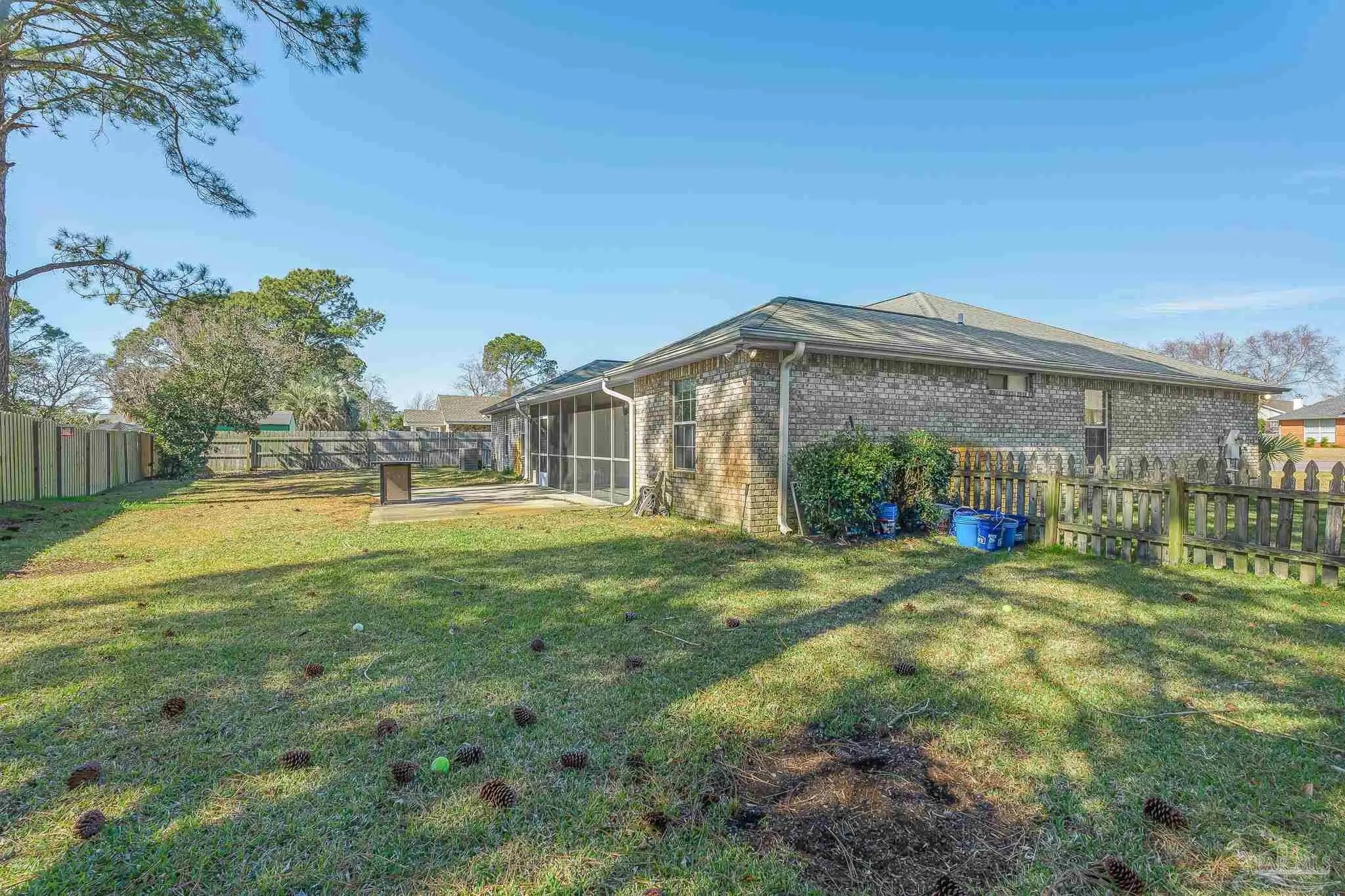 Designed for comfortable living and effortless entertaining, this inviting 4-bedroom, 2-bath brick home blends timeless style with thoughtful updates in a desirable Gulf Breeze setting. Step inside to a bright, welcoming entryway that immediately feels warm and open, setting the tone for the well-planned layout throughout. A formal dining room offers the perfect space for gatherings, while a dedicated office provides flexibility for work or study. The eat-in kitchen with breakfast nook serves as the heart of the home, ideal for both daily living and casual meals. The spacious primary suite is a relaxing retreat featuring a walk-in closet and an en-suite bath with dual vanities, a soaking tub, and a separate shower. Enjoy outdoor living with a screened-in porch, open patio, and a large fenced backyard ready for entertaining, play, or quiet evenings. Major updates add significant value, including a brand-new roof to be replaced prior to closing, along with an updated AC system and water heater, offering peace of mind for years to come. Located in a quiet, established neighborhood close to top-rated schools, shopping, dining, parks, and just a short drive to Pensacola Beach, this home offers the perfect balance of comfort, convenience, and coastal lifestyle
