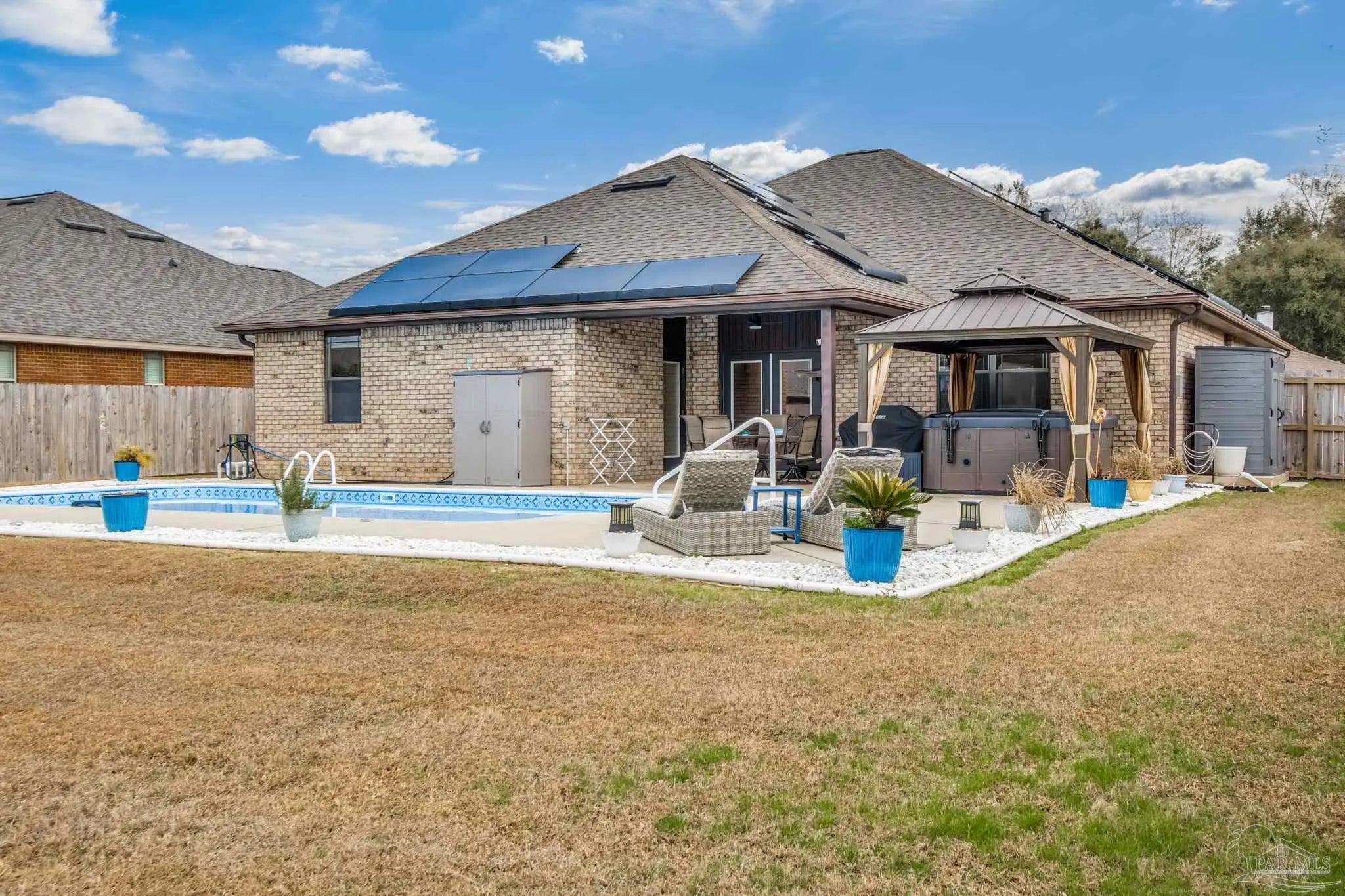 Welcome home to this beautifully updated property at 7457 Deck Lane, ideally located near Navy Federal Credit Union and offering a perfect blend of comfort, efficiency, and outdoor living. Major improvements provide peace of mind, including a new roof (2021), new water heater (November 2022), and a new HVAC system installed approximately two years ago. The primary suite shines with a fully upgraded master bathroom (2022) featuring a stunning custom tile shower. Step outside to your private backyard retreat complete with a pool featuring new equipment, pool liner, and gas heater (2023), plus a hot tub and gazebo added in 2024—perfect for entertaining or relaxing year-round. Energy efficiency takes center stage with solar panels and a battery system installed in Spring 2025, helping reduce utility costs and add long-term value. This well-maintained home offers thoughtful updates throughout and an unbeatable location close to major employers, shopping, and dining. Don’t miss the opportunity to own a move-in-ready home with significant upgrades already completed—schedule your showing today! You can also reach out to the listing agent for a video of this property prior to your showing.