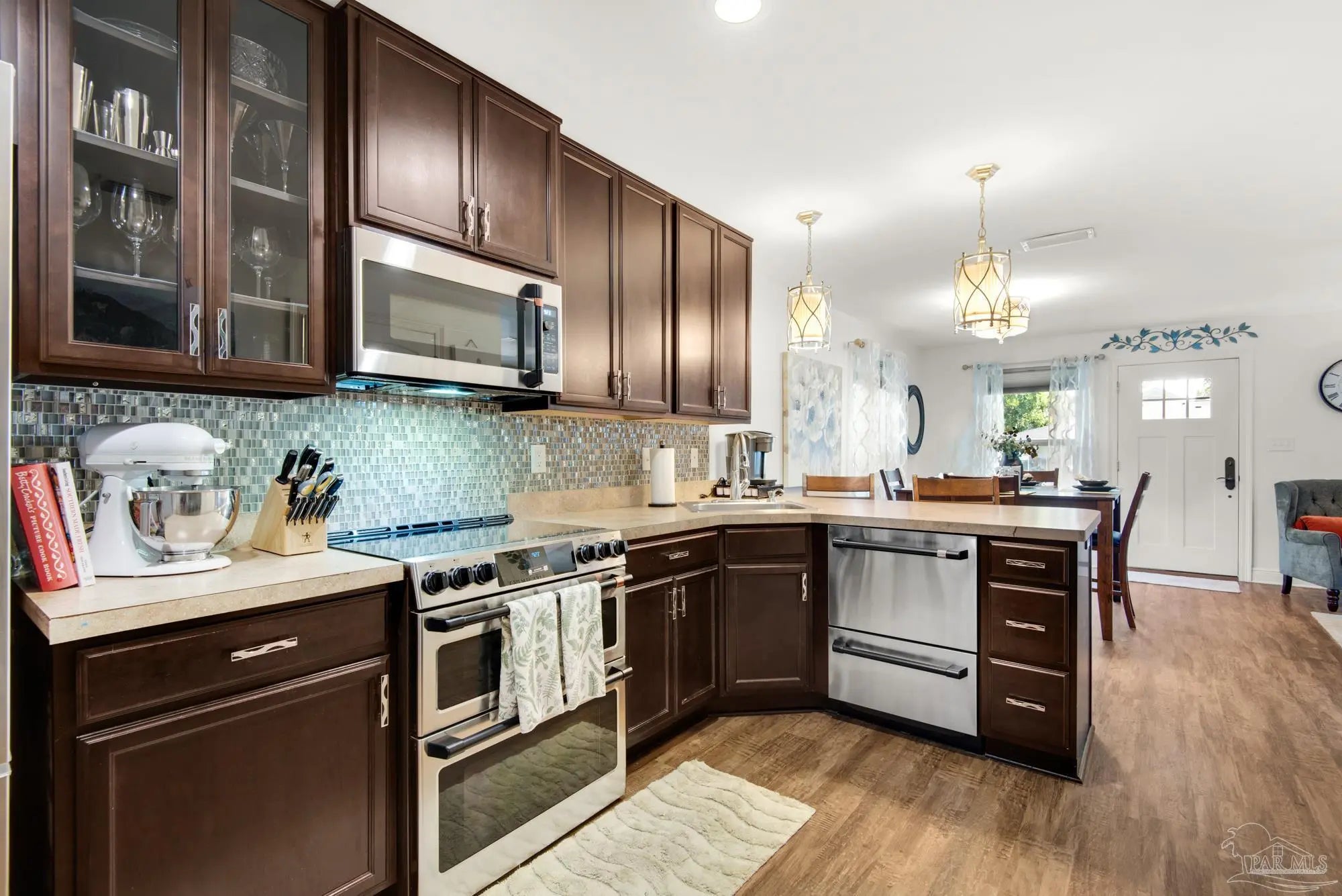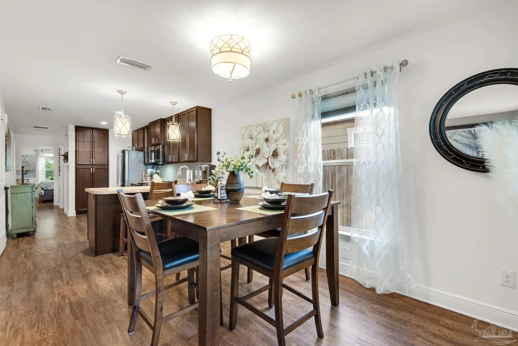 FULLY FURNISHED. Never before offered. Whether you're seeking a turnkey residence to call home or a sophisticated investment property, this exceptional offering truly has it all. This fully furnished executive 2-bedroom, 2-bath residence spans 1,060 square feet and is ideally located just four blocks from the vibrant dining, shopping, and entertainment of downtown Palafox Street. Thoughtfully designed for both comfort and style, the home features a charming front porch seating area and a bright, open-concept living and dining space perfect for entertaining. The chef-inspired kitchen boasts a peninsula with seating for three and has recently had top of the line all new GE Cafe series kitchen appliances installed. This includes french door refrigerator, a double- door oven and smooth top range, upgraded built in microwave with external exhaust fan, and a premium double-drawer dishwasher. The kitchen comes fully equipped with service for eight, complete cutlery, pots and pans, bakeware, and an impressive array of small appliances and culinary tools—including a coffee maker, toaster, hand mixer, butcher block with professional knives, and dozens of cooking utensils. Two spacious pantries and soft-close drawers throughout add both elegance and functionality. Additional upgrades include Hunter Douglas Duette Architella window shades on all windows, designer lighting, and upgraded ceiling fans. The utility room houses an LG large-capacity washer and dryer with Wi-Fi capability. The primary suite features a king-size bed with coordinating nightstands and a chest of drawers, while the guest bedroom offers a queen-size bed with nightstand and dresser. Enjoy a private backyard oasis with mature trees and an integrated sprinkler system—perfect for relaxing or entertaining. Refined downtown living at its finest. Designer Cottage. All of the inside finishes have been continually upgraded. Located in the Heart of Downtown, this home has been a money making machine since 2016.