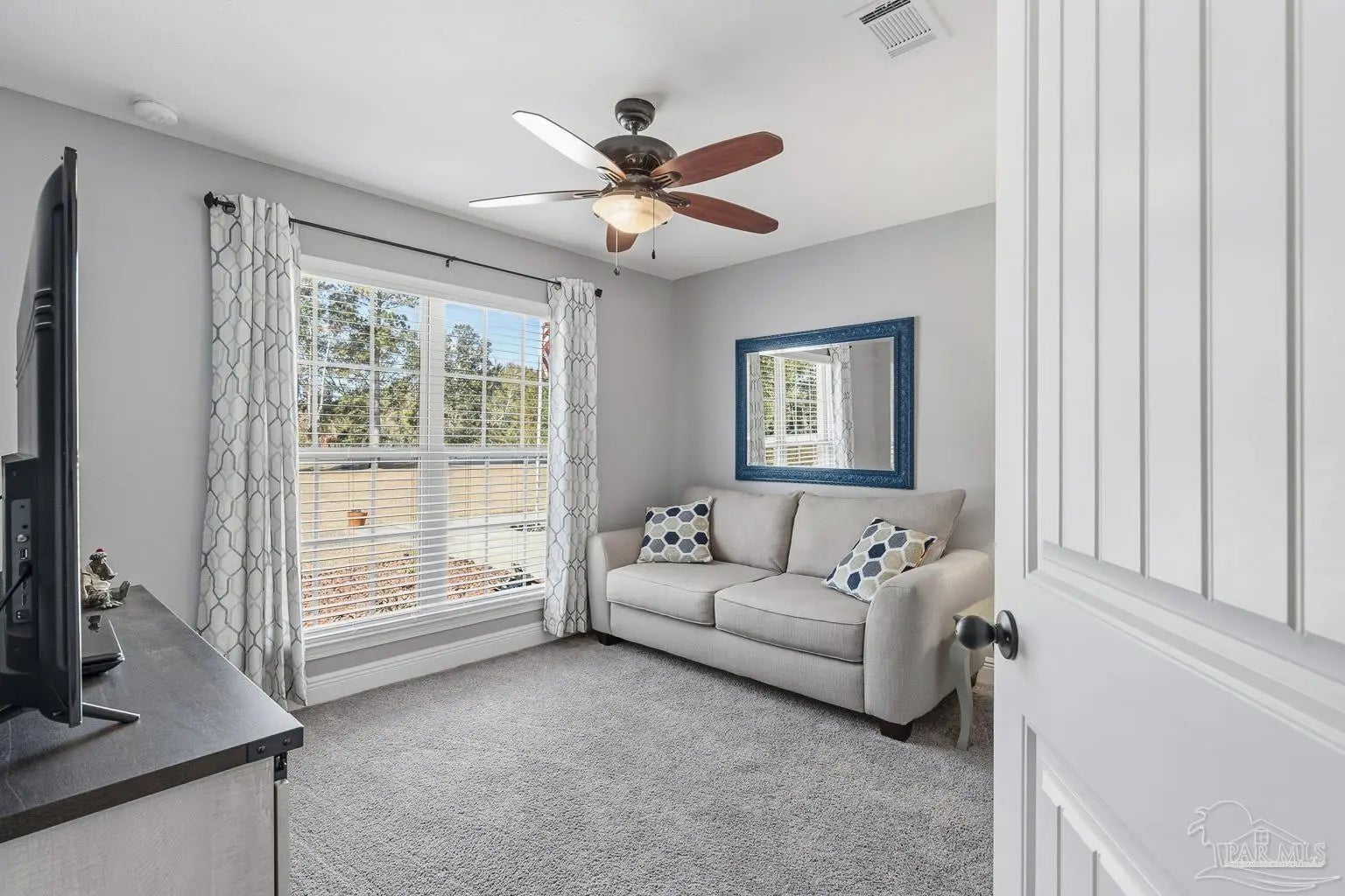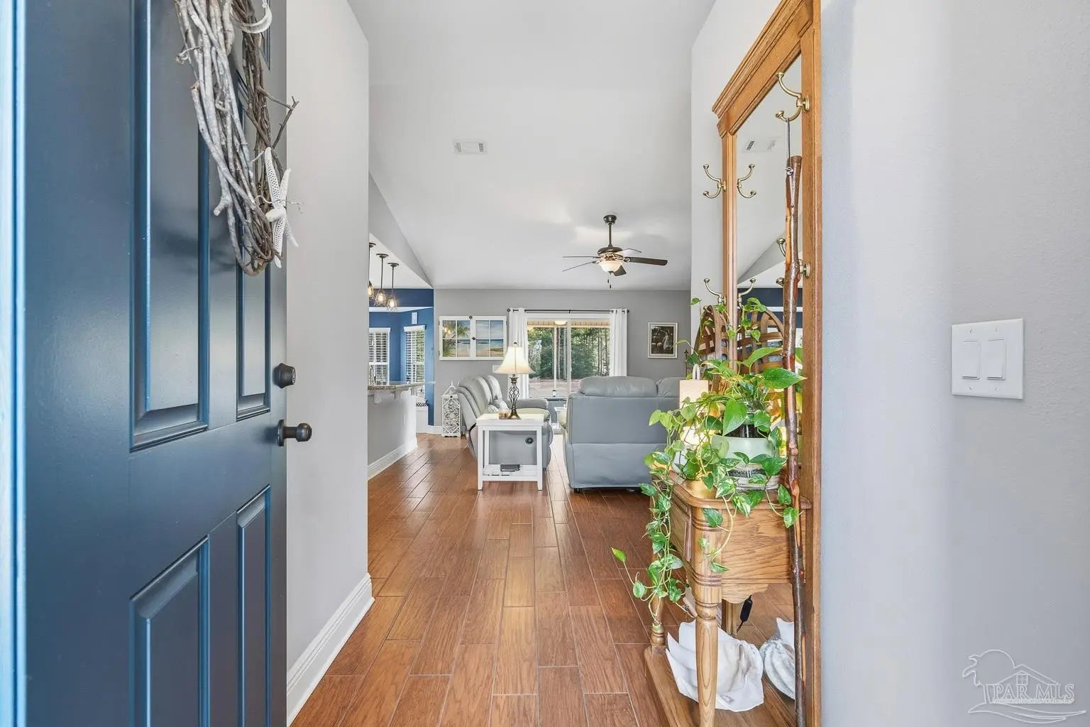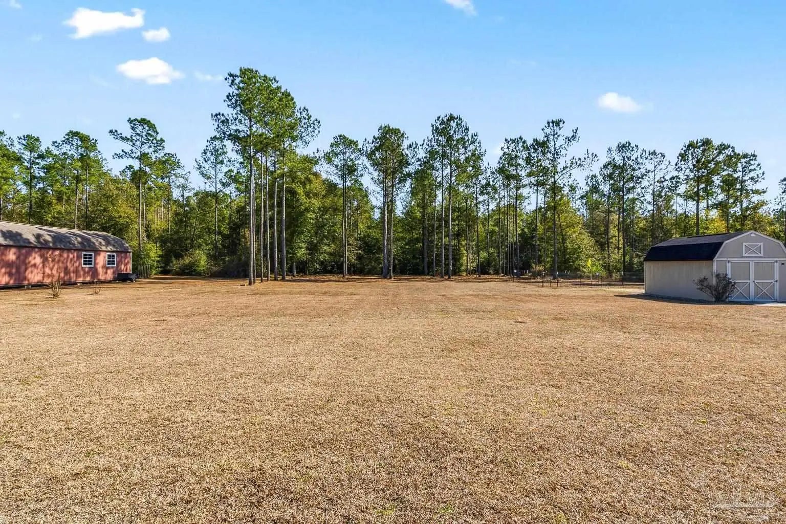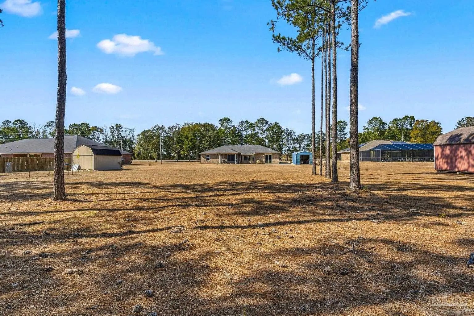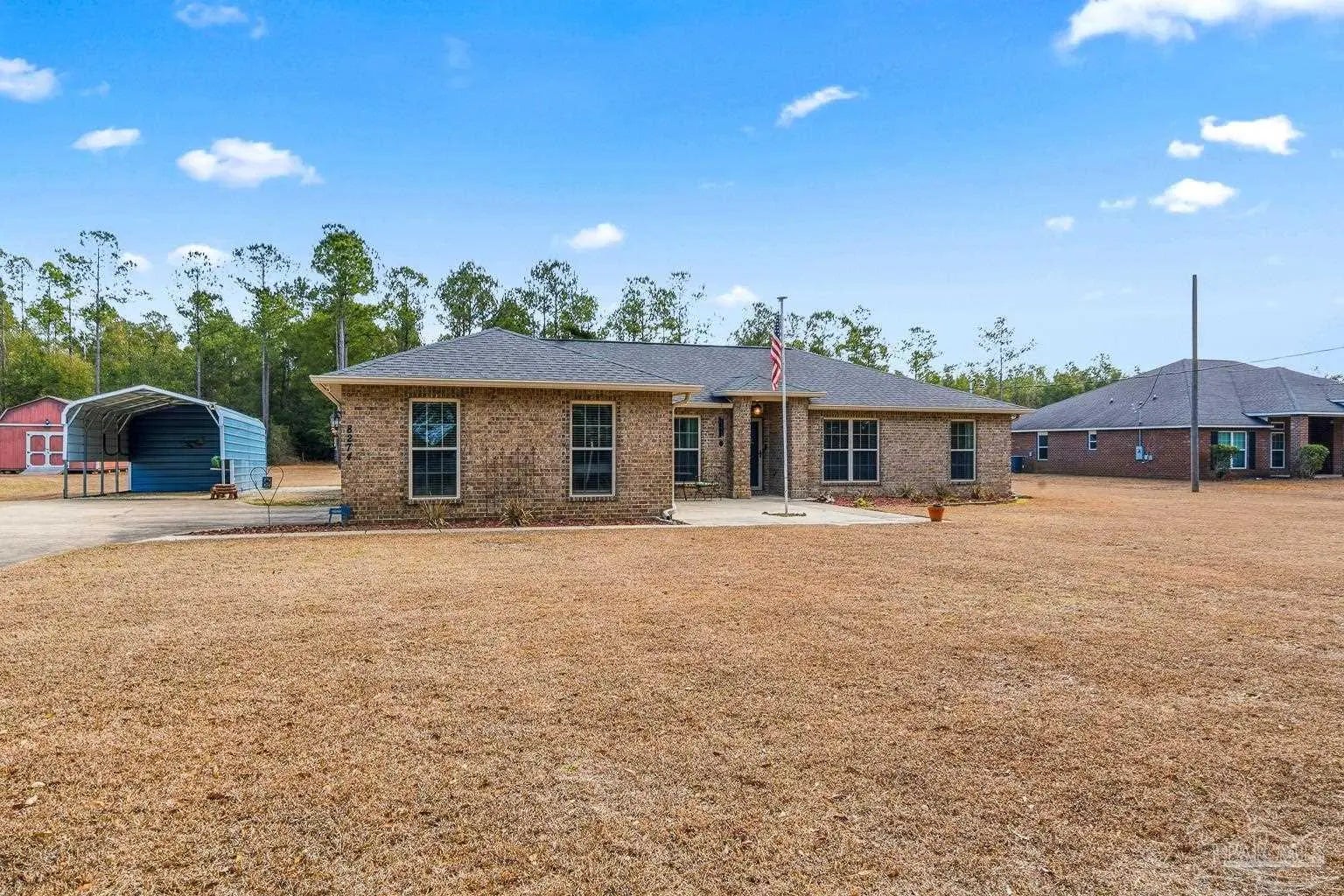 Pride of ownership is evident in this 4-bedroom, 2-bath brick home situated on a spacious 1.07-acre lot and conveniently located just 6.5 miles from NAS Whiting Field. This property offers both comfort and flexibility with no HOA restrictions, allowing the freedom to have horses, chickens, and other approved livestock. The home features a thoughtfully designed split floor plan with abundant natural light throughout. The spacious primary bedroom suite includes a large walk-in closet, double vanity, separate soaking tub, walk-in shower, and a private water closet. Wood-look tile flooring runs throughout the home, offering the appearance of hardwood with the durability and easy maintenance of tile. All appliances convey, making this home truly move-in ready. This brick home is connected to both Point Baker water and a private 180-foot water well, providing added efficiency and versatility, and includes an attached two-car garage. A sprinkler system services both the front and backyard using water from the private well. Outdoor living is enhanced by a screened-in back porch measuring approximately 11’ x 11.5’, perfect for enjoying the peaceful surroundings. Additional bonus features include a powered shed in the backyard, an additional carport-style shed on the side of the home, custom gutters, and durable brick construction. Meticulous upkeep is evident throughout, making this property a standout for buyers seeking space, freedom, and convenience.