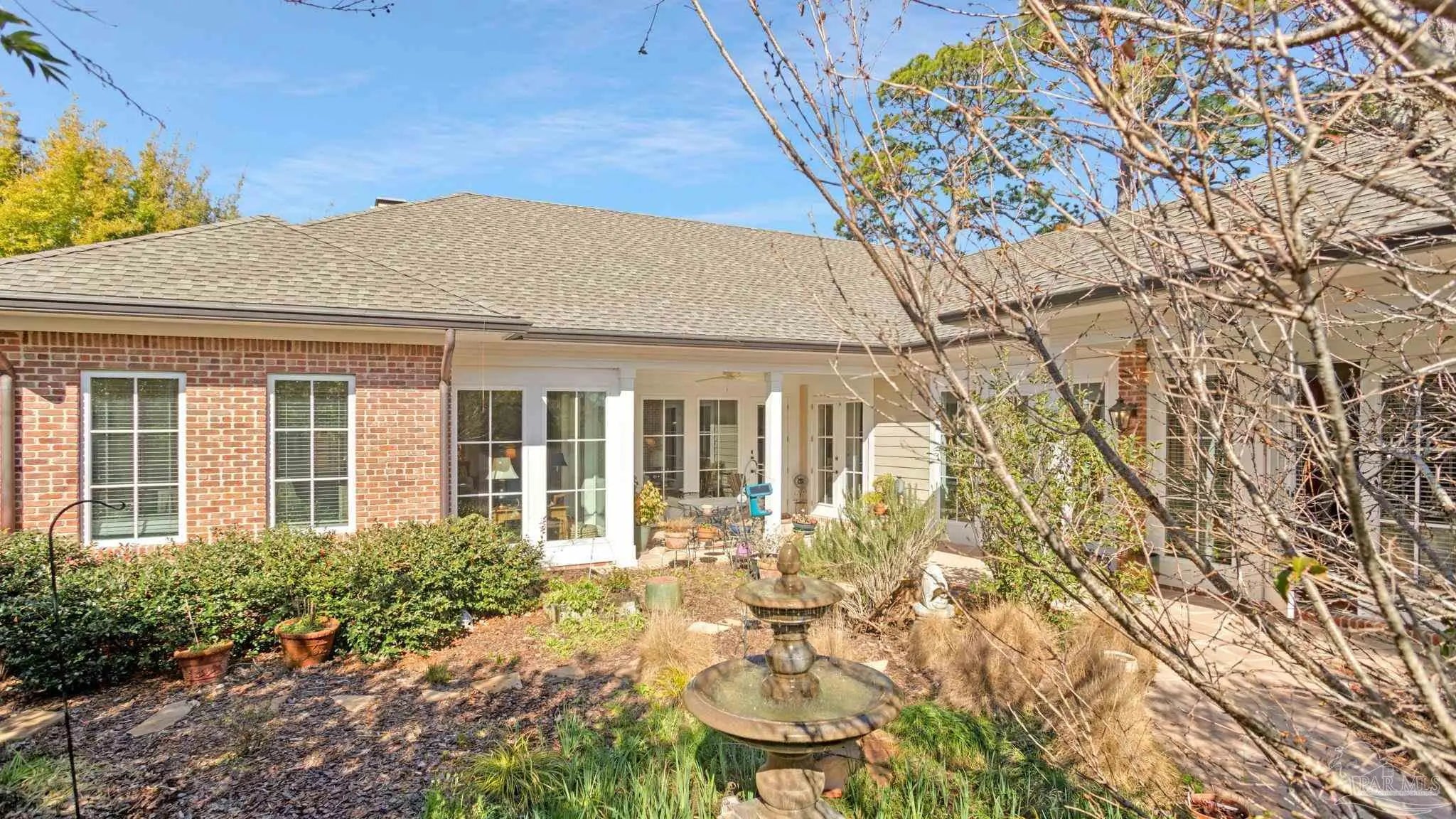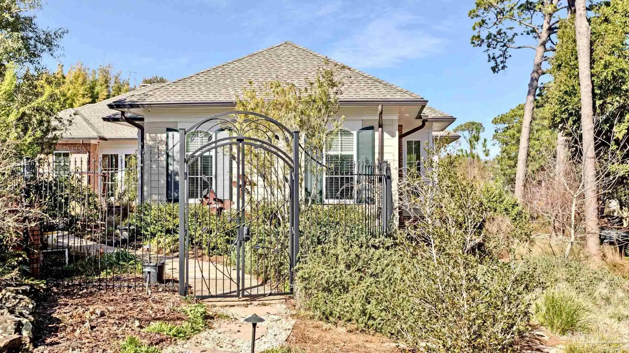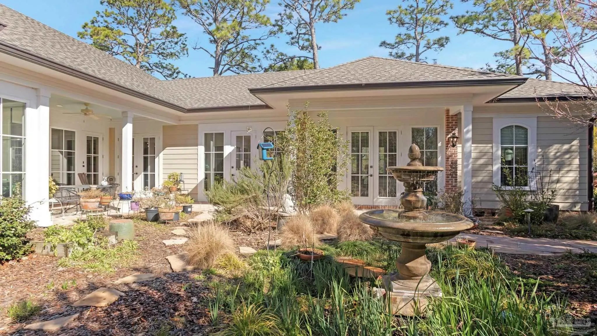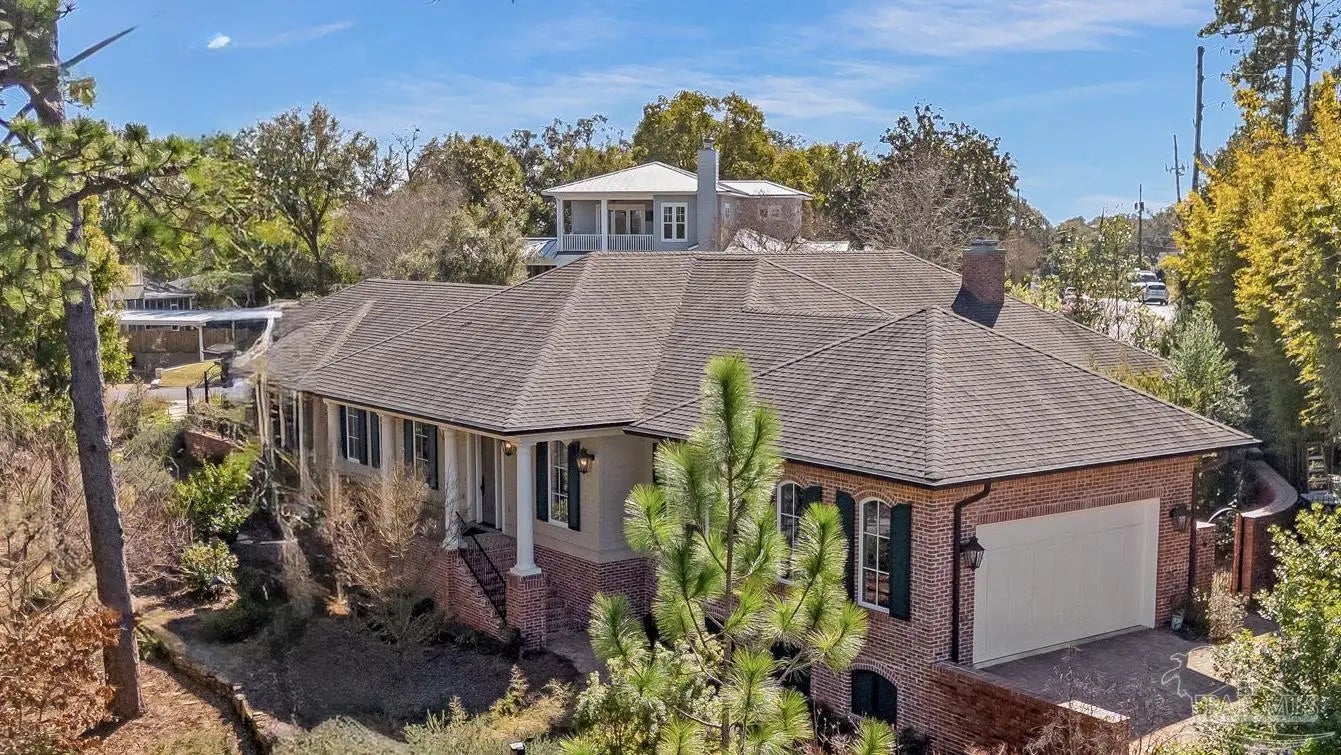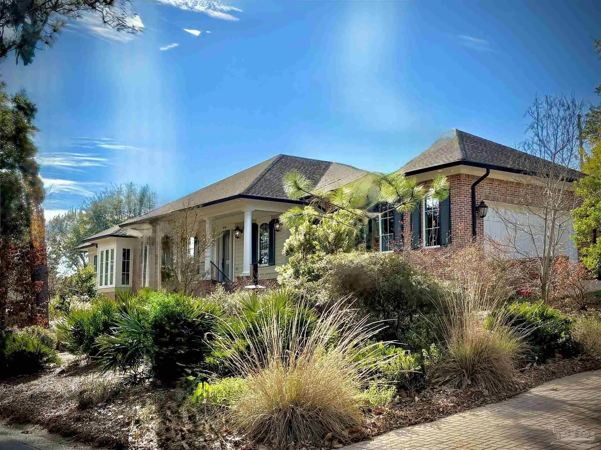 This elegant 9 year old Southern Traditional home rises with quiet confidence and charm in sought after East Hill. Located across from Bayou Texar. The entry opens to 11.5’ ceilings with a grand foyer (8'x22') with two step cove molding and beautiful polished 4” red oak hardwood floors. The expansive (13’x 22’) Dining room is filled with natural light pouring in through arched impact glass window and French doors. Transitioning to the heart of the house is the family room with an impressive 11’ high x 32’ long floor to ceiling solid brick accent wall and fireplace lending warmth and texture. The professionally designed modern kitchen with top of the line Thermador appliances, gas Range and rich quartz countertops and large island with prep sink support the open design. A large pantry and a 10’ long wet bar with ice maker that also serves as a secondary work space or buffet. A serene private primary suite in a split plan is designed as a true retreat, featuring a comfortable sitting area. French doors open to a private covered porch overlooking a New Orleans style, walled courtyard with tiered fountain echoing peaceful sounds of water splashing. The spacious bath offers a large walk-in or roll-in glassed shower, while the generous custom designed closet features built in cabinetry with hanging space, drawers and shelving. Two additional bedrooms with ensuite baths offer privacy and convenience. Inspired by nature, the owner has thoughtfully designed, planted and maintained a botanical garden and tranquil wildlife sanctuary, emphasizing native plants. Spring will bring a revelation of and texture with wildflowers, camellias - even a wetland oasis!!!Extras include a side entry garage with 220 outlet for charging station, security system with camera monitors, whole house generator. Built to handicapped accessible standards this home is truly a lifetime treasure.