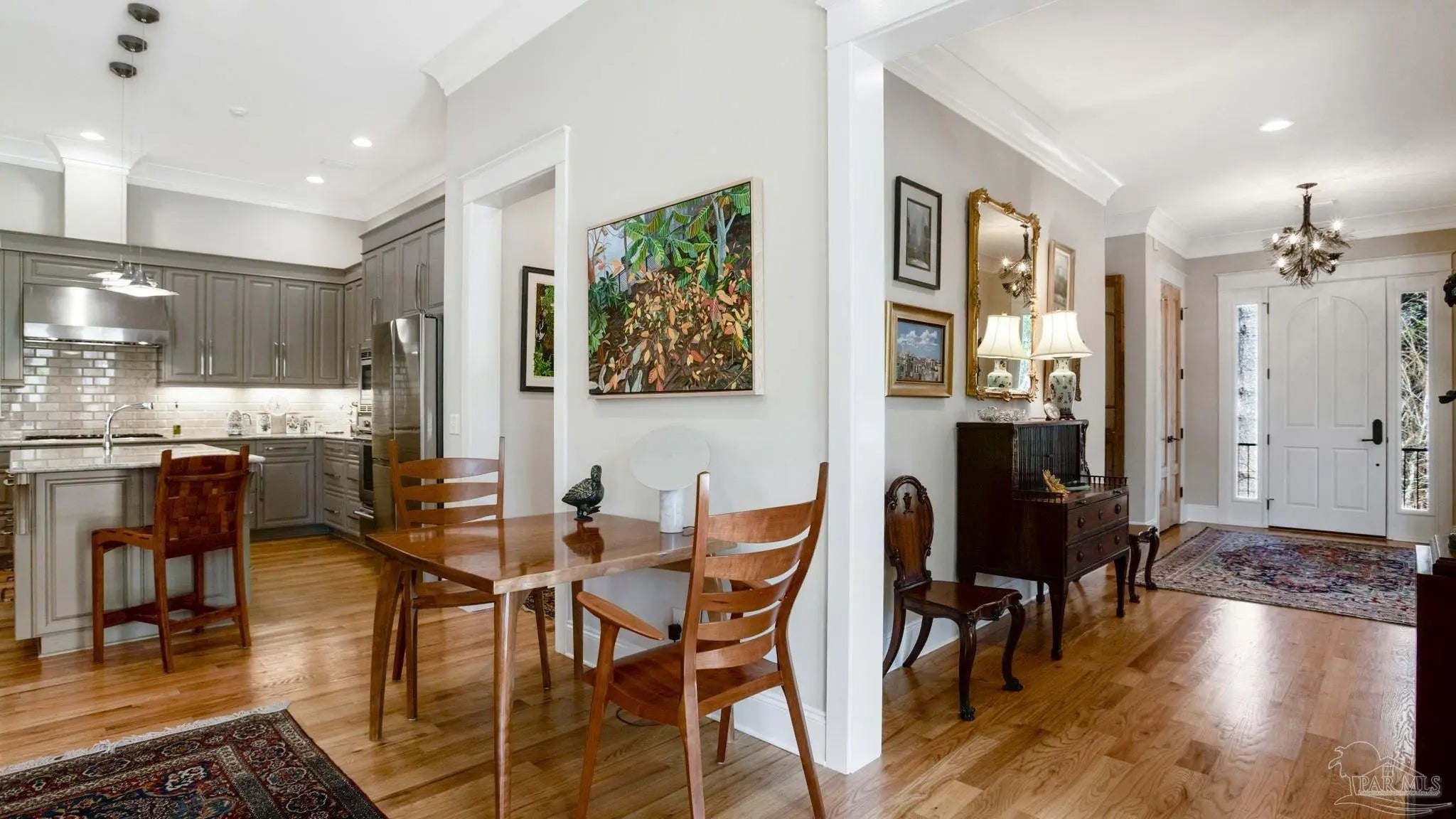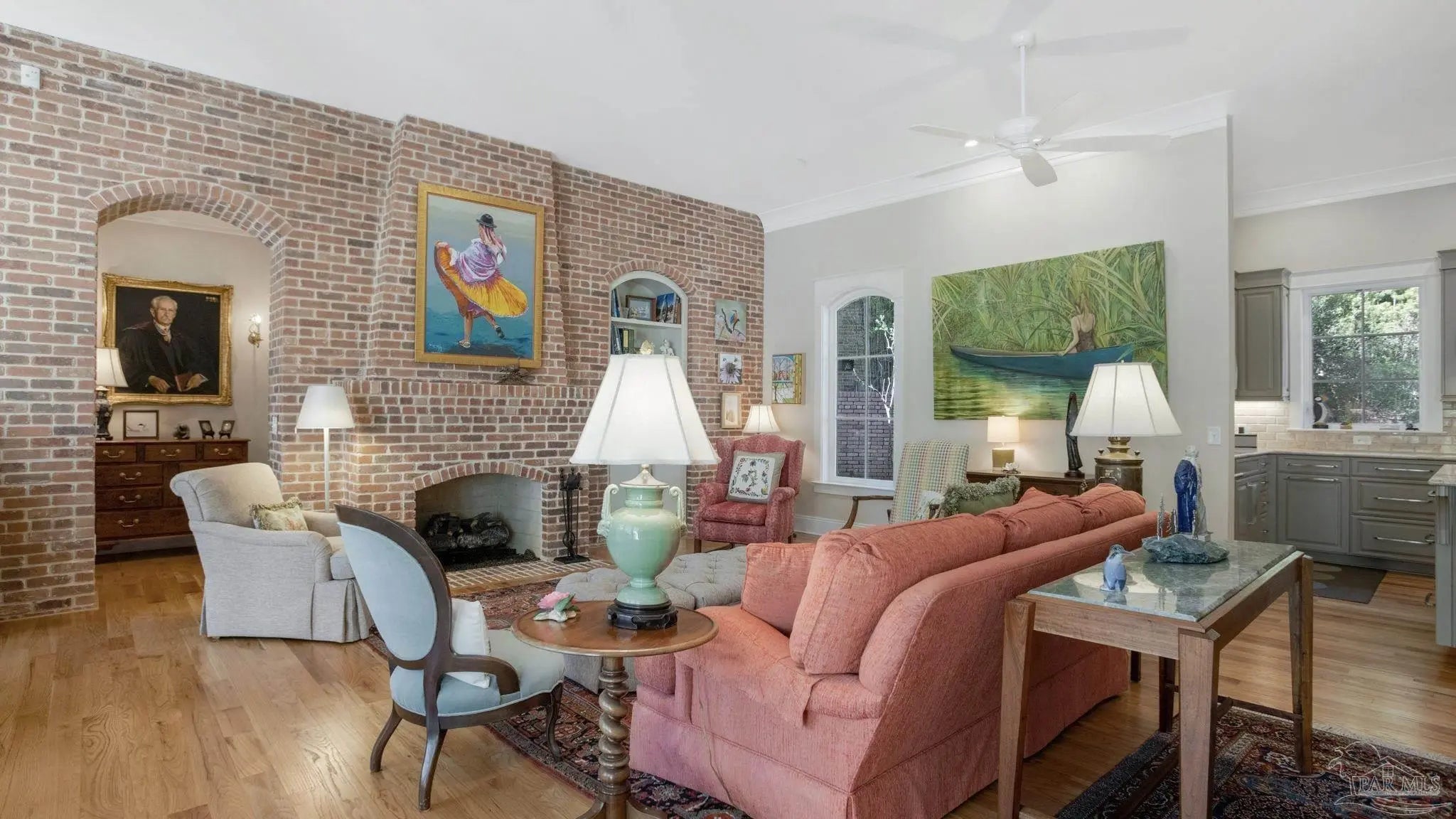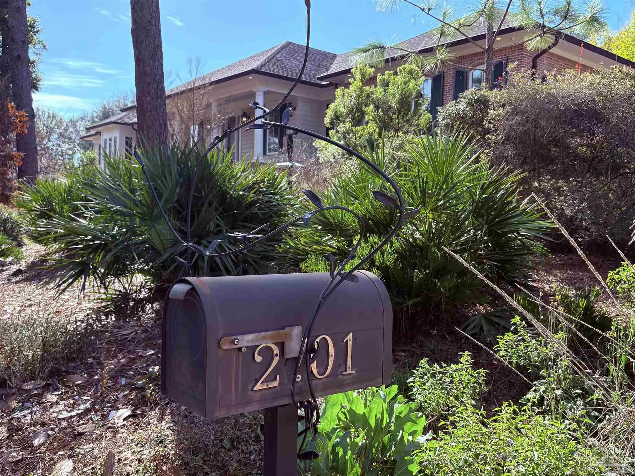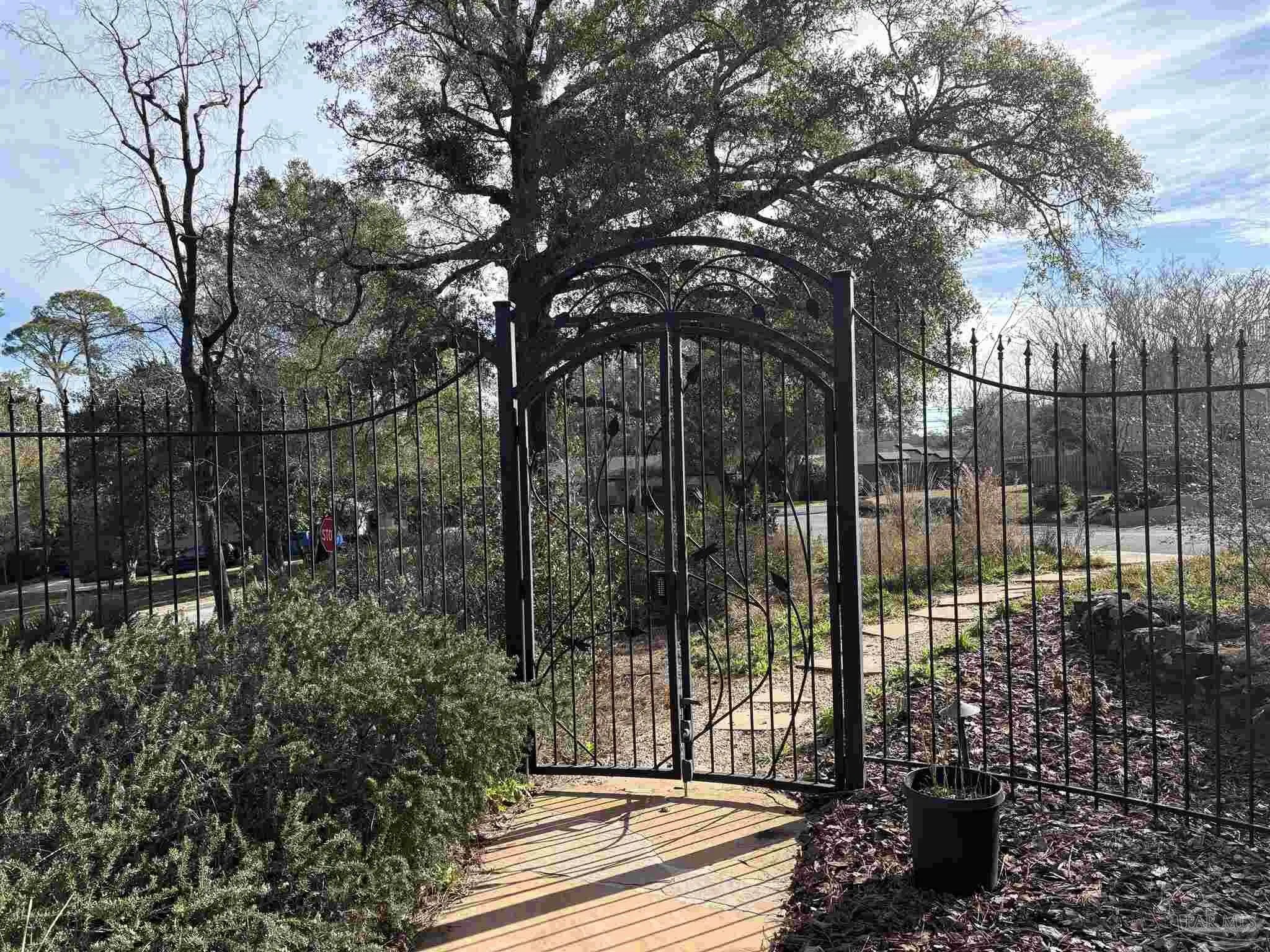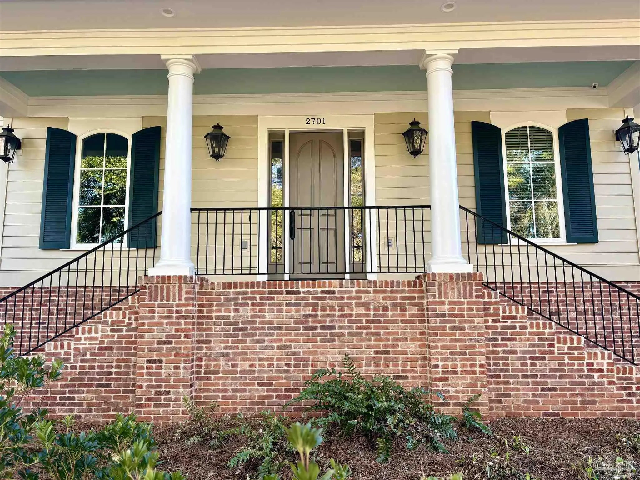 This elegant 9 year old Southern Traditional home rises with quiet confidence and charm in sought after East Hill. Located across from Bayou Texar. The entry opens to 11.5’ ceilings with a grand foyer (8'x22') with two step cove molding and beautiful polished 4” red oak hardwood floors. The expansive (13’x 22’) Dining room is filled with natural light pouring in through arched impact glass window and French doors. Transitioning to the heart of the house is the family room with an impressive 11’ high x 32’ long floor to ceiling solid brick accent wall and fireplace lending warmth and texture. The professionally designed modern kitchen with top of the line Thermador appliances, gas Range and rich quartz countertops and large island with prep sink support the open design. A large pantry and a 10’ long wet bar with ice maker that also serves as a secondary work space or buffet. A serene private primary suite in a split plan is designed as a true retreat, featuring a comfortable sitting area. French doors open to a private covered porch overlooking a New Orleans style, walled courtyard with tiered fountain echoing peaceful sounds of water splashing. The spacious bath offers a large walk-in or roll-in glassed shower, while the generous custom designed closet features built in cabinetry with hanging space, drawers and shelving. Two additional bedrooms with ensuite baths offer privacy and convenience. Inspired by nature, the owner has thoughtfully designed, planted and maintained a botanical garden and tranquil wildlife sanctuary, emphasizing native plants. Spring will bring a revelation of and texture with wildflowers, camellias - even a wetland oasis!!!Extras include a side entry garage with 220 outlet for charging station, security system with camera monitors, whole house generator. Built to handicapped accessible standards this home is truly a lifetime treasure.