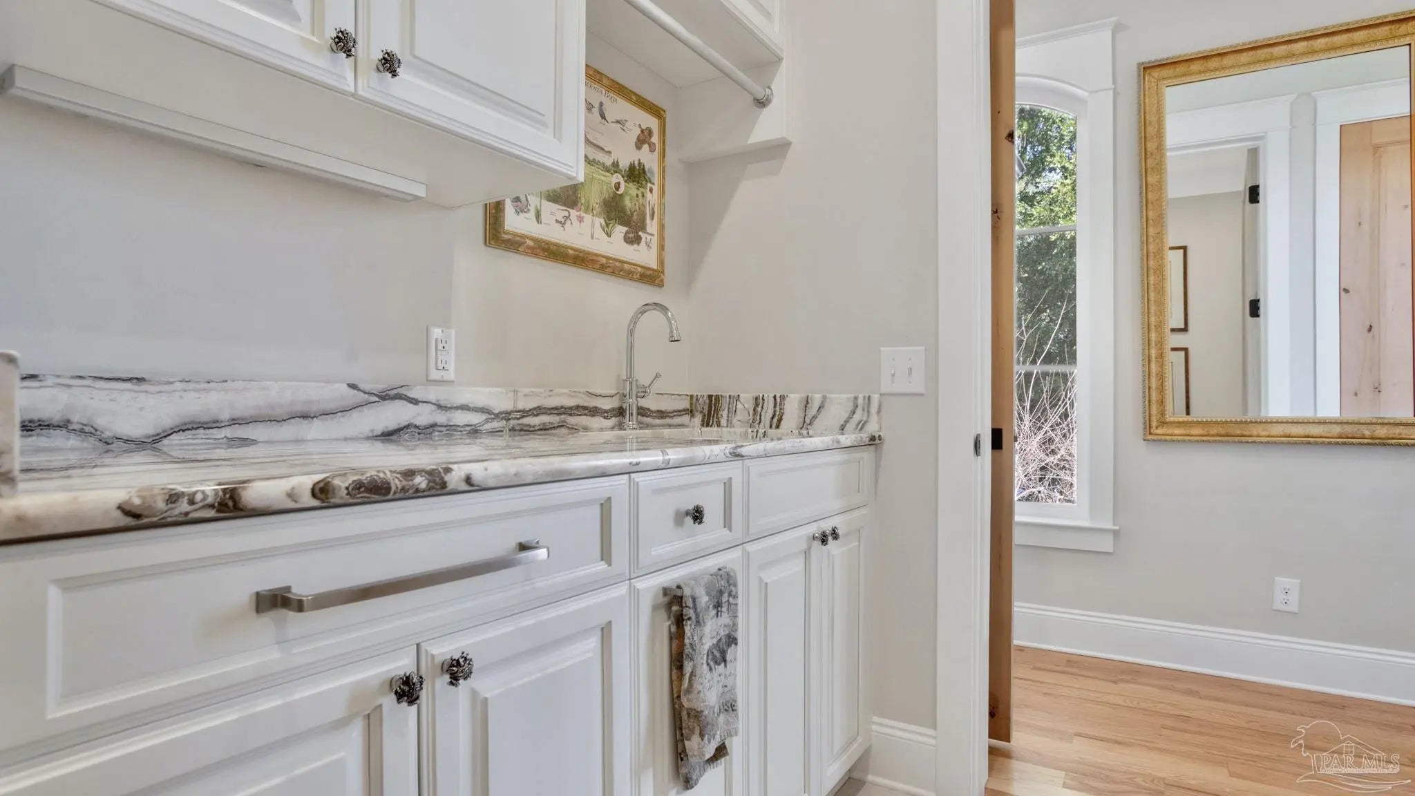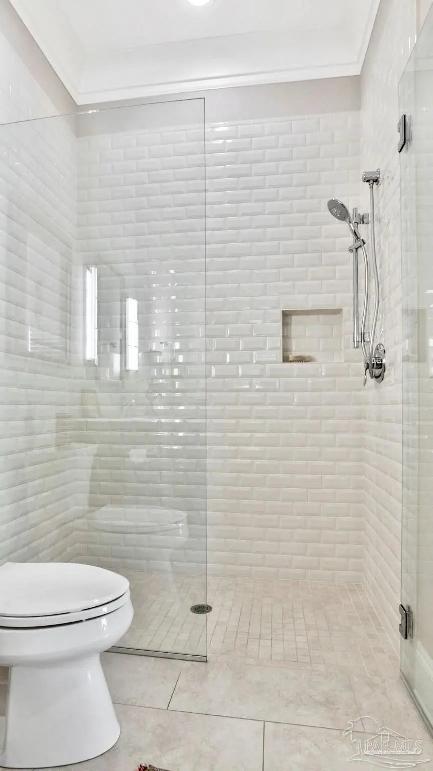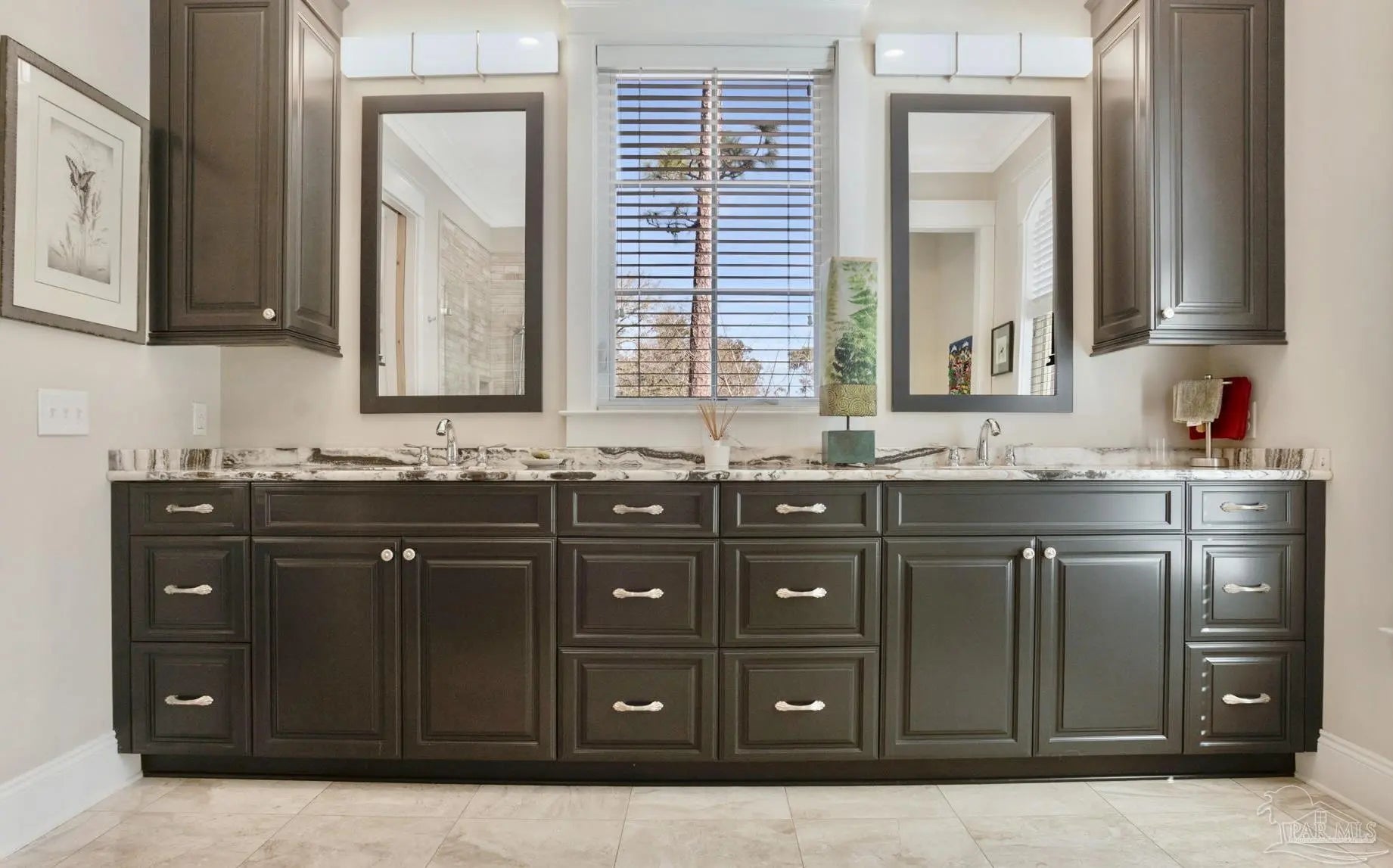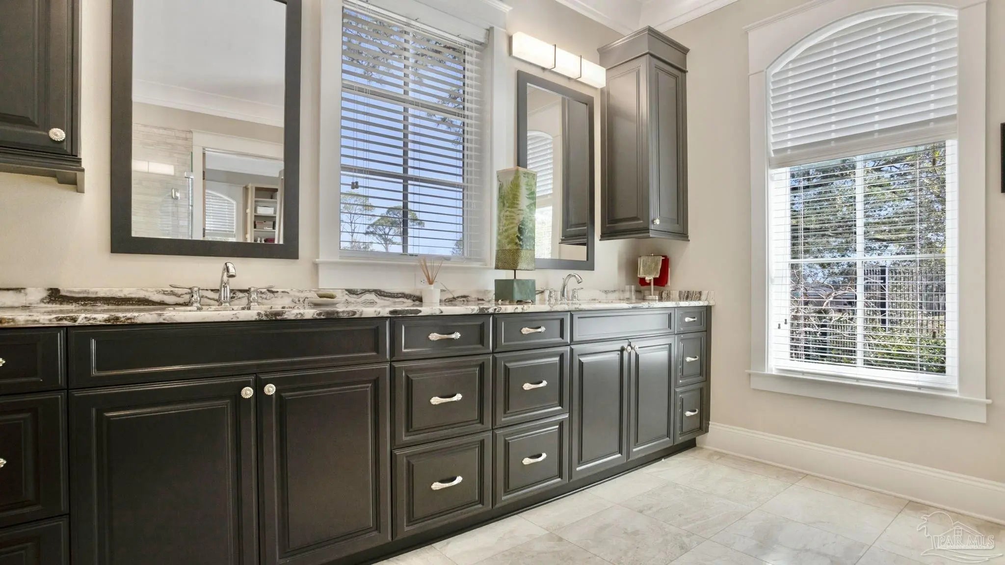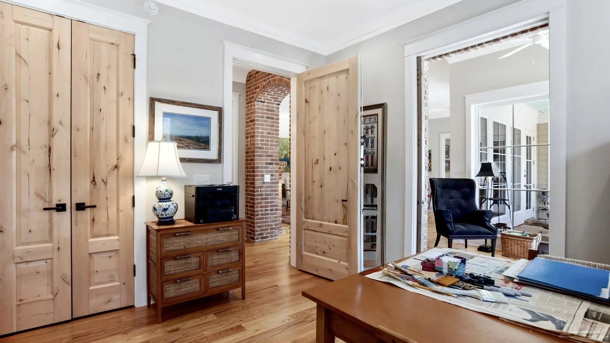 This elegant 9 year old Southern Traditional home rises with quiet confidence and charm in sought after East Hill. Located across from Bayou Texar. The entry opens to 11.5’ ceilings with a grand foyer (8'x22') with two step cove molding and beautiful polished 4” red oak hardwood floors. The expansive (13’x 22’) Dining room is filled with natural light pouring in through arched impact glass window and French doors. Transitioning to the heart of the house is the family room with an impressive 11’ high x 32’ long floor to ceiling solid brick accent wall and fireplace lending warmth and texture. The professionally designed modern kitchen with top of the line Thermador appliances, gas Range and rich quartz countertops and large island with prep sink support the open design. A large pantry and a 10’ long wet bar with ice maker that also serves as a secondary work space or buffet. A serene private primary suite in a split plan is designed as a true retreat, featuring a comfortable sitting area. French doors open to a private covered porch overlooking a New Orleans style, walled courtyard with tiered fountain echoing peaceful sounds of water splashing. The spacious bath offers a large walk-in or roll-in glassed shower, while the generous custom designed closet features built in cabinetry with hanging space, drawers and shelving. Two additional bedrooms with ensuite baths offer privacy and convenience. Inspired by nature, the owner has thoughtfully designed, planted and maintained a botanical garden and tranquil wildlife sanctuary, emphasizing native plants. Spring will bring a revelation of and texture with wildflowers, camellias - even a wetland oasis!!!Extras include a side entry garage with 220 outlet for charging station, security system with camera monitors, whole house generator. Built to handicapped accessible standards this home is truly a lifetime treasure.