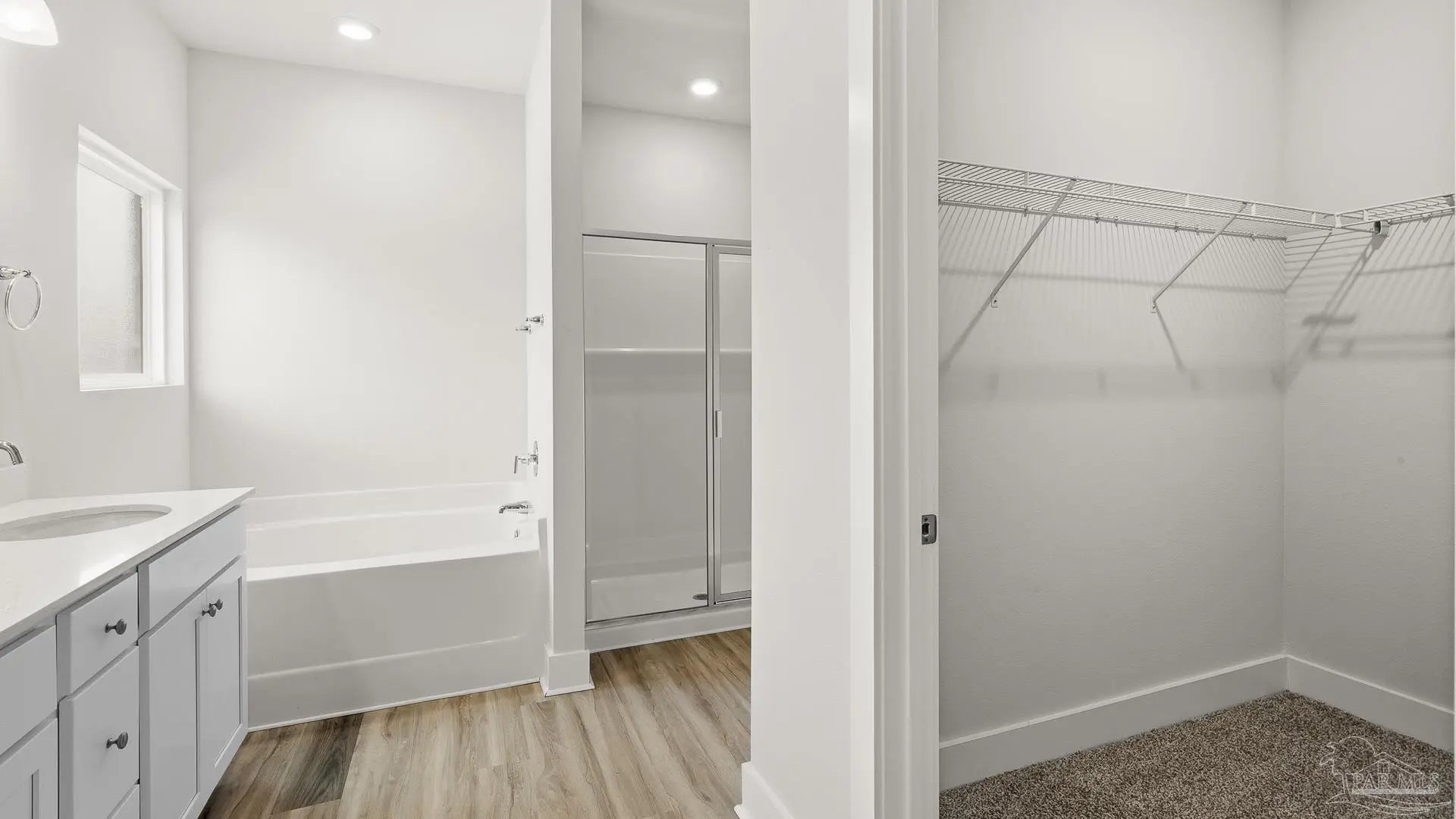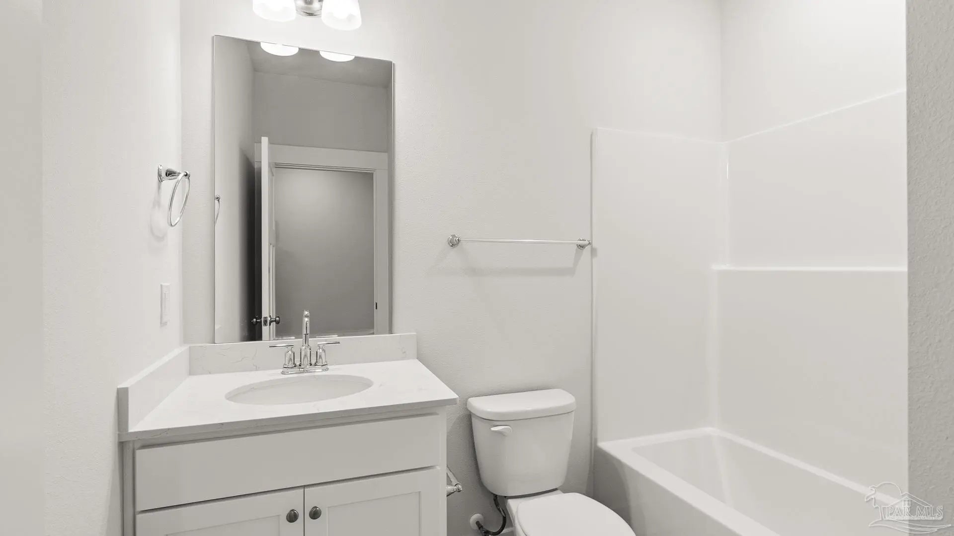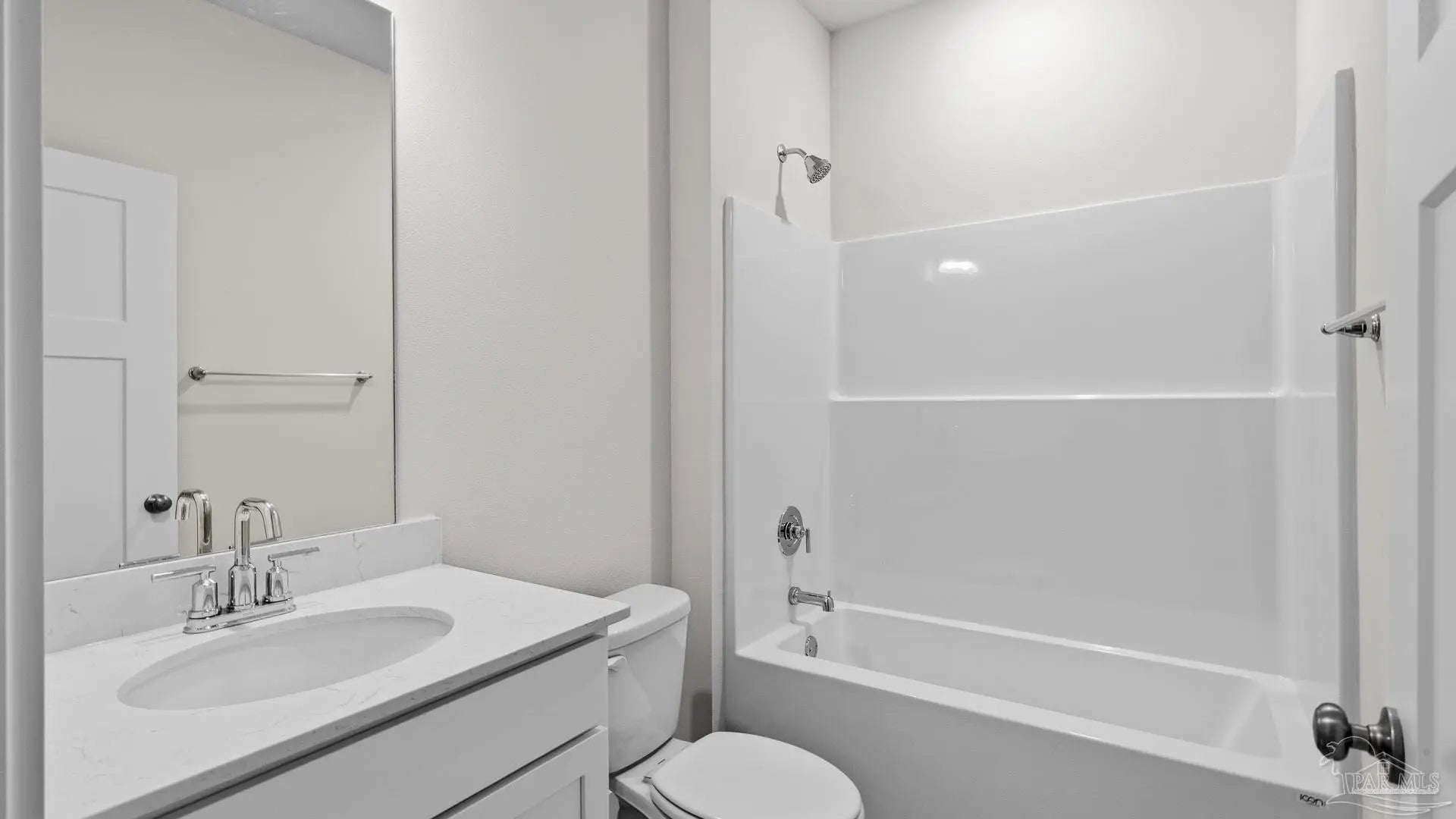 Welcome to the Madison, a new home floor plan at Reserve at Brookhaven in Cantonment! When you walk into the home, you are greeted by a long hallway that is the center point for bedrooms, the laundry room and garage, and leads to the open living room and kitchen. Beautiful engineered vinyl plank (EVP) flooring lines the main areas of the house and soft carpet covers the bedrooms. The bedroom closest to the garage also comes with its own bathroom, not shared in the main hallway. The bathrooms have beautiful white quartz countertops and white cabinets that enhance the beauty of this home. Entering the kitchen and living room area, you will notice plenty of natural sunlight illuminating the main area. The living room has tray ceilings that open the room, making your living space feel much more comfortable. The kitchen has stainless steel appliances and comes with beautiful white cabinets. The large island has plenty of storage in it and every surface has elegant white quartz countertops. The dining area is located by the back door leading to the covered rear patio. Walking into the large primary bedroom, you will also see tray ceilings and three windows that wash the room in natural sunlight. The primary bathroom has a spacious double vanity with white quartz countertops and white cabinetry. The walk-in closet is in the bathroom as well, perfect for when you get out of the separate tub or shower. Additional highlights include a 3-car garage, and a dedicated laundry room with storage. Located in Reserve at Brookhaven, residents can enjoy a community pool, and a playground, ideal for enjoying the Florida lifestyle!