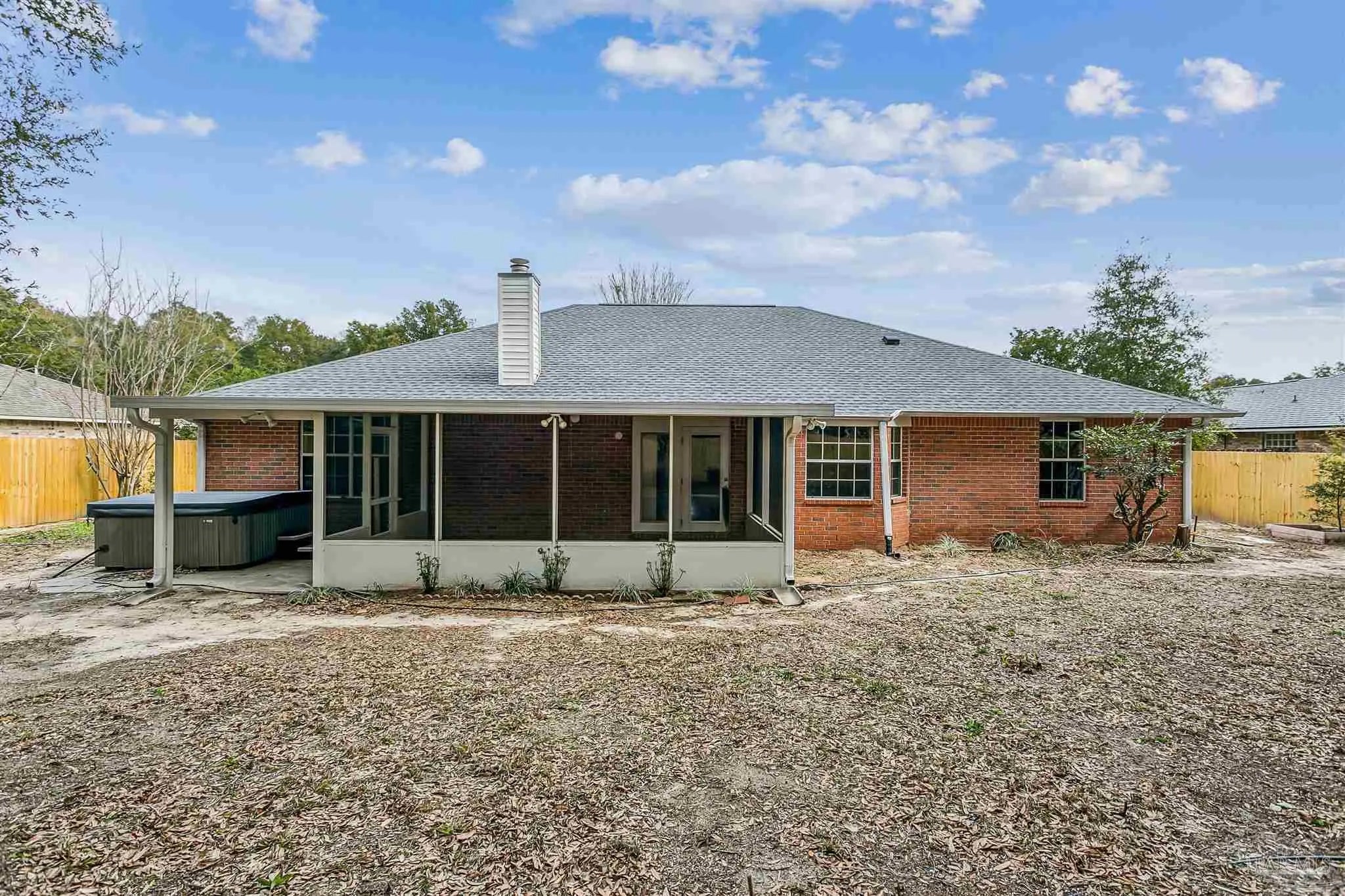 Don’t wait to see this cute brick home on large lot in Milton! This popular and versatile floorplan has 2275 sq ft with 3 bedrooms and 3 baths. The subdivision is convenient to shopping and hospital. Entering the home you will see a formal dining room and an office or formal living room. The bright white kitchen, large great room with fireplace and breakfast/dining nook are designed as an open plan. Granite countertops, desk and soft close cabinets are some of the modern features of the spacious kitchen. The large main bedroom and bath (with 2 walk-in closets, dual sinks, garden tub and separate shower) is split from the other bedrooms for privacy. The 2 additional bedrooms are on the opposite side of the house the larger one has an en-suite full bath and the front bedroom has a walk-in closet for additional storage. There is also a convenient full hall bath. You will enjoy spending time on the large screened back porch. There’s a hot tub with new cover and a new (2025) privacy fence. A metal outdoor storage building can hold your lawnmower, and yard tools. The washer, dryer, hot tub and refrigerator convey for convenience and are not warranted. Seller has no knowledge of sprinkler system and it conveys 'as is'. New roof in 2025! See virtual tour for matterport. This home is priced well below recent sales prices (per square foot) in neighborhood giving buyer immediate equity