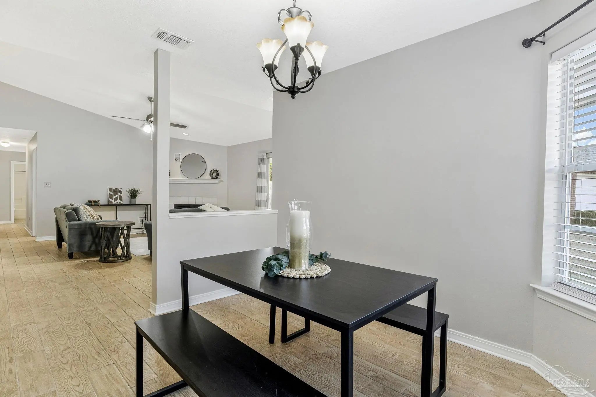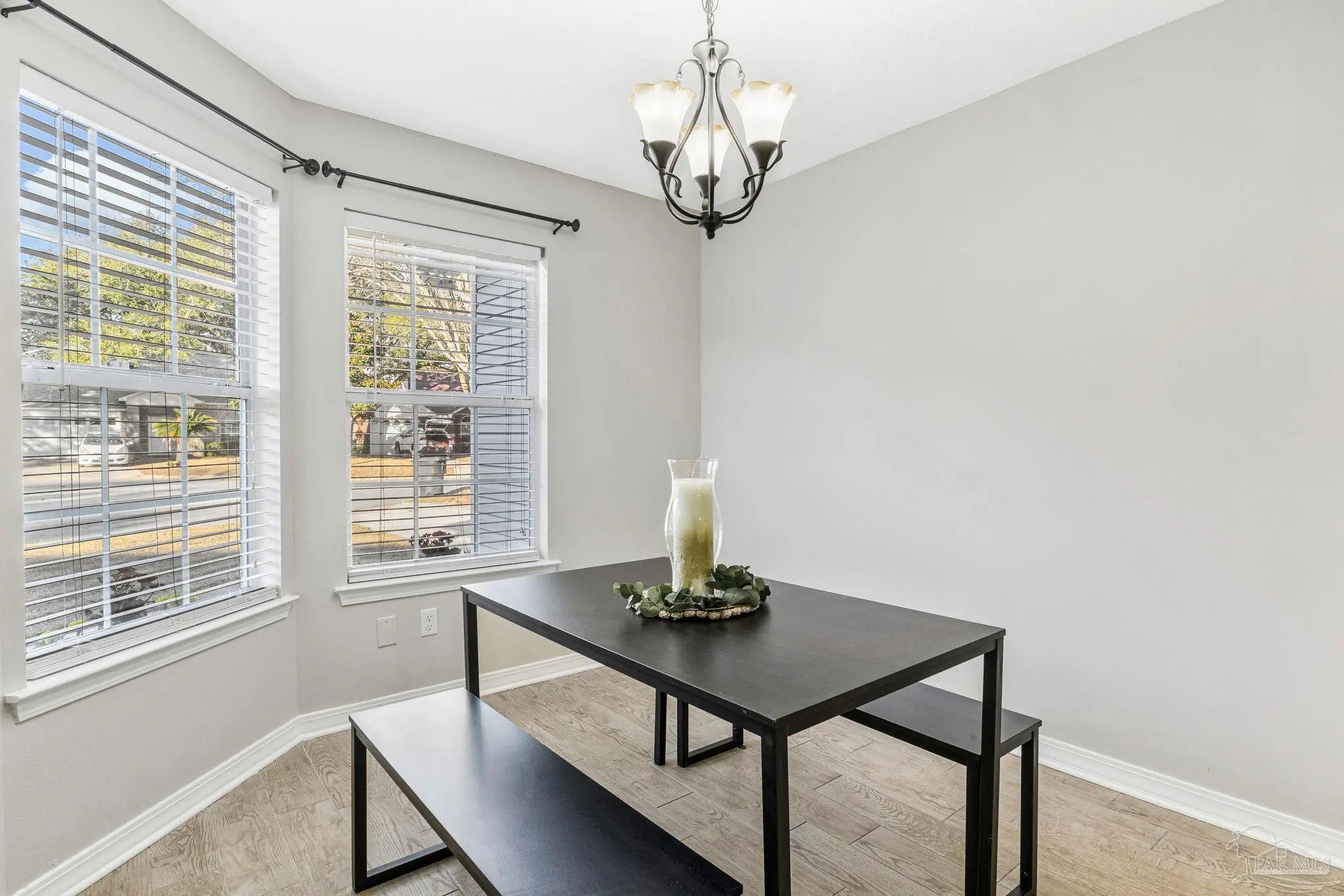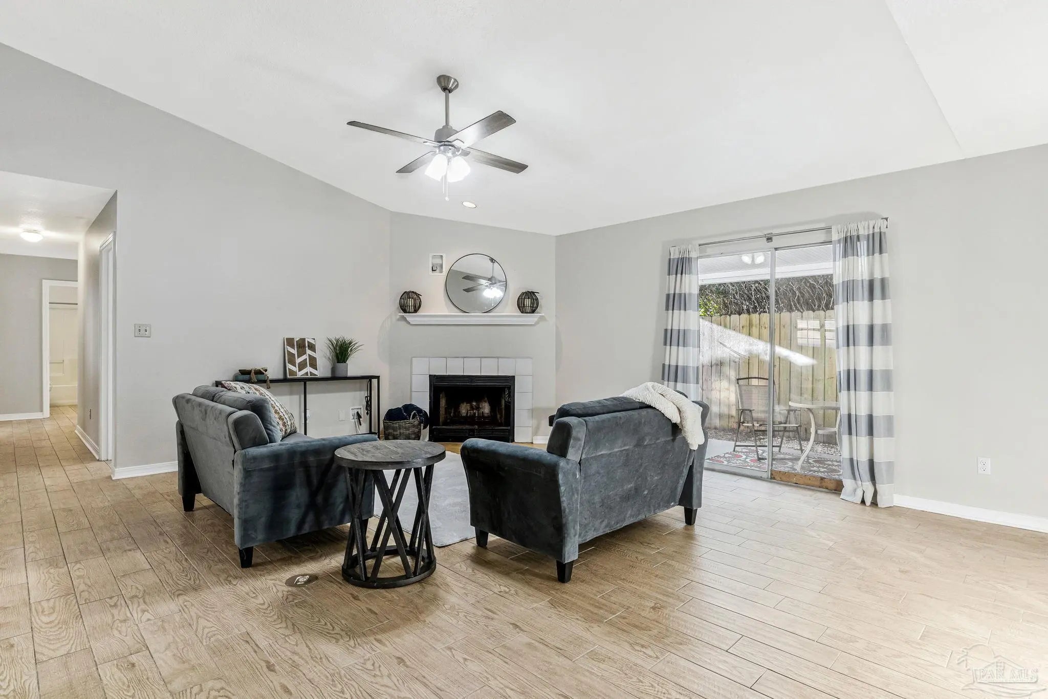 Welcome to one of the cutest cottages you’ll find—perfectly priced and ideally located in the highly sought-after Cordova Park school district! Tucked away on a quiet cul-de-sac, this charming home offers a one-car garage and a welcoming living room with vaulted ceilings that create an open, airy feel. Wood-look tile flows beautifully through the main living areas, complementing a relaxed coastal, beachy vibe that feels right at home here in Pensacola. The dedicated dining area is just off of the living room, and perfect for entertaining. The kitchen, also part of the open concept has ample cabinetry for storage, making everyday living easy and functional. An indoor laundry area adds convenience, and the washer and dryer convey with the home. The bedrooms feature newer carpet, and one of the guest bedrooms is especially inviting with its generous size and charming bay window. The primary bedroom comfortably fits a king-size bed and additional furniture, and the en-suite bathroom offers a garden tub/shower combo, walk-in closet, and a single sink vanity with an extra vanity area—perfect for adding a second sink or keeping the space just as it is. Step outside to a peaceful backyard shaded by beautiful dogwood trees, complete with a covered patio and wooden privacy fence—ideal for relaxing or entertaining. This sweet cottage truly checks all the boxes with charm, location, and comfort all wrapped into one special home.