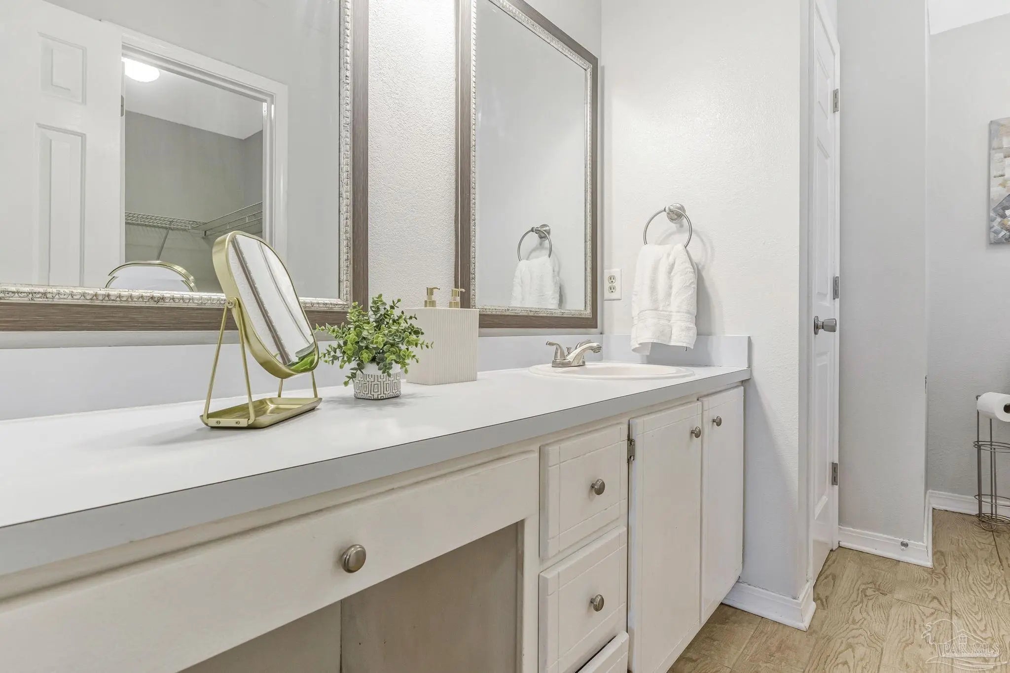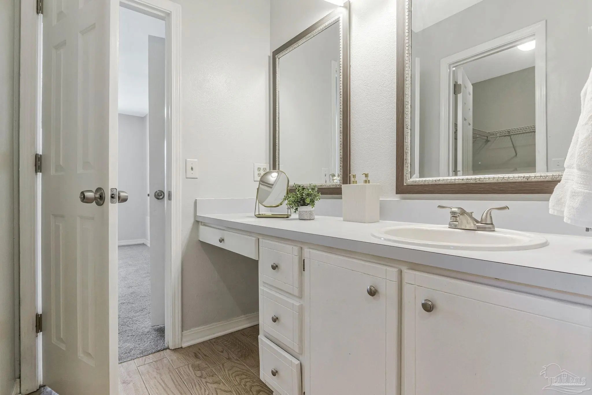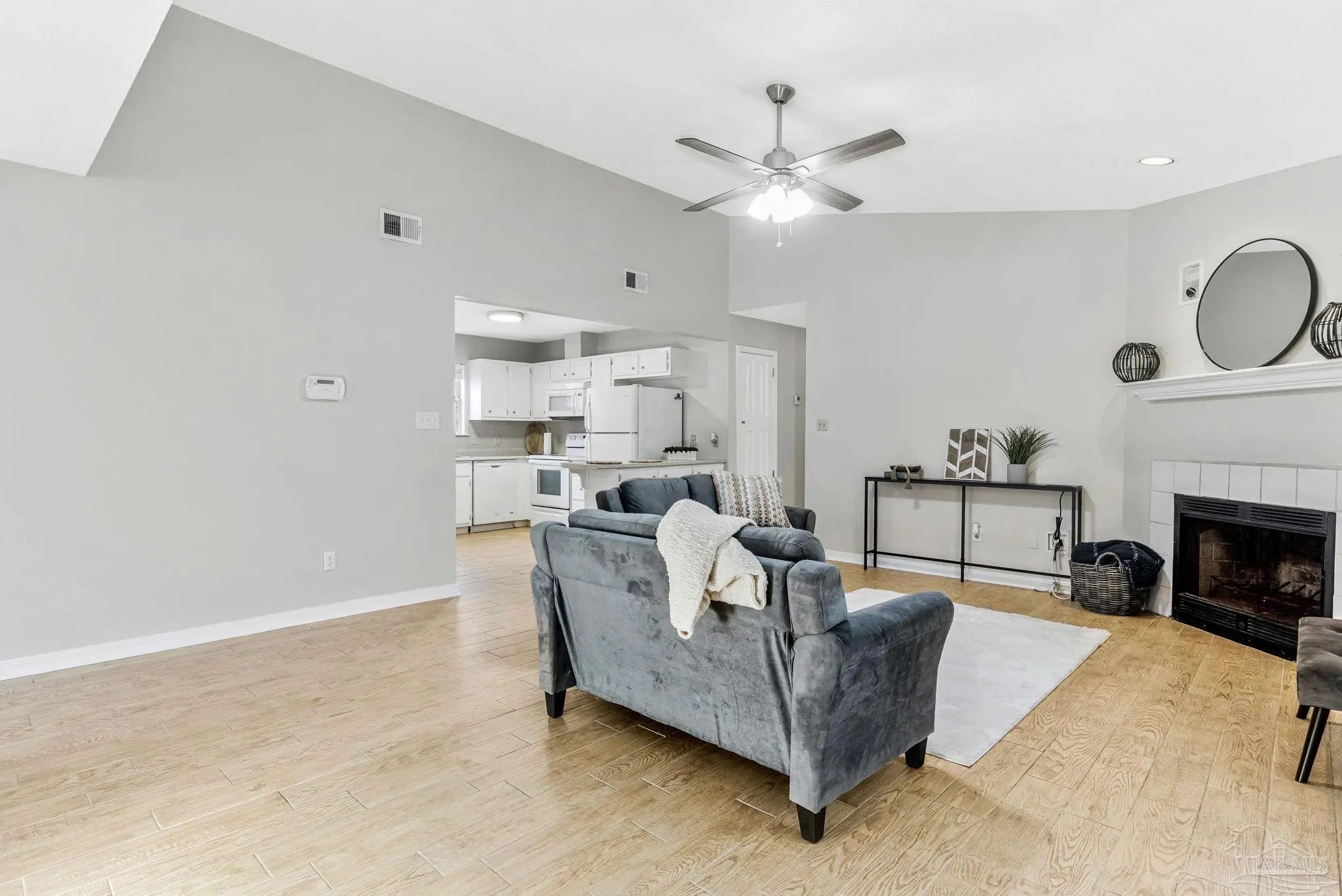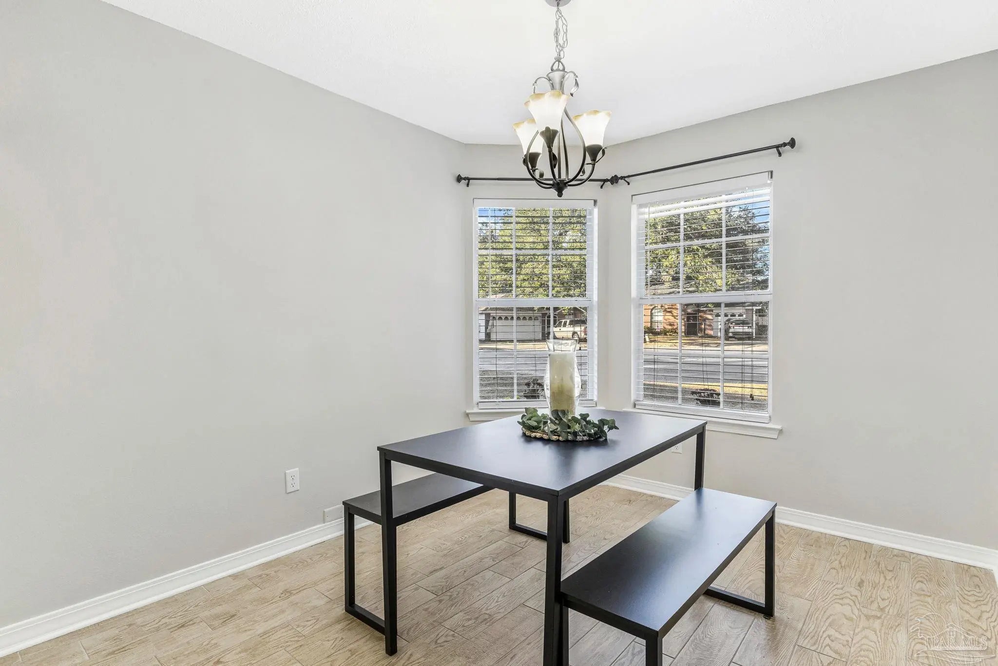 Welcome to one of the cutest cottages you’ll find—perfectly priced and ideally located in the highly sought-after Cordova Park school district! Tucked away on a quiet cul-de-sac, this charming home offers a one-car garage and a welcoming living room with vaulted ceilings that create an open, airy feel. Wood-look tile flows beautifully through the main living areas, complementing a relaxed coastal, beachy vibe that feels right at home here in Pensacola. The dedicated dining area is just off of the living room, and perfect for entertaining. The kitchen, also part of the open concept has ample cabinetry for storage, making everyday living easy and functional. An indoor laundry area adds convenience, and the washer and dryer convey with the home. The bedrooms feature newer carpet, and one of the guest bedrooms is especially inviting with its generous size and charming bay window. The primary bedroom comfortably fits a king-size bed and additional furniture, and the en-suite bathroom offers a garden tub/shower combo, walk-in closet, and a single sink vanity with an extra vanity area—perfect for adding a second sink or keeping the space just as it is. Step outside to a peaceful backyard shaded by beautiful dogwood trees, complete with a covered patio and wooden privacy fence—ideal for relaxing or entertaining. This sweet cottage truly checks all the boxes with charm, location, and comfort all wrapped into one special home.