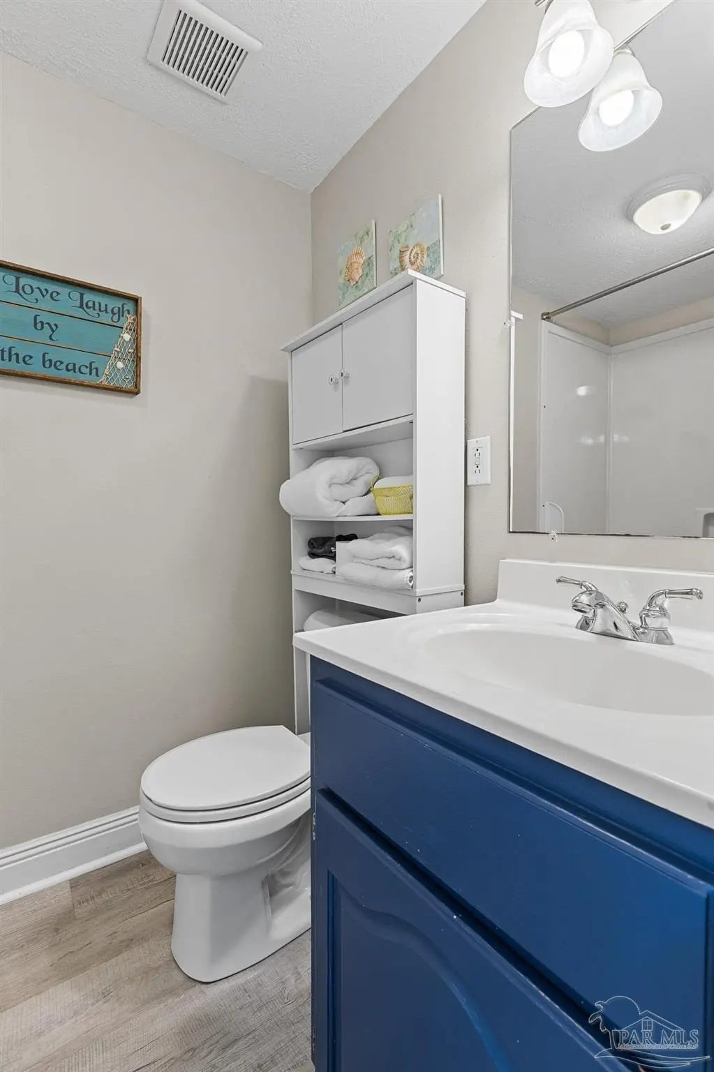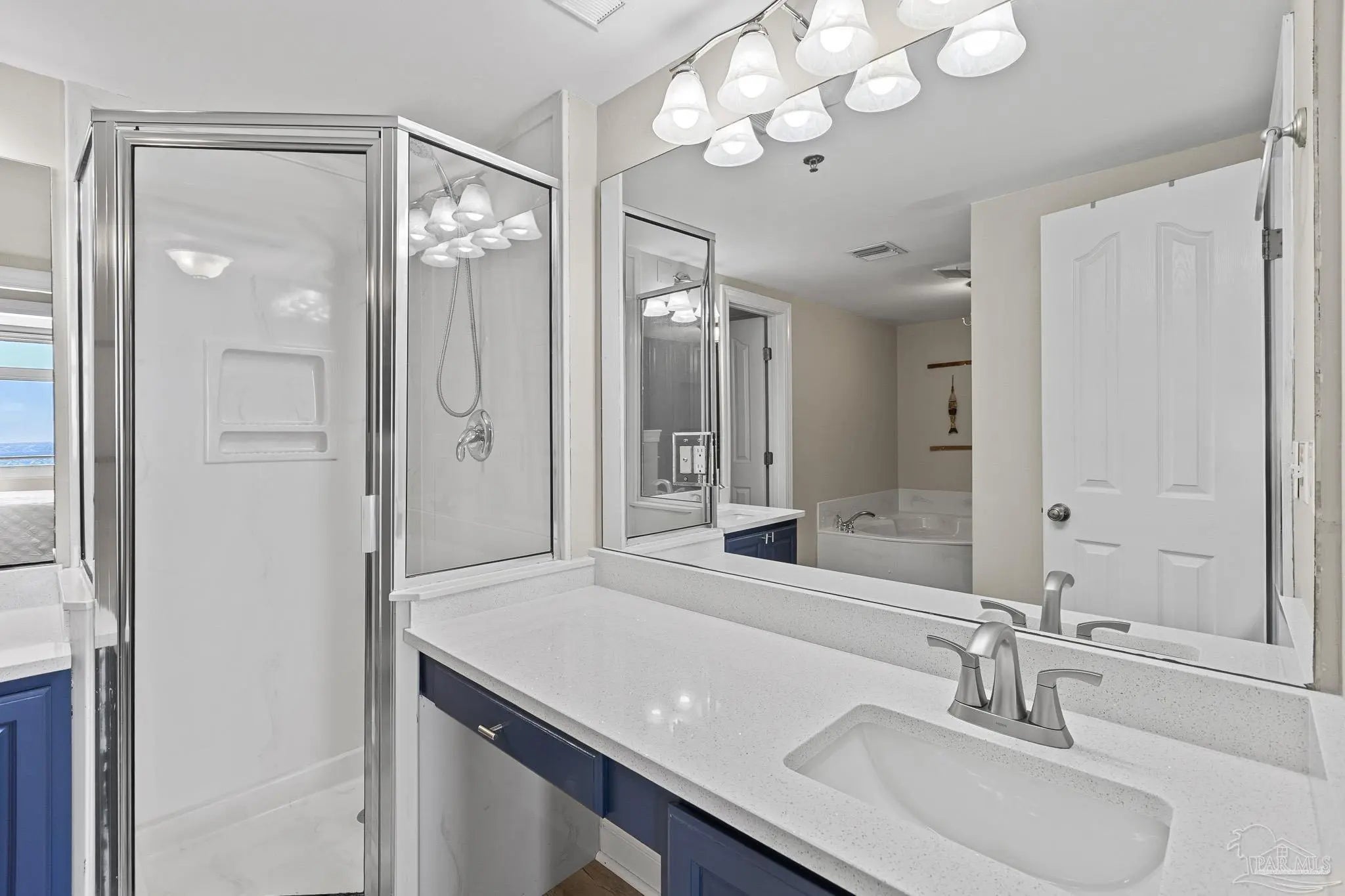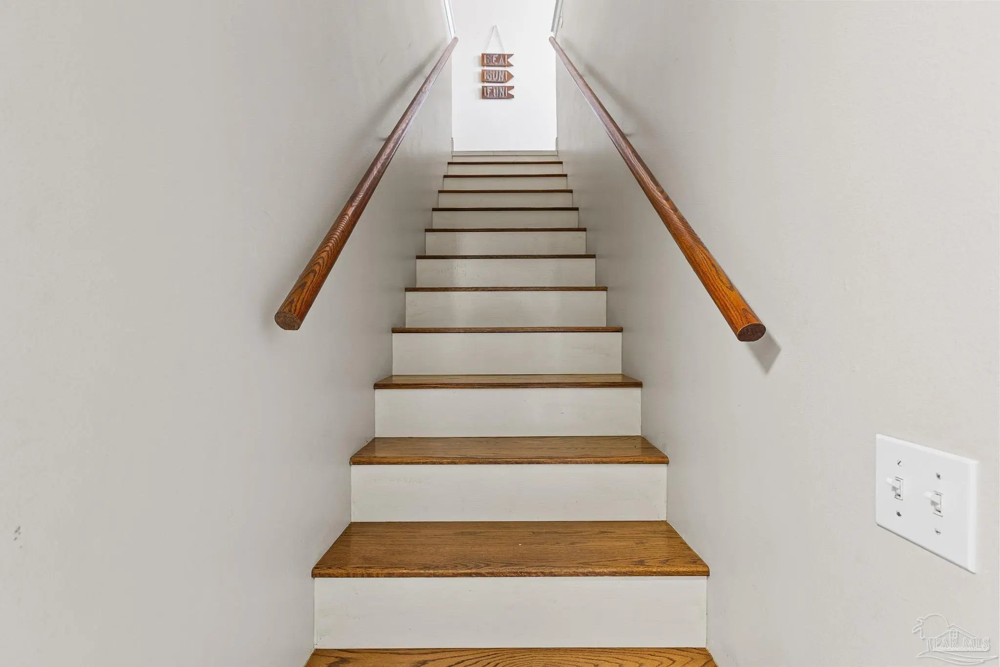 This unique contemporary 3-bedroom, 3 bath, rare gulf-front condo with a direct footpath to the water’s edge is the epitome of beachfront living. The two-level layout features separate entrances and balconies on each floor, creating an ample amount of flexibility and privacy. The upper level includes a cheerful kitchen with breakfast bar and pantry, a comfortable living area that opens to a balcony large enough for dining or entertaining, plus an additional bedroom and bath with its own entrance – well suited for guests or extended family. The lower level is largely devoted to the primary suite, with sliding doors leading to a private, gulf-front balcony. The adjoining bath provides a double vanity, soaking tub, separate shower, and a large walk-in closet. This fully furnished condo comes with a two-car garage that has abundant room for storage and a patio facing the water. There are convenient stairways, and access to a community elevator. With an excellent rental track record and a short trolley ride to the main dining, shopping, and entertainment area, this is a rare chance to own true Gulf-front property, where the location speaks for itself.