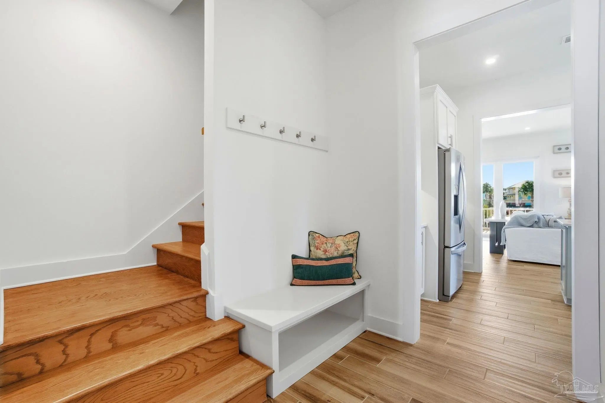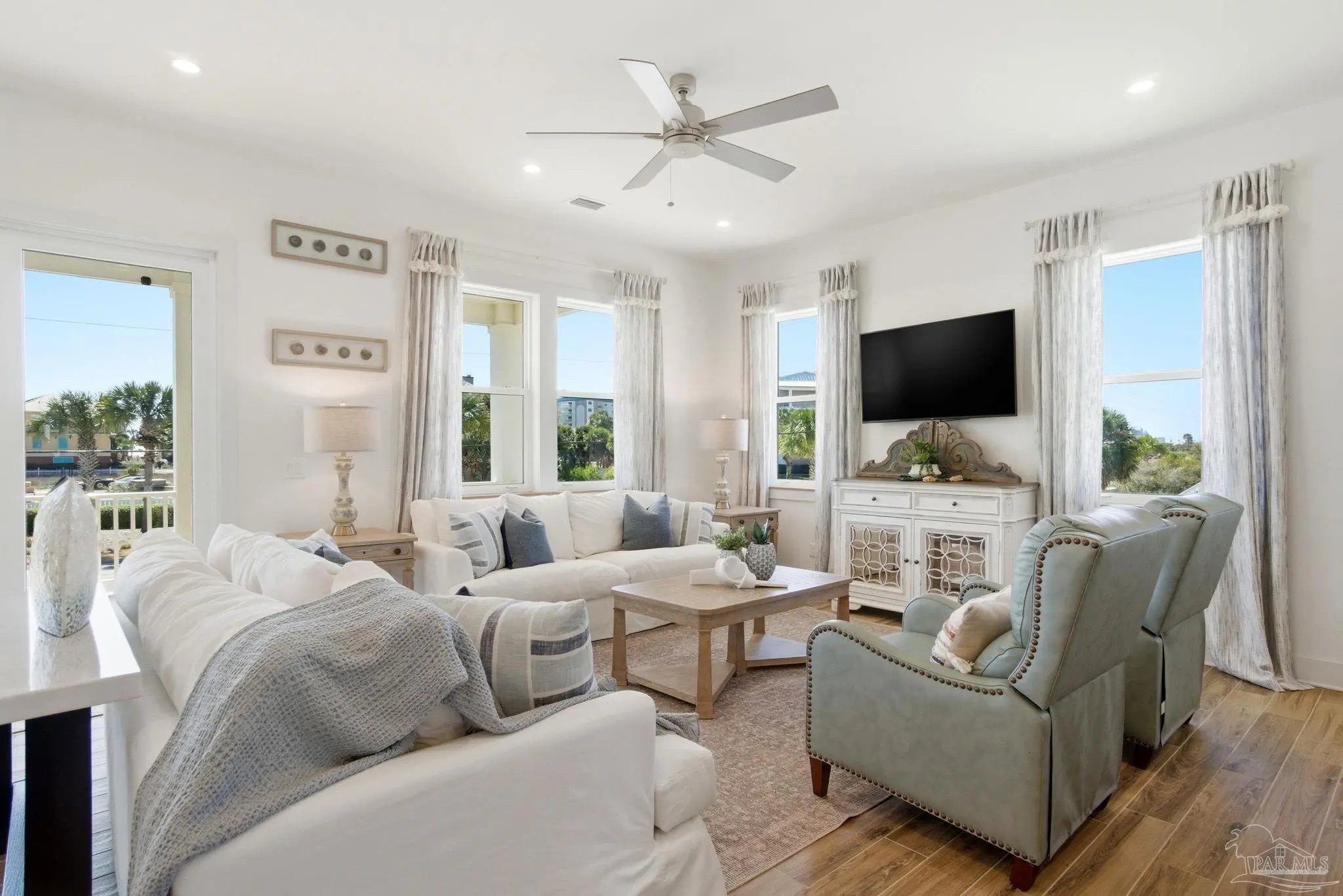 Refined coastal living meets effortless flexibility in this furnished, like-new gulf-view residence built in 2022, just moments from Johnson Beach access. Thoughtfully designed across three levels, the home offers a layout that works beautifully as a rental investment, second home, or full-time coastal escape. Porcelain tile flooring runs throughout, setting a clean, durable foundation for beach life while complementing the home’s light-filled interiors. The main living level is open and airy, anchored by a well-appointed kitchen with custom cabinetry, quartz countertops, stainless steel appliances, and carefully selected finishes that feel current yet timeless. Living and dining spaces flow seamlessly to outdoor balconies, where upstairs gulf views provide a constant reminder of how close the shoreline truly is. The ground level offers flexible space ideal for guests or additional lounging, while upper floors balance privacy and function with comfortable bedrooms and thoughtful separation of living areas. Fully furnished and move-in ready, the home has been lightly used and presents as nearly brand new. Outdoor living is equally compelling. Multiple balconies capture coastal breezes and water views, and the property offers room to add a private pool while also enjoying access to the community pool. This is a low-maintenance, high-style coastal property that delivers gulf views, proximity to the beach, and modern construction without compromise. Perdido Key offers a quieter take on Gulf Coast living, known for its sugar-white beaches, protected shoreline, and relaxed pace that feels worlds away from busier resort corridors. Framed by the gulf and the Intracoastal Waterway, the area appeals to those who value natural beauty, easy beach access, and a more residential coastal atmosphere. Whether used as a vacation retreat or a long-term residence, homes here benefit from strong rental appeal, uncrowded beaches, and a lifestyle defined by water, light, and space.