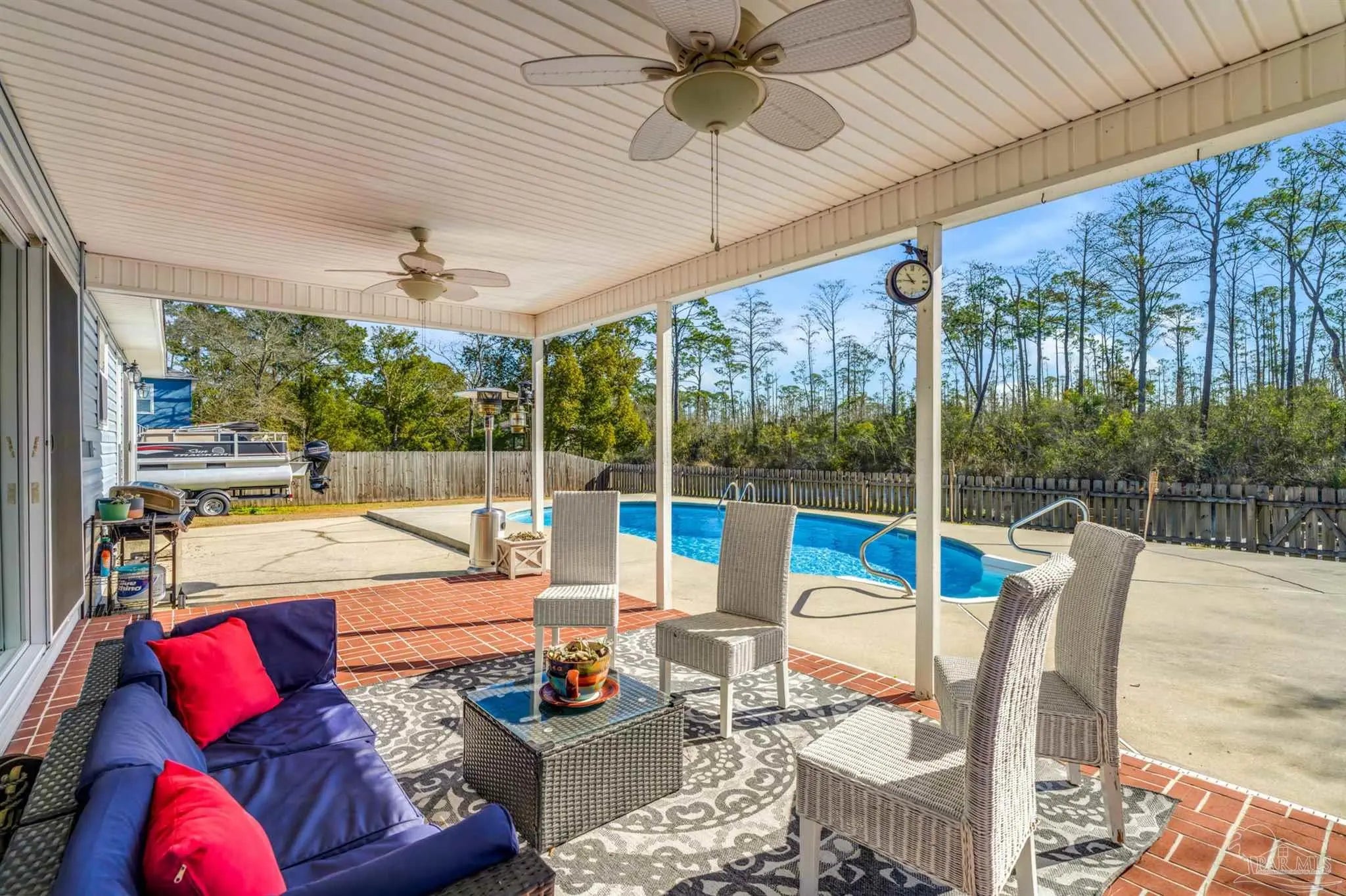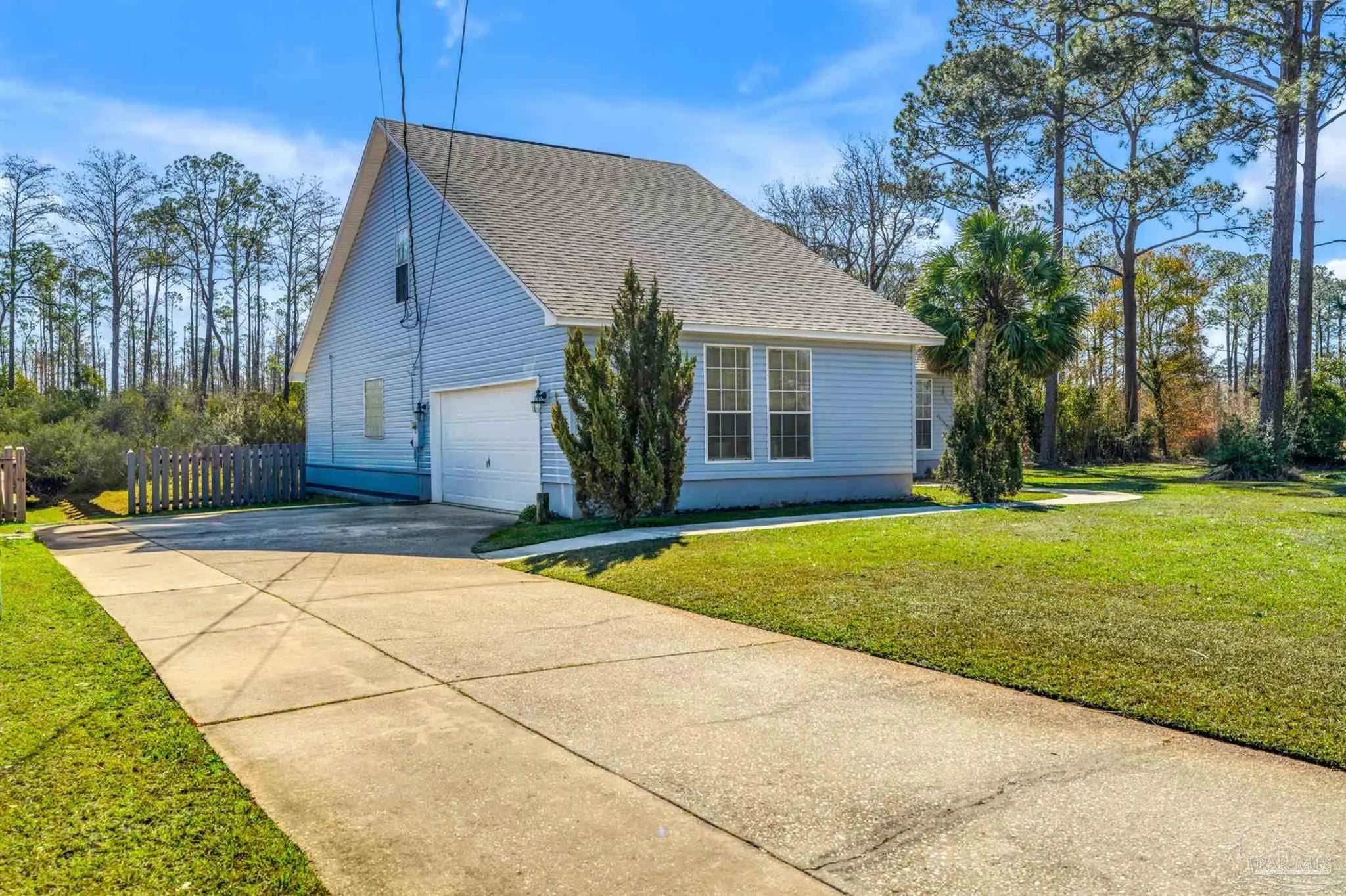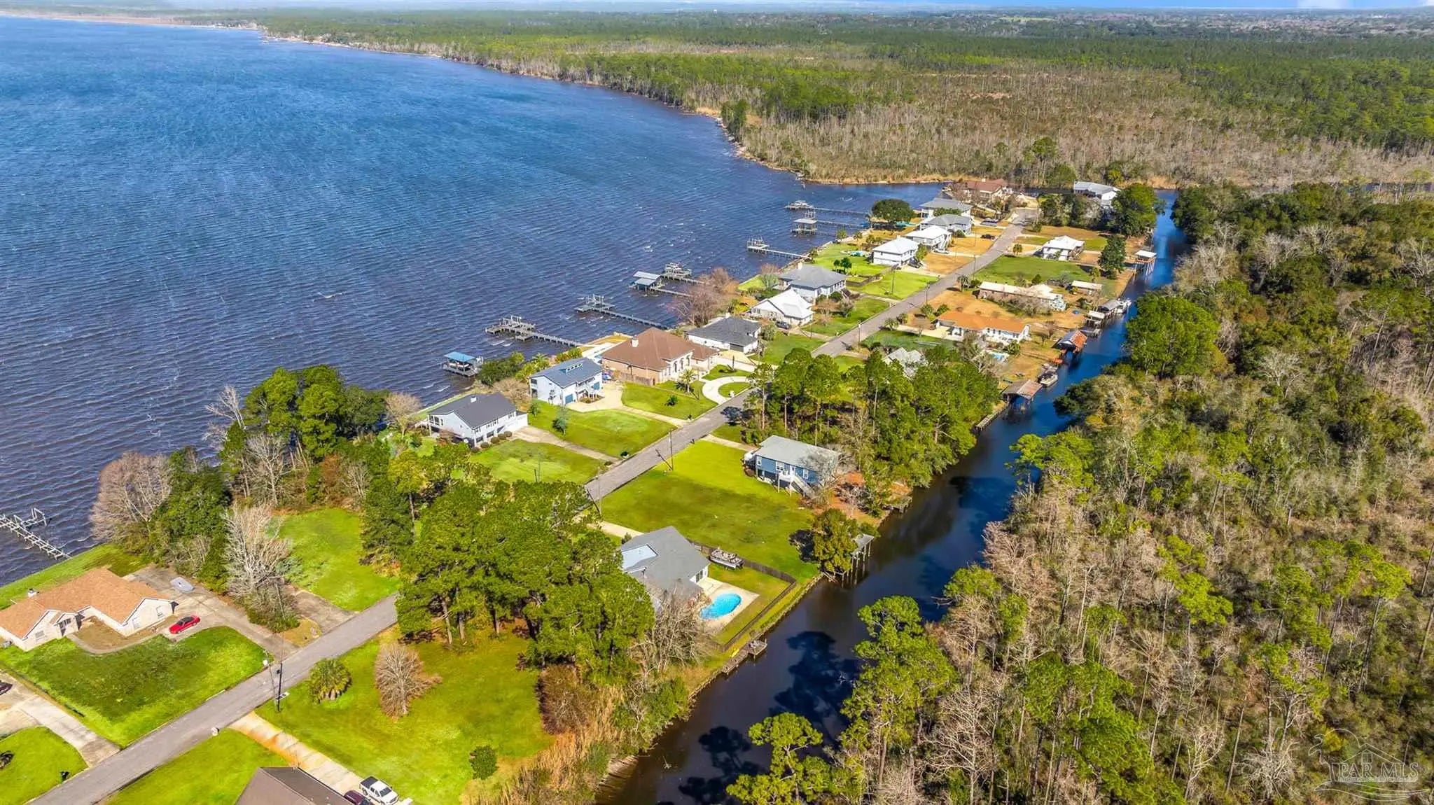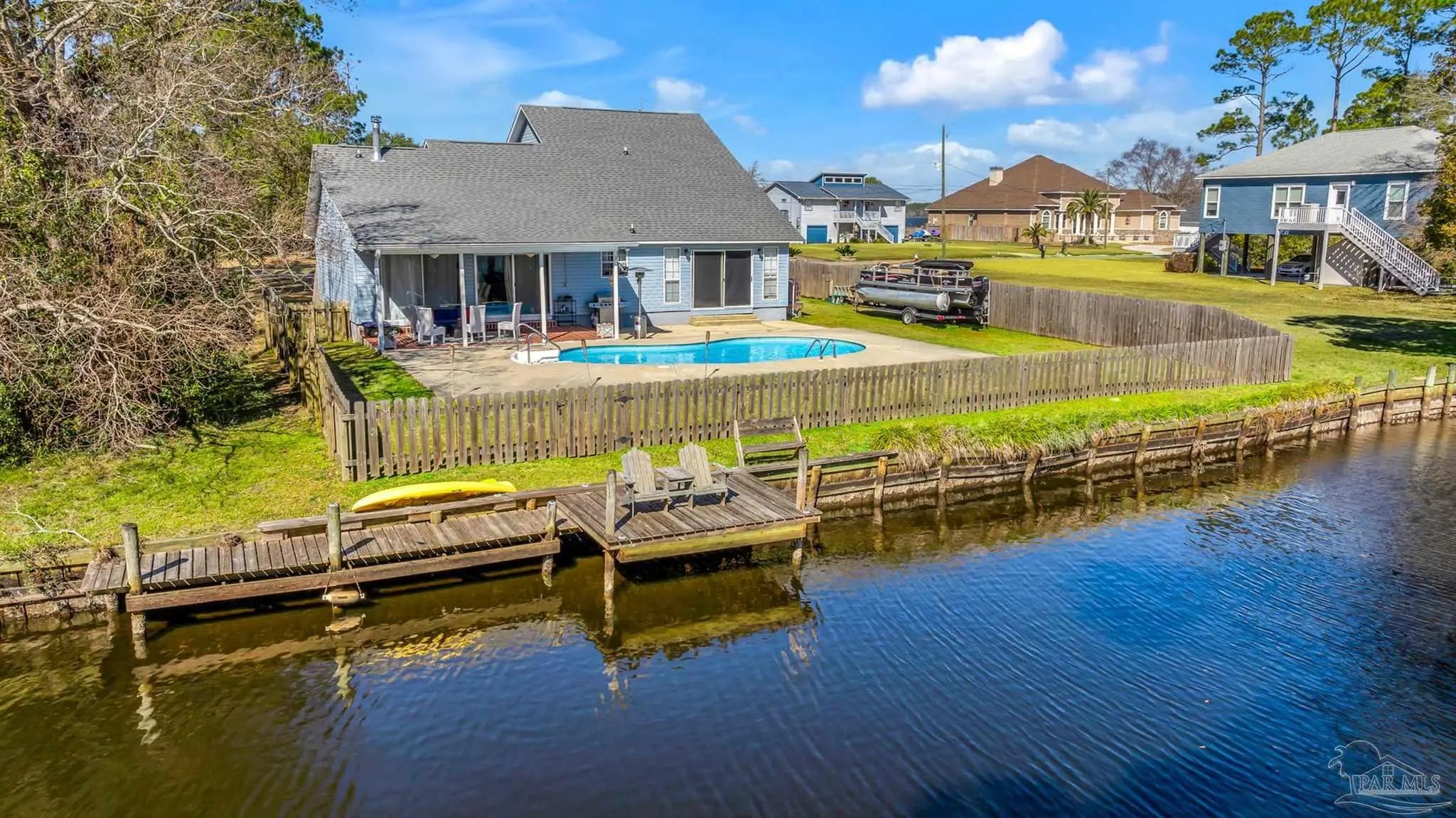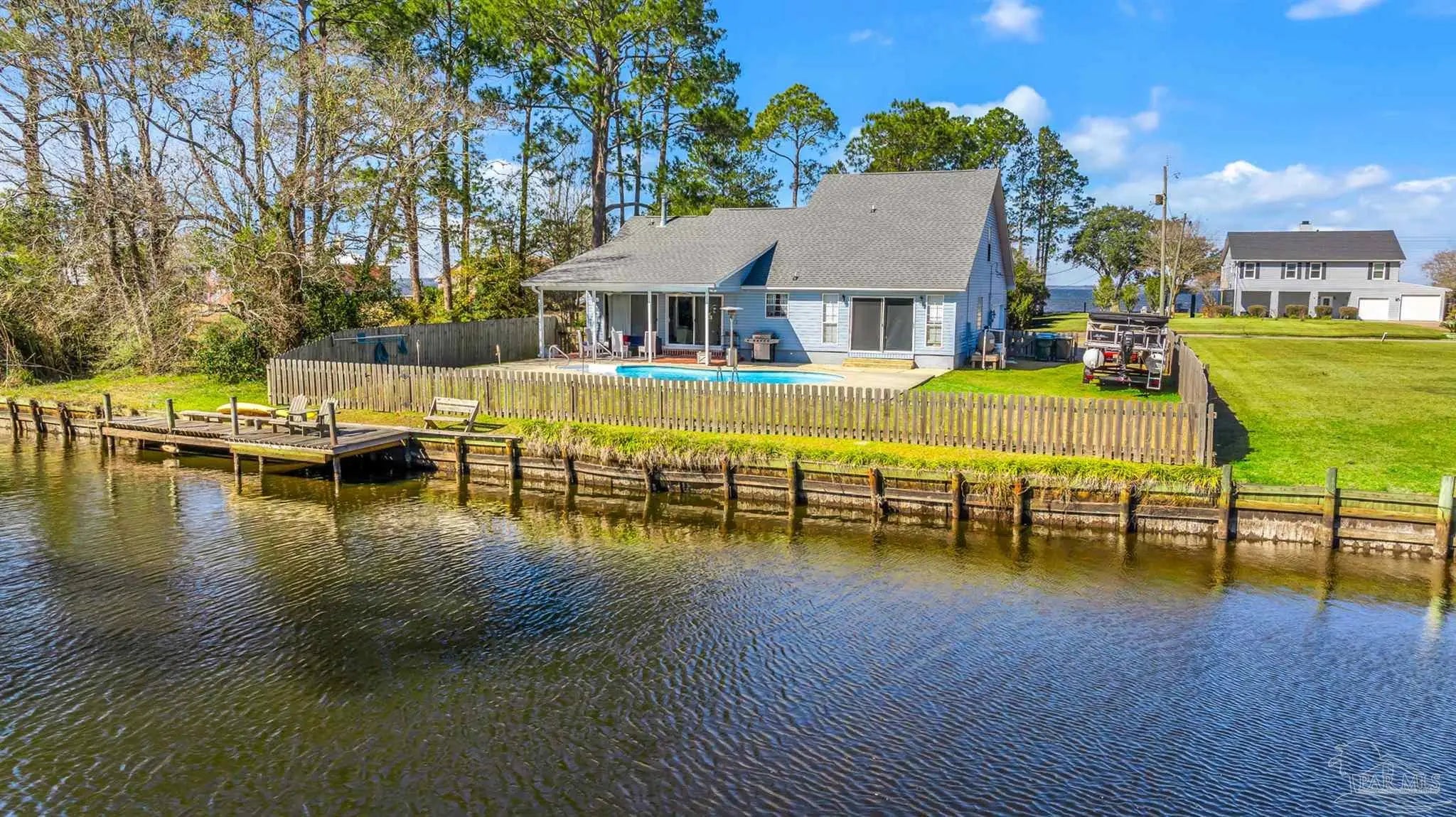 This rare Canal Front, has views of Perdido Bay, and a Swimming Pool! If you love the Pensacola coastal lifestyle and being on the water, this home is for you. This attractive and well-maintained three-bedroom, two-and-a-half-bath pool home is tucked away in the highly sought-after Santa Marina waterfront community. Enjoy a beautiful view of Perdido Bay with no rear neighbors. A private wetlands preserve across the canal provides peaceful scenery and frequent wildlife sightings, including osprey, otters, dolphins, pelicans, turtles, and jumping mullet. Situated on a deep-water canal, the property offers 80 feet of water frontage and a private dock with direct access to Perdido Bay and the Gulf of Mexico. Inside, you are welcomed by thoughtfully designed living spaces filled with natural light. Floor-to-ceiling windows brighten the family room with morning sun. Features include high ceilings, and crown molding. All new high quality flooring and tile throughout the home. The kitchen is equipped with newer stainless steel appliances, granite countertops, and a tile backsplash. This custom home features two primary suites. The main level primary suite is spacious and includes a private entrance, garden tub, double granite vanities, large walk-in luxury shower with two shower heads, and a fully built-out walk-in closet. Upstairs, the second primary suite is oversized with a full bath, offering privacy for guests or family members. Recent upgrades include Roof (2022), HVAC and whole-home in-duct air purifier (2021), appliances (2021,2025), dock (2023), and pool pump (2021). Popcorn removed, painted ceiling to floor (2025) Enjoy stunning sunrises and sunsets, entertain by the pool, or fish right from your dock. Room to park your boat and a side entry garage.