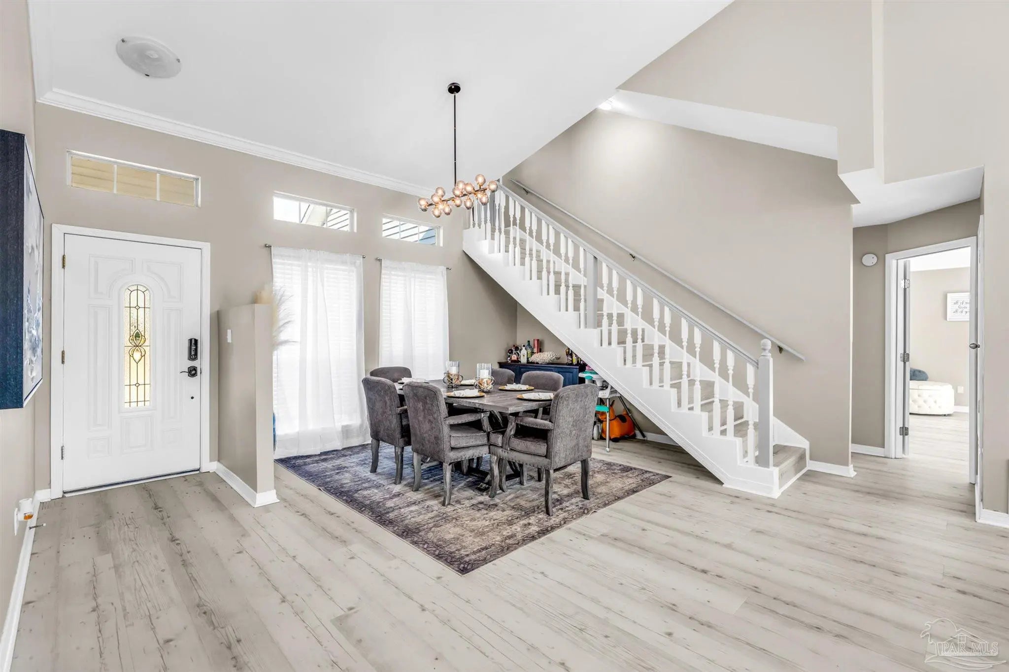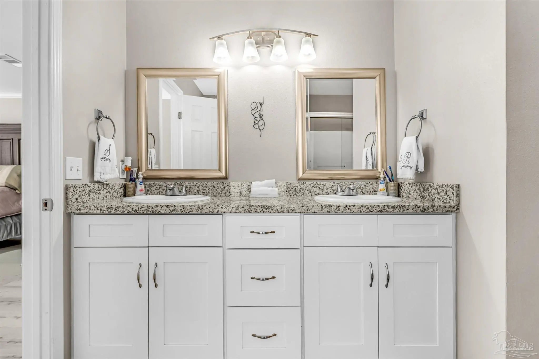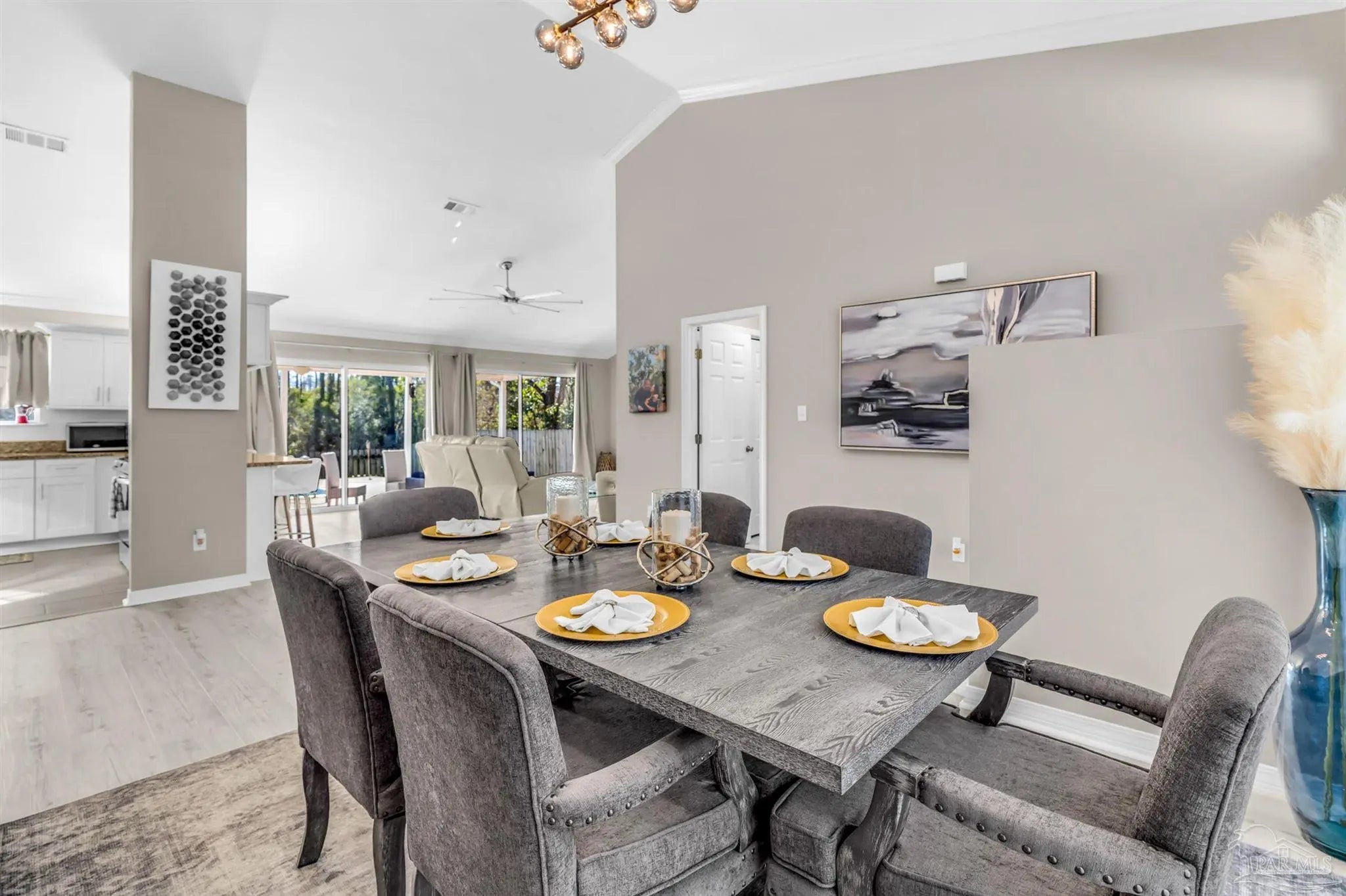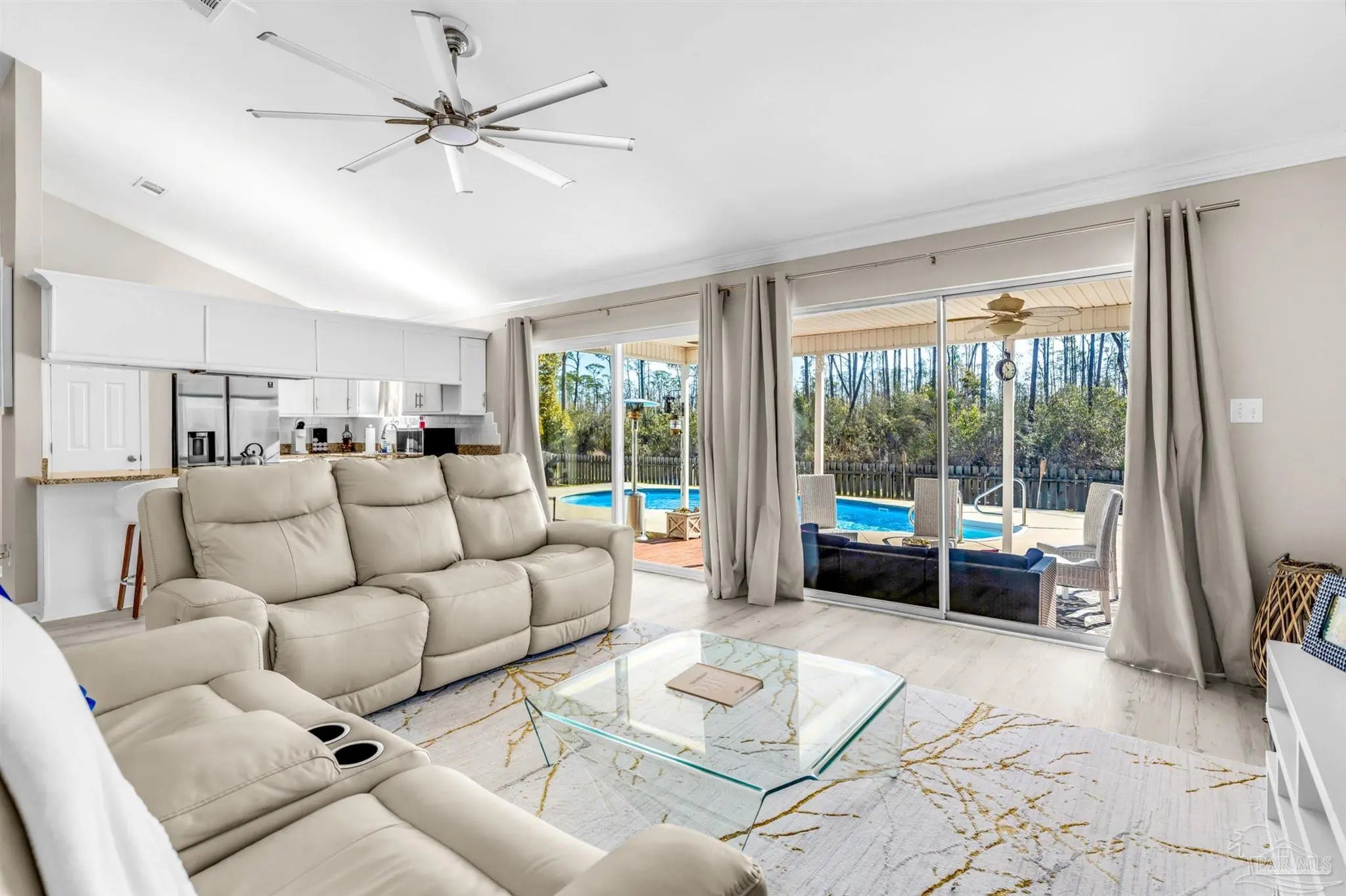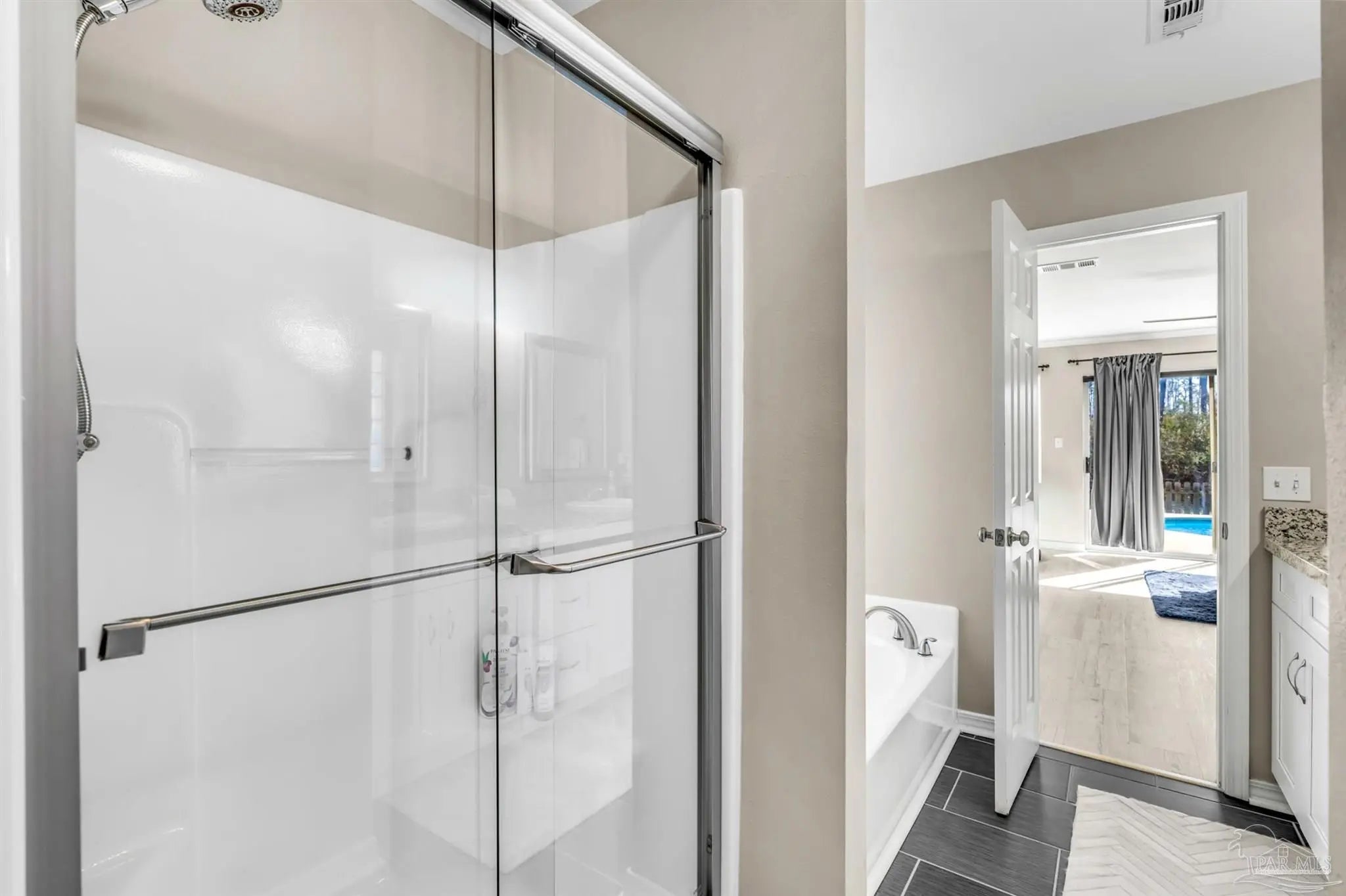 This rare Canal Front, has views of Perdido Bay, and a Swimming Pool! If you love the Pensacola coastal lifestyle and being on the water, this home is for you. This attractive and well-maintained three-bedroom, two-and-a-half-bath pool home is tucked away in the highly sought-after Santa Marina waterfront community. Enjoy a beautiful view of Perdido Bay with no rear neighbors. A private wetlands preserve across the canal provides peaceful scenery and frequent wildlife sightings, including osprey, otters, dolphins, pelicans, turtles, and jumping mullet. Situated on a deep-water canal, the property offers 80 feet of water frontage and a private dock with direct access to Perdido Bay and the Gulf of Mexico. Inside, you are welcomed by thoughtfully designed living spaces filled with natural light. Floor-to-ceiling windows brighten the family room with morning sun. Features include high ceilings, and crown molding. All new high quality flooring and tile throughout the home. The kitchen is equipped with newer stainless steel appliances, granite countertops, and a tile backsplash. This custom home features two primary suites. The main level primary suite is spacious and includes a private entrance, garden tub, double granite vanities, large walk-in luxury shower with two shower heads, and a fully built-out walk-in closet. Upstairs, the second primary suite is oversized with a full bath, offering privacy for guests or family members. Recent upgrades include Roof (2022), HVAC and whole-home in-duct air purifier (2021), appliances (2021,2025), dock (2023), and pool pump (2021). Popcorn removed, painted ceiling to floor (2025) Enjoy stunning sunrises and sunsets, entertain by the pool, or fish right from your dock. Room to park your boat and a side entry garage.