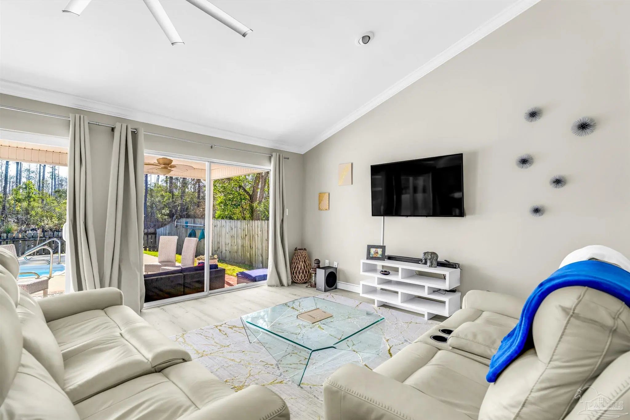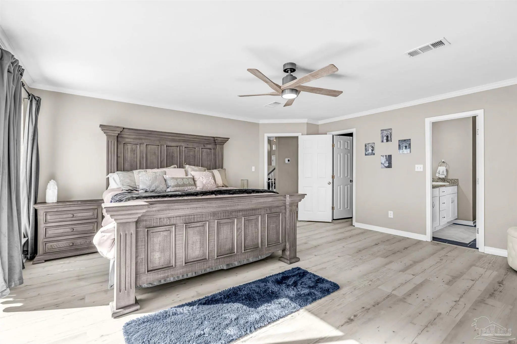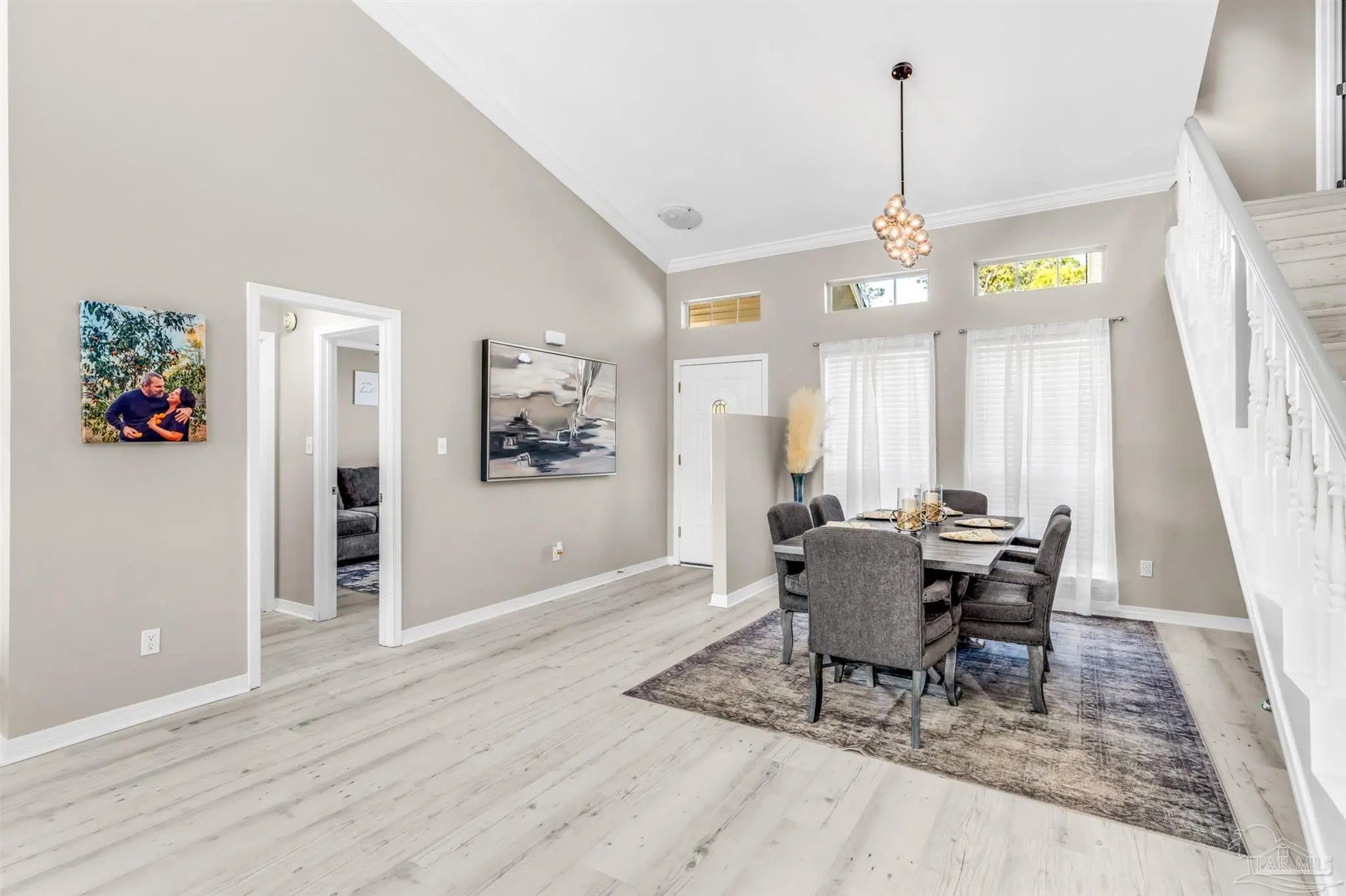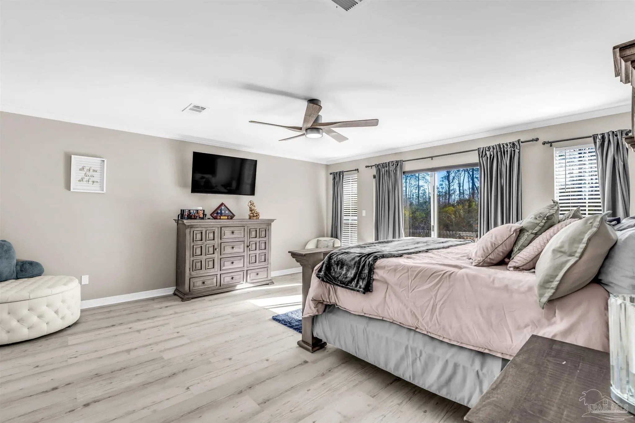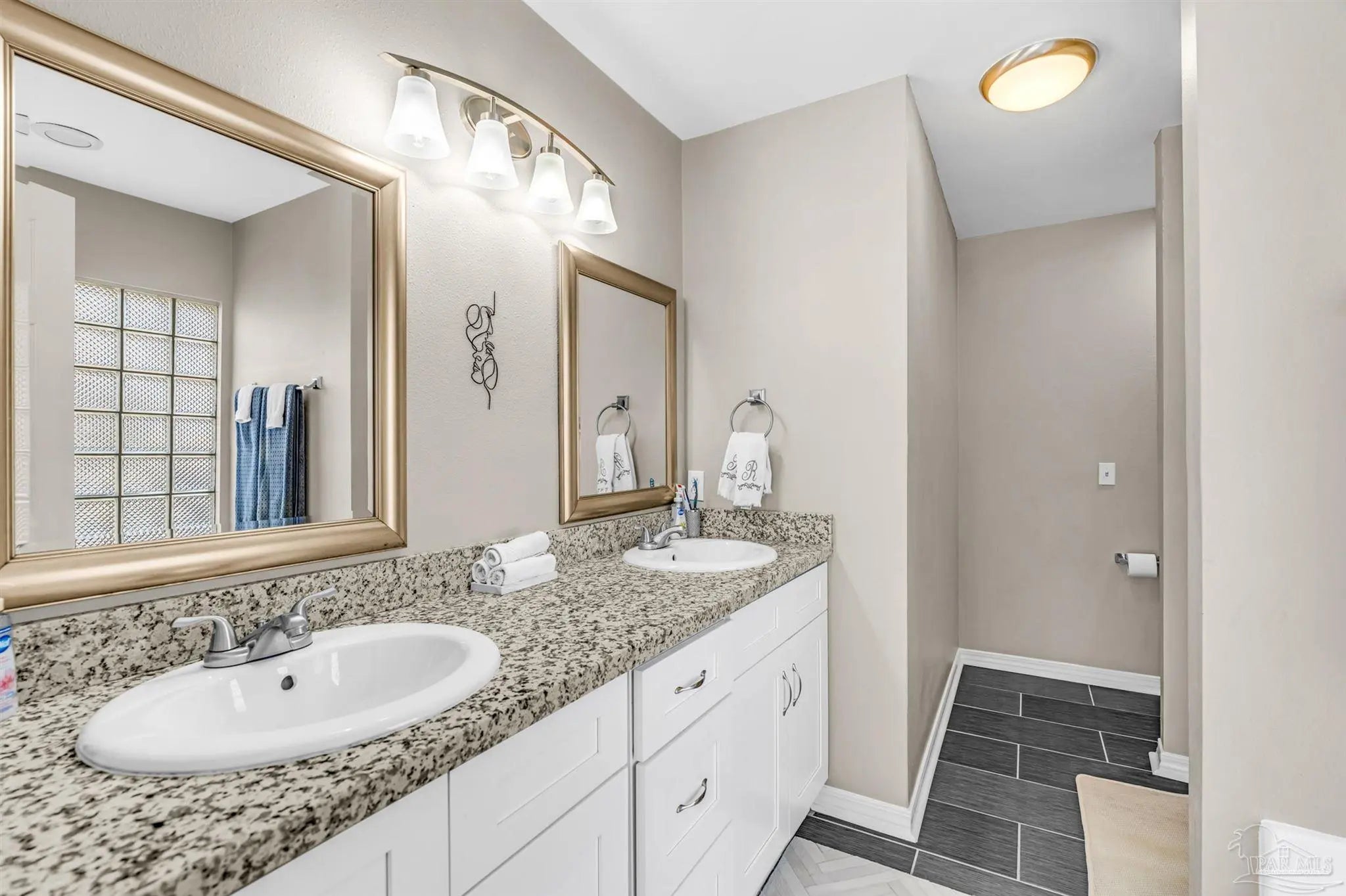 This rare Canal Front, has views of Perdido Bay, and a Swimming Pool! If you love the Pensacola coastal lifestyle and being on the water, this home is for you. This attractive and well-maintained three-bedroom, two-and-a-half-bath pool home is tucked away in the highly sought-after Santa Marina waterfront community. Enjoy a beautiful view of Perdido Bay with no rear neighbors. A private wetlands preserve across the canal provides peaceful scenery and frequent wildlife sightings, including osprey, otters, dolphins, pelicans, turtles, and jumping mullet. Situated on a deep-water canal, the property offers 80 feet of water frontage and a private dock with direct access to Perdido Bay and the Gulf of Mexico. Inside, you are welcomed by thoughtfully designed living spaces filled with natural light. Floor-to-ceiling windows brighten the family room with morning sun. Features include high ceilings, and crown molding. All new high quality flooring and tile throughout the home. The kitchen is equipped with newer stainless steel appliances, granite countertops, and a tile backsplash. This custom home features two primary suites. The main level primary suite is spacious and includes a private entrance, garden tub, double granite vanities, large walk-in luxury shower with two shower heads, and a fully built-out walk-in closet. Upstairs, the second primary suite is oversized with a full bath, offering privacy for guests or family members. Recent upgrades include Roof (2022), HVAC and whole-home in-duct air purifier (2021), appliances (2021,2025), dock (2023), and pool pump (2021). Popcorn removed, painted ceiling to floor (2025) Enjoy stunning sunrises and sunsets, entertain by the pool, or fish right from your dock. Room to park your boat and a side entry garage.