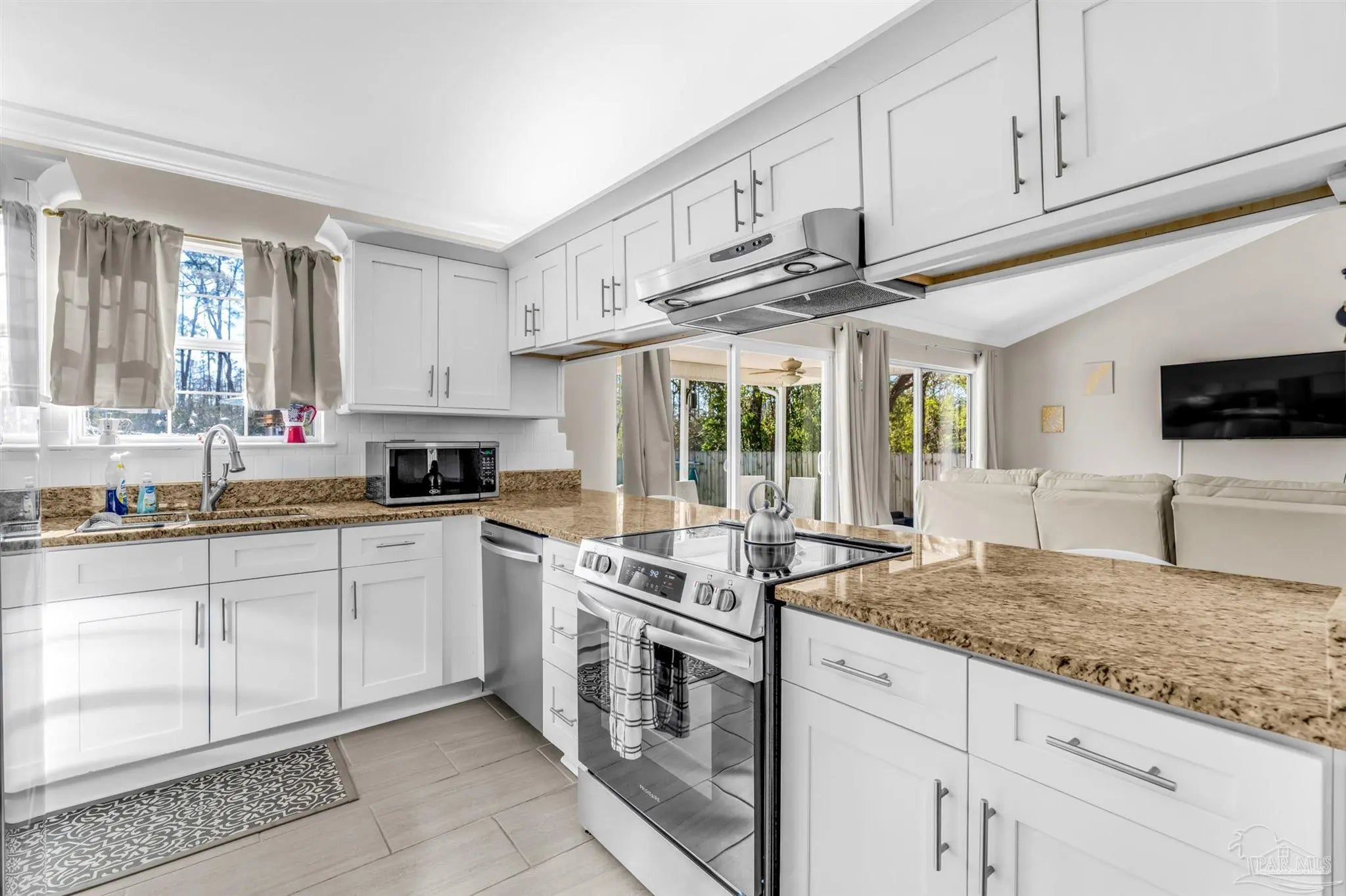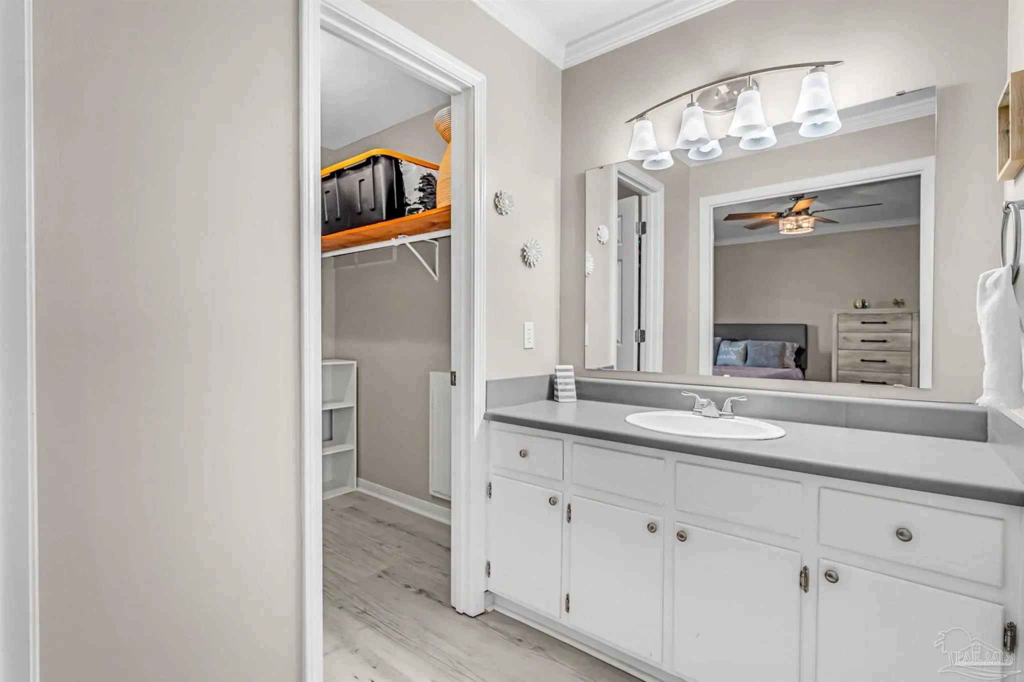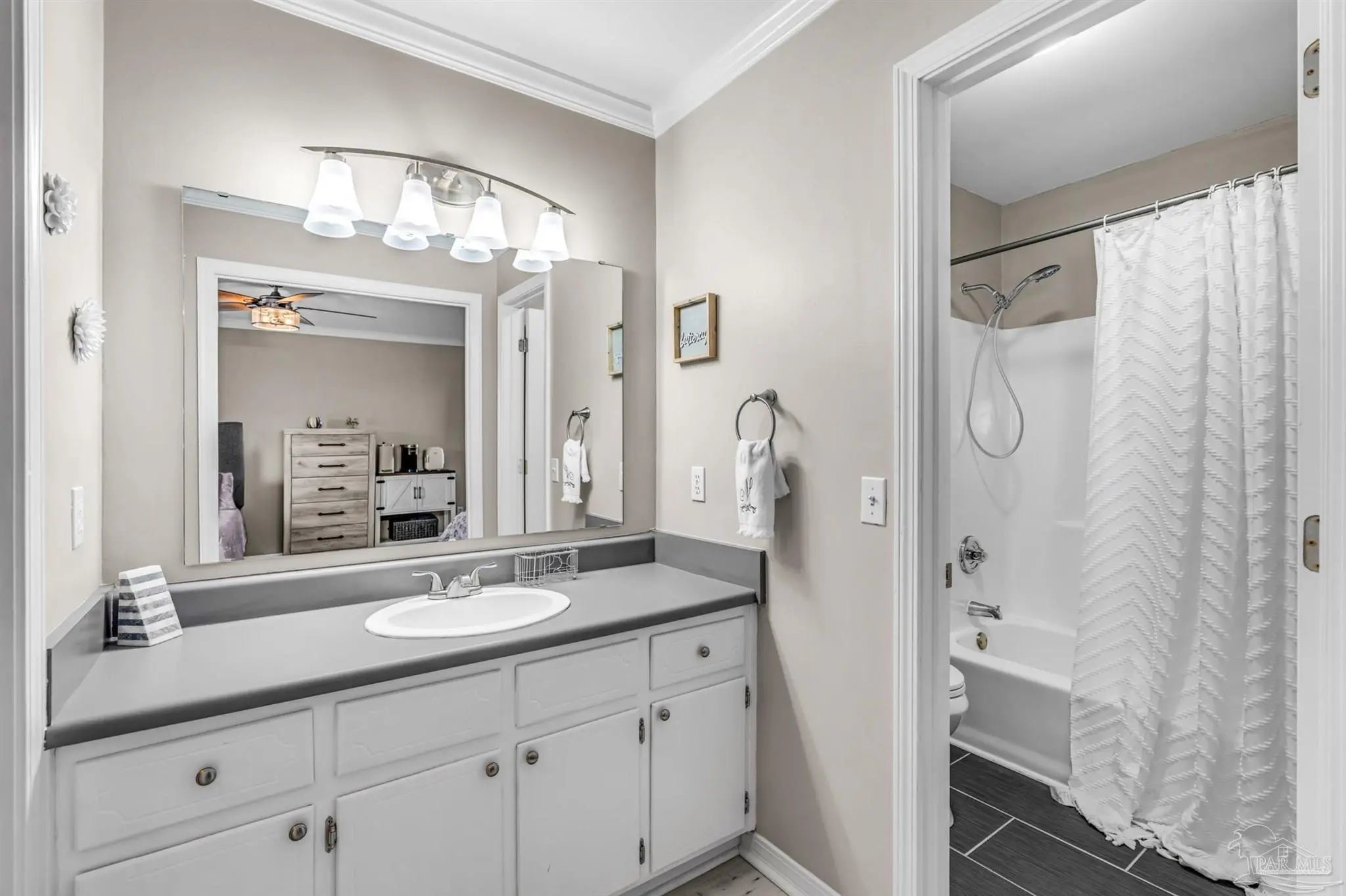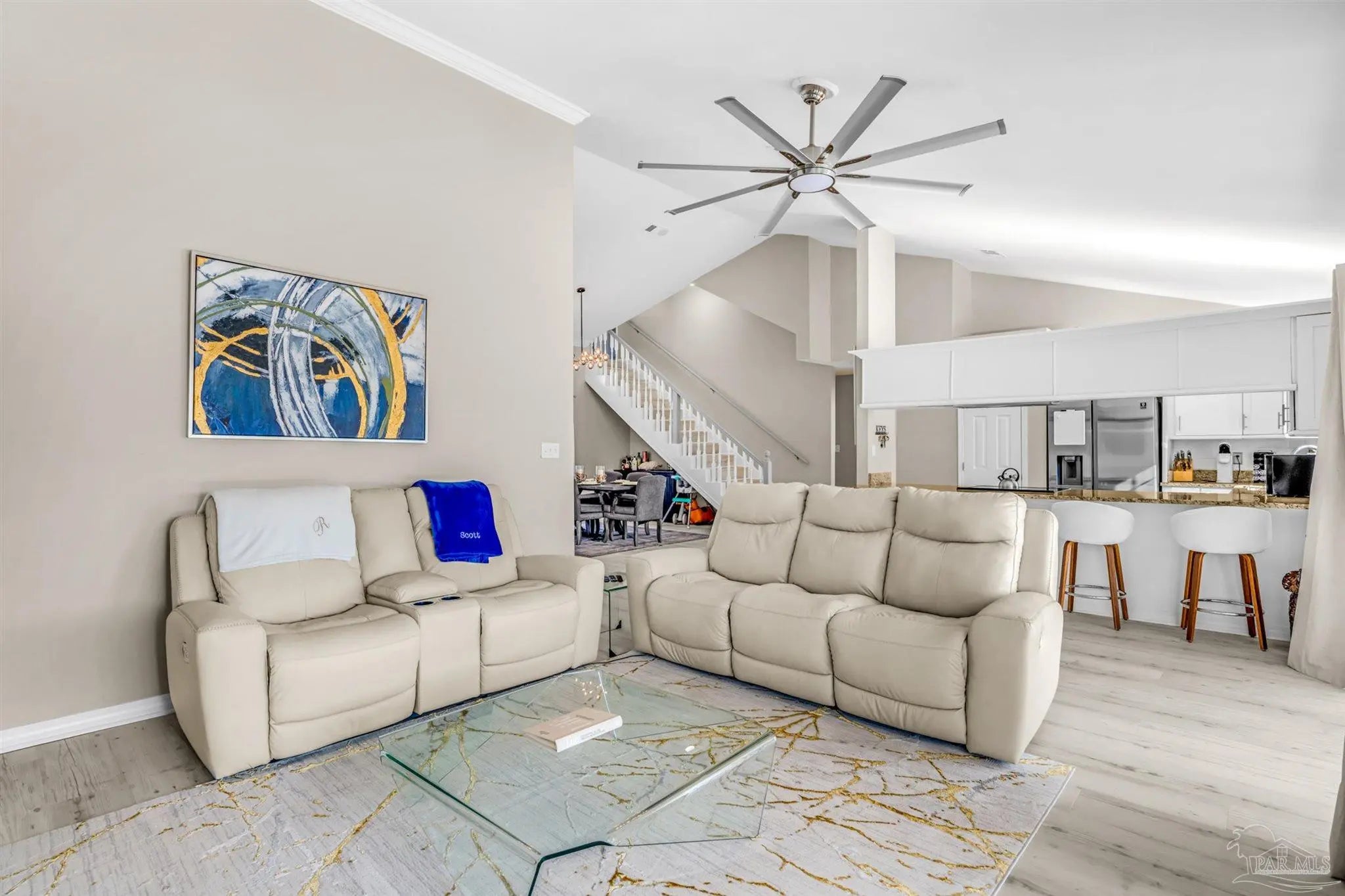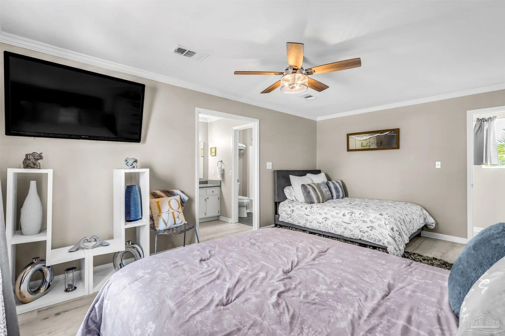 This rare Canal Front, has views of Perdido Bay, and a Swimming Pool! If you love the Pensacola coastal lifestyle and being on the water, this home is for you. This attractive and well-maintained three-bedroom, two-and-a-half-bath pool home is tucked away in the highly sought-after Santa Marina waterfront community. Enjoy a beautiful view of Perdido Bay with no rear neighbors. A private wetlands preserve across the canal provides peaceful scenery and frequent wildlife sightings, including osprey, otters, dolphins, pelicans, turtles, and jumping mullet. Situated on a deep-water canal, the property offers 80 feet of water frontage and a private dock with direct access to Perdido Bay and the Gulf of Mexico. Inside, you are welcomed by thoughtfully designed living spaces filled with natural light. Floor-to-ceiling windows brighten the family room with morning sun. Features include high ceilings, and crown molding. All new high quality flooring and tile throughout the home. The kitchen is equipped with newer stainless steel appliances, granite countertops, and a tile backsplash. This custom home features two primary suites. The main level primary suite is spacious and includes a private entrance, garden tub, double granite vanities, large walk-in luxury shower with two shower heads, and a fully built-out walk-in closet. Upstairs, the second primary suite is oversized with a full bath, offering privacy for guests or family members. Recent upgrades include Roof (2022), HVAC and whole-home in-duct air purifier (2021), appliances (2021,2025), dock (2023), and pool pump (2021). Popcorn removed, painted ceiling to floor (2025) Enjoy stunning sunrises and sunsets, entertain by the pool, or fish right from your dock. Room to park your boat and a side entry garage.