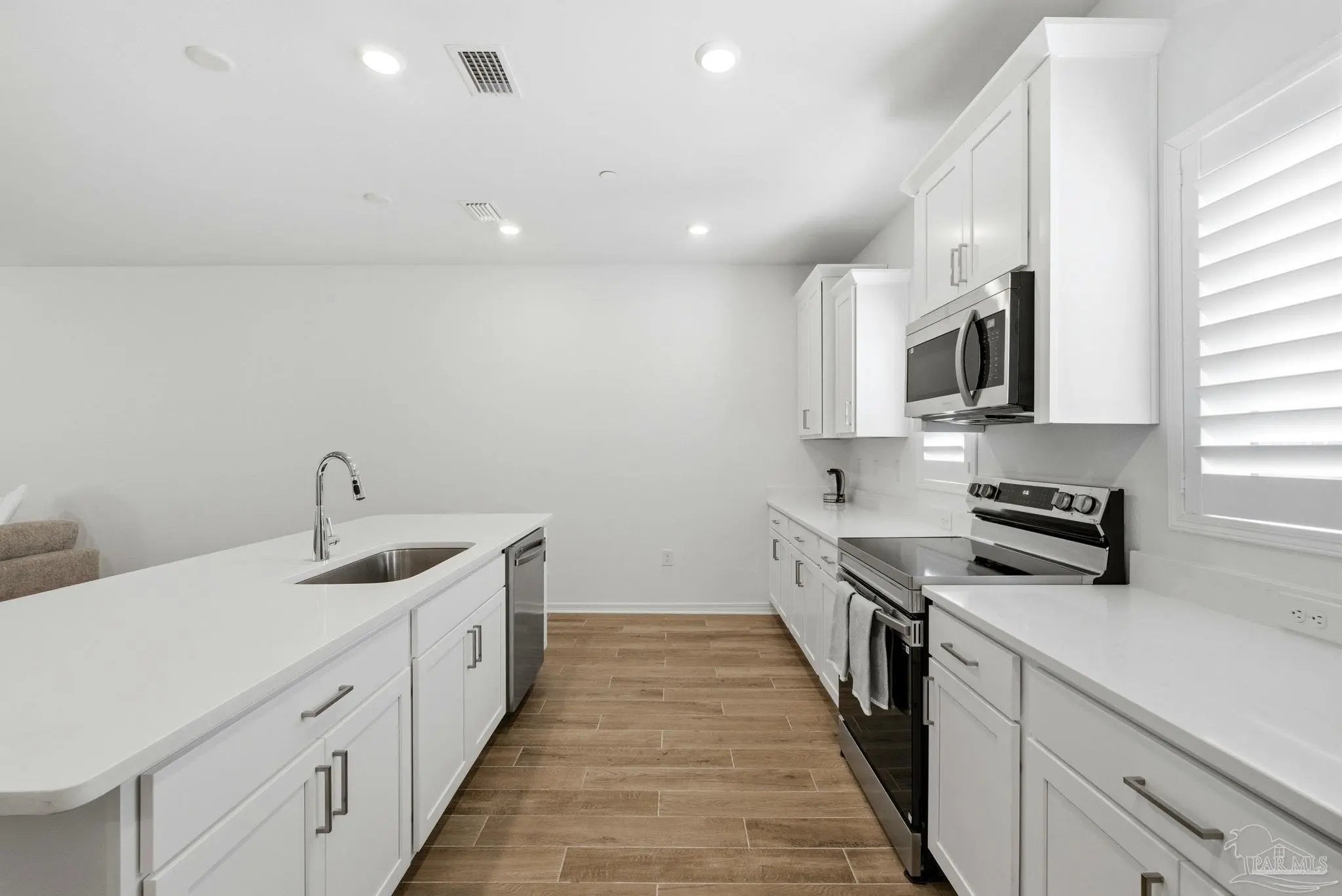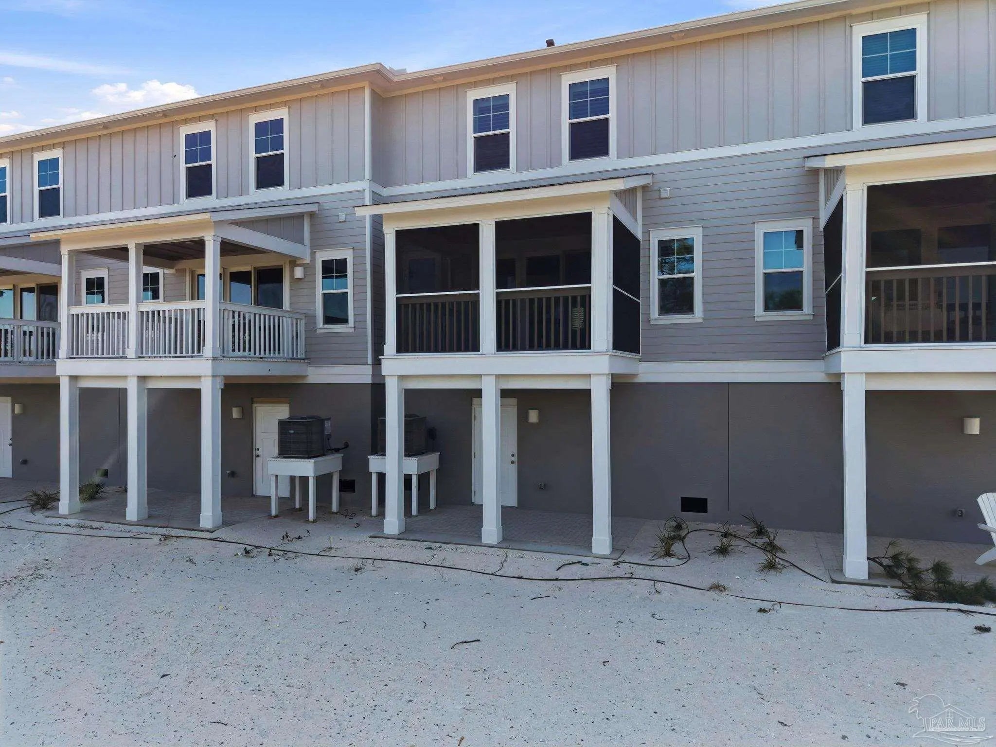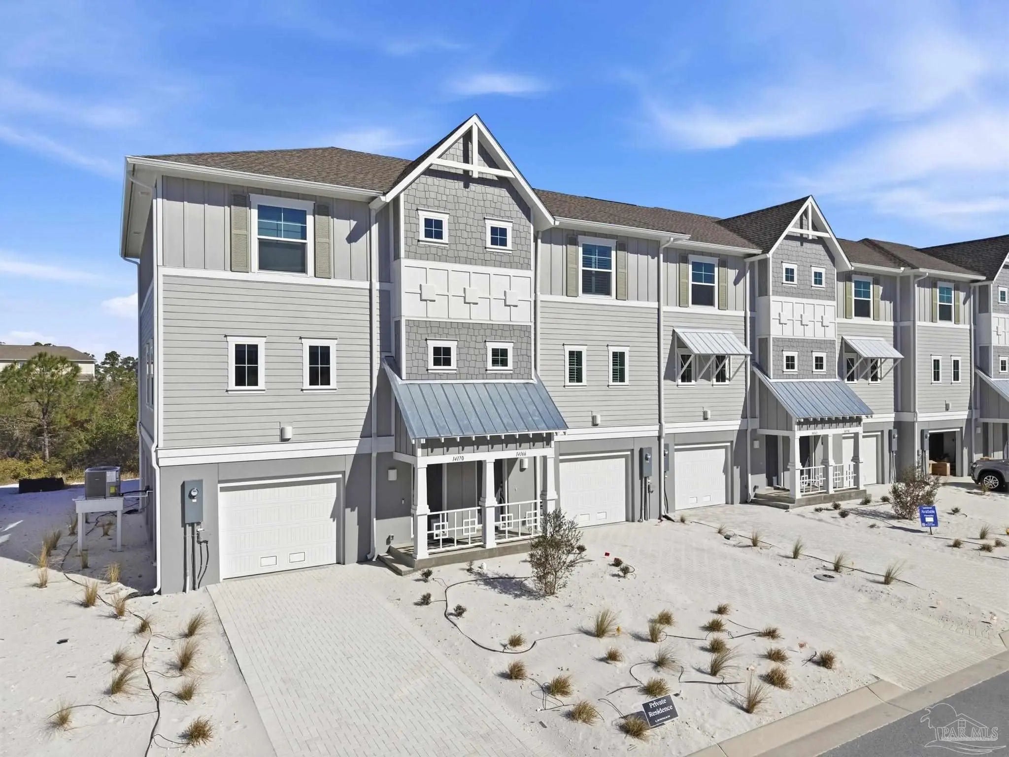 PRICED TO SELL! Come see this PARTIALLY furnished 3 BDRM, 2.5 BATH TOWNHOUSE that is the best priced new resale! Still enough to do to make it your own beach retreat but you have a headstart! Sellers added a fine mesh screen on the covered back porch and plantation shutters throughout on all windows except in shower. The townhouse has wood-look tile in foyer, living/kitchen/dining areas, and tile in the bathrooms. The kitchen has all stainless appliances with a large island, two pantries, white cabinets and white quartz countertops. There is a laundry closet upstairs with a washer and dryer and two full baths up and half bath down. Bathrooms also have white cabinets, quartz countertops, and the master has dual sinks and shower only with guest bath having a shower/tub combo. There is also a tandem two car garage and storage plus a covered patio on ground floor. This street also has pavers for the driveway and back patio and is a closer walk/bike to the beach and beach club since it is in the southernmost area of Lost Key! Lost Key is loaded with amenities…beach, pool, fitness room, tennis courts, and is on a beautiful public golf course. Close to restaurants, shopping, the Perdido Key bike/walking path and more. You can have the newness for less and added features already started for you! Grab it quick!