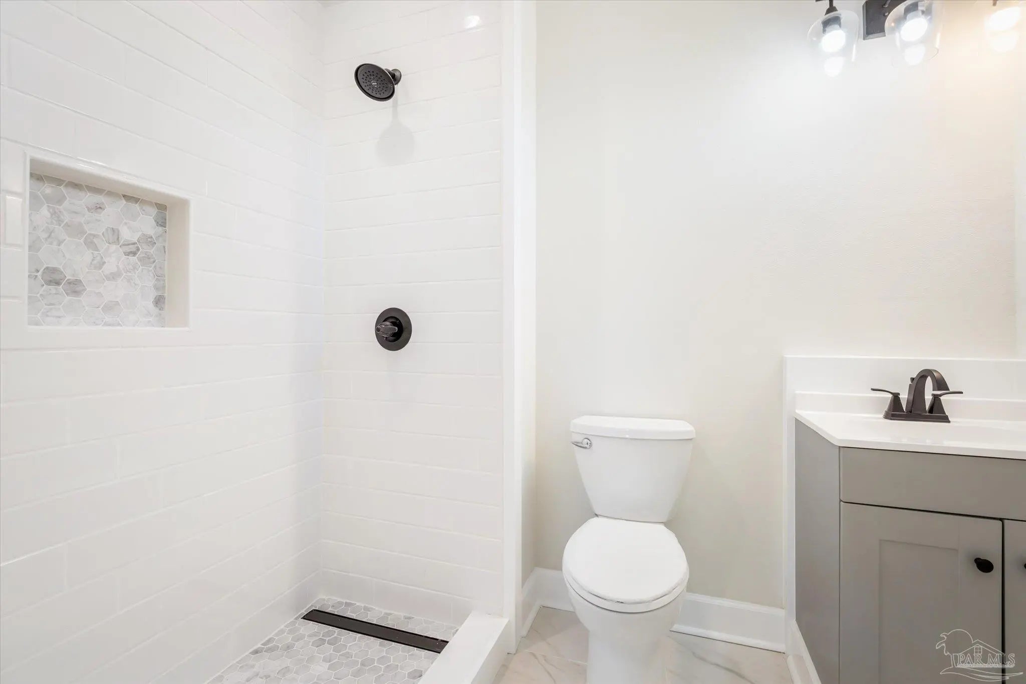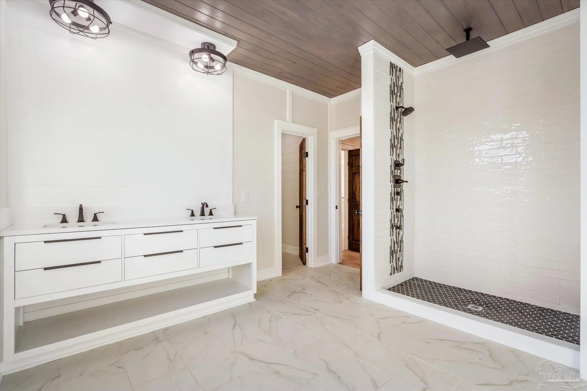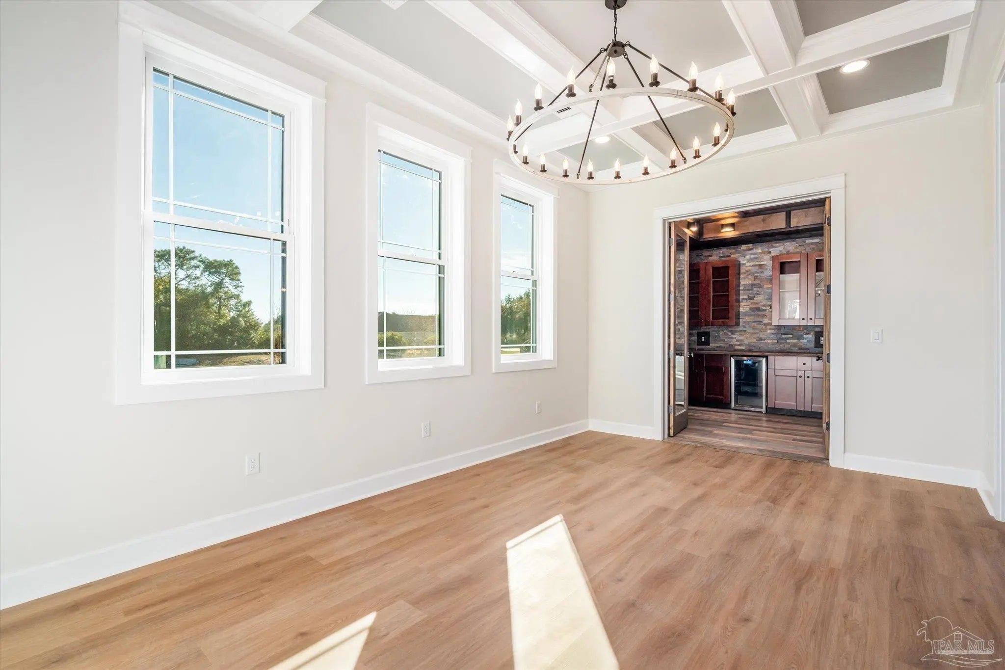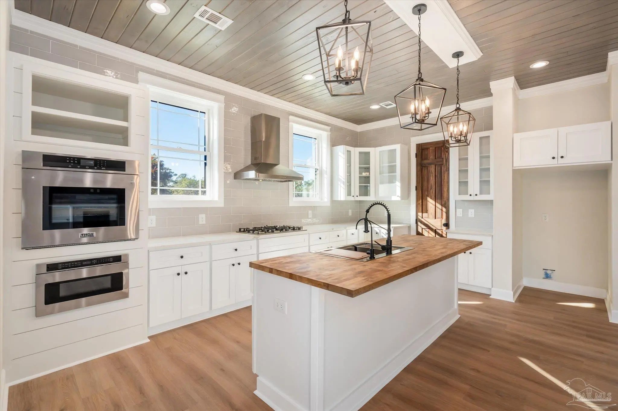 Welcome to luxury living in this NEW CONSTRUCTION home with 5 bedrooms, 5 full bathrooms, 1 half bath, and almost 5,000square feet in the sought after Leeward Subdivision. Leeward is located near the beautiful beaches of Perdido Key, Big LagoonState Park, and just minutes from the Pensacola Naval Aviation Museum. As you arrive into the cul-de-sac, you will notice the beautiful construction, and the thought and time that has been put into this home. Privacy awaits as common areas surround the home, and you will only have one direct neighbor. Tongue and groove ceilings, on the beautifully stained porch, greet you as you step into the home. As you enter, you are greeted with a large entryway that opens up to the open concept living, kitchen, and dining area. You will immediately notice the details of this home from the high ceilings, crown molding, tongue and groove, beautiful stone countertops, Thor appliances, coffered ceilings in the dining area, and the custom wine room perfect for entertaining. Upstairs, you will find 3 bedrooms (including the master), and 3 full bathrooms with a large sitting area. The master bedroom has a fireplace and walk-in closet, and the master bathroom boasts a double vanity, separate garden tub and walk-in tile shower perfect for a night of relaxation after a long day. The fifth bedroom with a full bath is located above the garage and would be the perfect mother-in-law suite, game room, or guest room. The oversized 2.5 car garage is 27 ft deep, and provides plenty of room for large vehicles, lawn equipment, and storage. Additionally, the community has a community pool, park and volleyball courts to use at your leisure. The home is located near everything Pensacola has to offer. Do not wait, your dream home awaits!