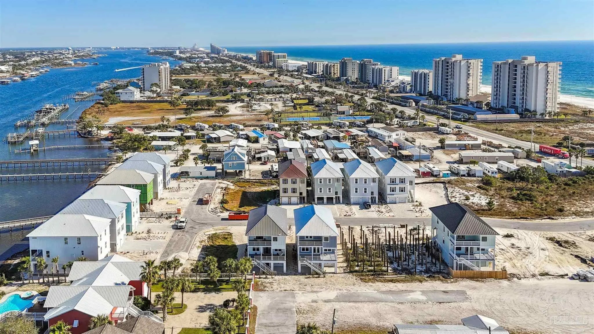 Brand new home in Yacht Harbor, close to the beach and boast views of the gulf and on Ole River side with Boat Docks. Great Corner lot. This is a 5 BD, 51/2BA luxurious free standing home, completed in late 2024 and will sleep 14+. Elevator- Sold Fully Furnished. Community has private dock w/ some first come Boat slips completed now, community pool to be completed soon w/ pickle ball court. Close to FloraBama(less than a mile) Crab Trap, several beach access points w/parking, restaurants, grocery stores, OB& Pensacola. 3 night minimum for STR. This home is set up for STR and is currently being rented. Please contact to verify no renters is in home. Future Rental Projections can be provided.