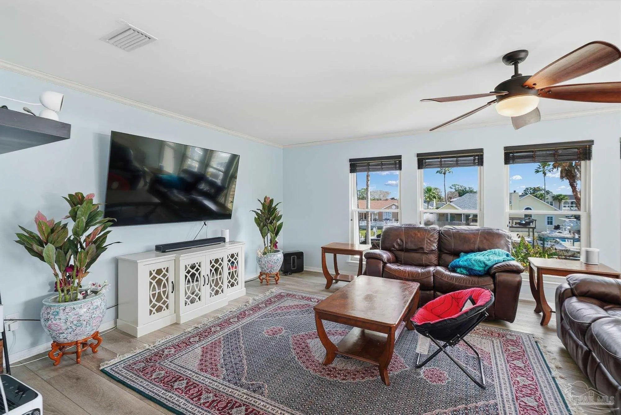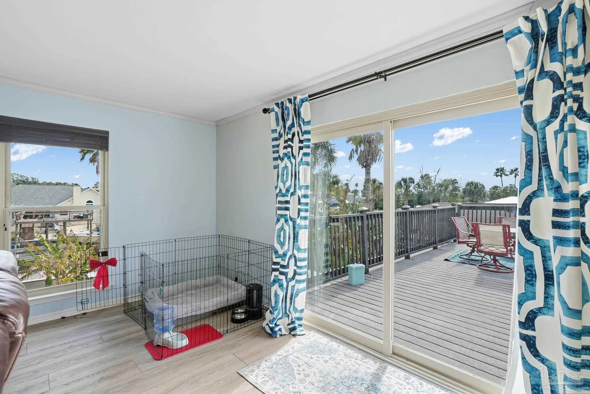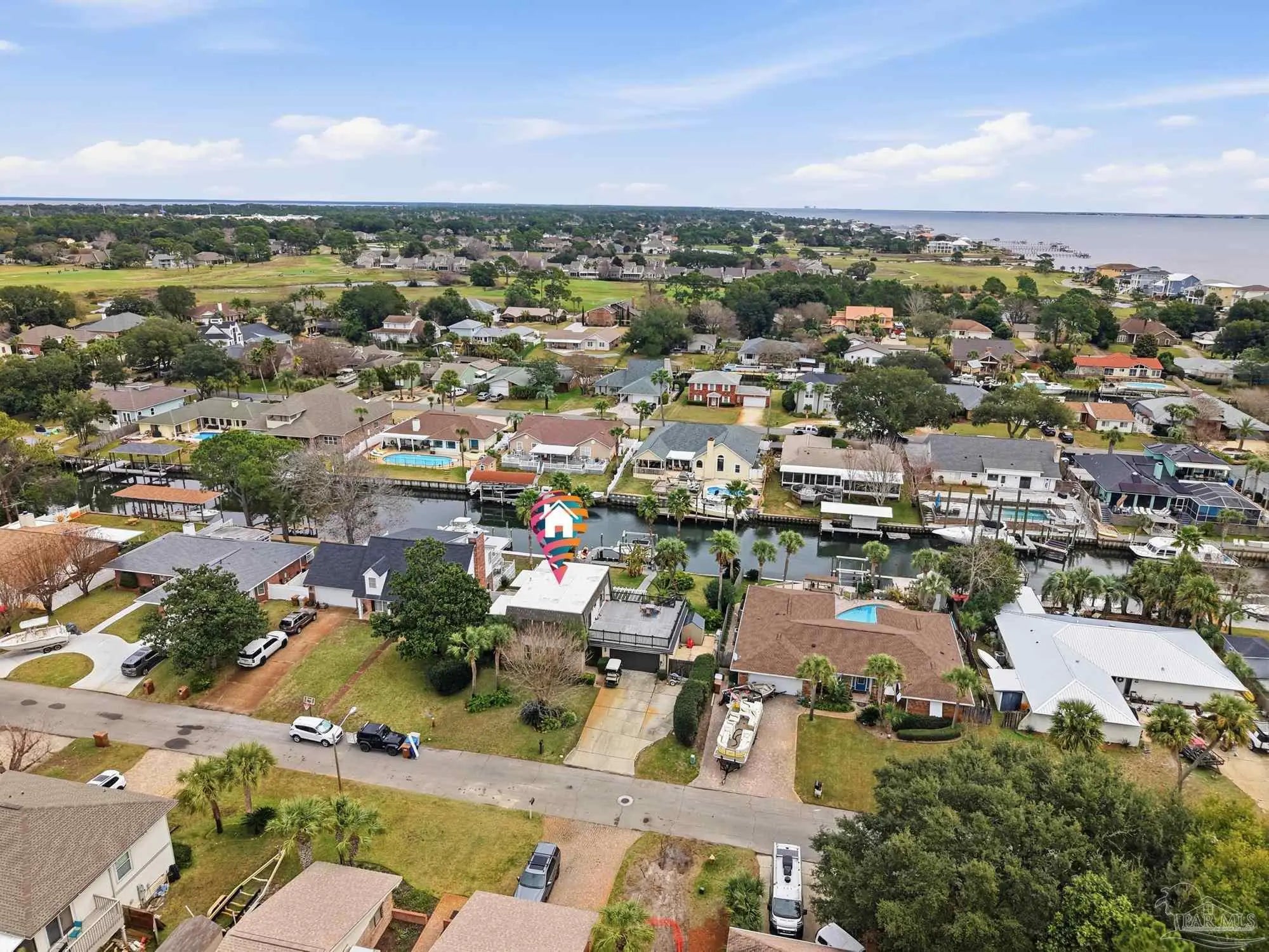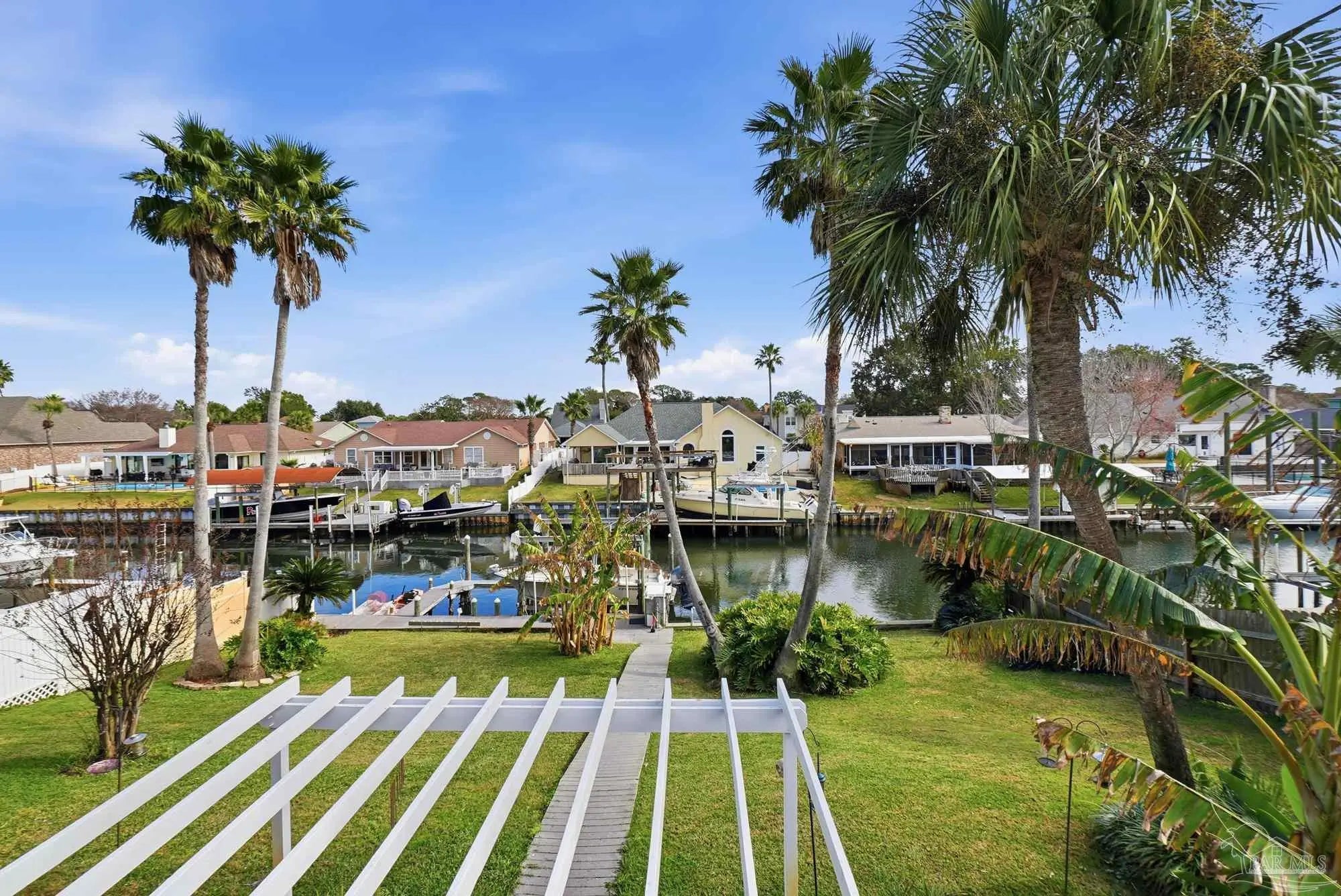 Welcome to effortless coastal living where every day feels like a vacation! This 3br, 2.5ba canal-front stunner is made for boaters and entertainers! Cruise out anytime from your own boat slip with a 20,000lb boat lift, then rinse off in the outdoor shower room after a day on the water. The huge upper deck sets the stage for epic gatherings, sunset cocktails, and weekend celebrations. A detached bonus space (previously the garage) offers flexibility for a guest suite, gym, game room, storage, etc.. or can be converted back to garage space. The 2nd floor offers open kitchen and living space, and the 3 bedrooms are conveniently located on the main floor. Come embrace this golf cart friendly community just minutes from the park and Tiger Point Golf Course!