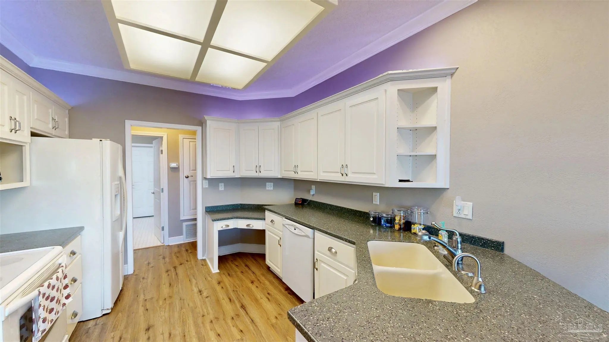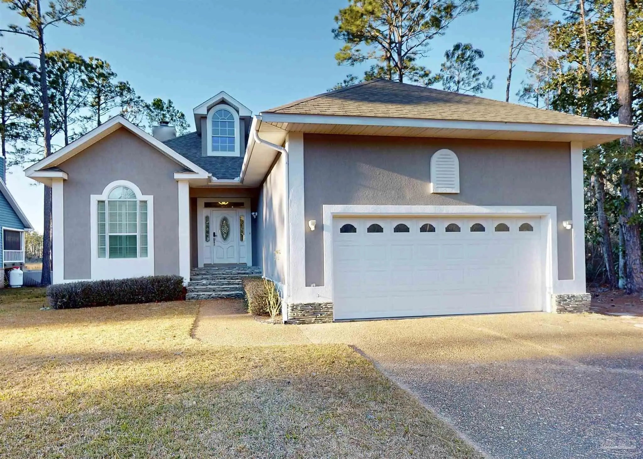 You feel it the second you walk in. The front door opens and Escambia Bay stretches out in front of you, framed by sawgrass and sky, like the house was built around the view.. because it was. The foyer welcomes you with vaulted ceilings and marble floors and from there the view of the bay follows you everywhere: the living room, kitchen, dining room, even the primary bedroom. This custom-built 3-bed, 2-bath home offers 1,963 square feet designed with intention and care, shaped by an owner who truly loved it. Trees were thoughtfully cleared to create a peaceful backyard that feels private and expansive, while a full irrigation system keeps the grounds looking great year-round. Inside, built-in storage is everywhere you want it, and a double-sided fireplace connects the living area to a guest room or home office, your choice. The primary suite is a retreat of its own with a huge closet, double vanity, walk-in shower, and jetted garden tub. Even the garage is finished with a mini-split HVAC. Located in Milton, you’re close to Pace shopping and dining, about 30 minutes from Pensacola Beach or downtown, yet far enough out to feel like you have your own nature preserve. Deer, Bald Eagles and Cranes don’t just visit.. they’re part of the view.