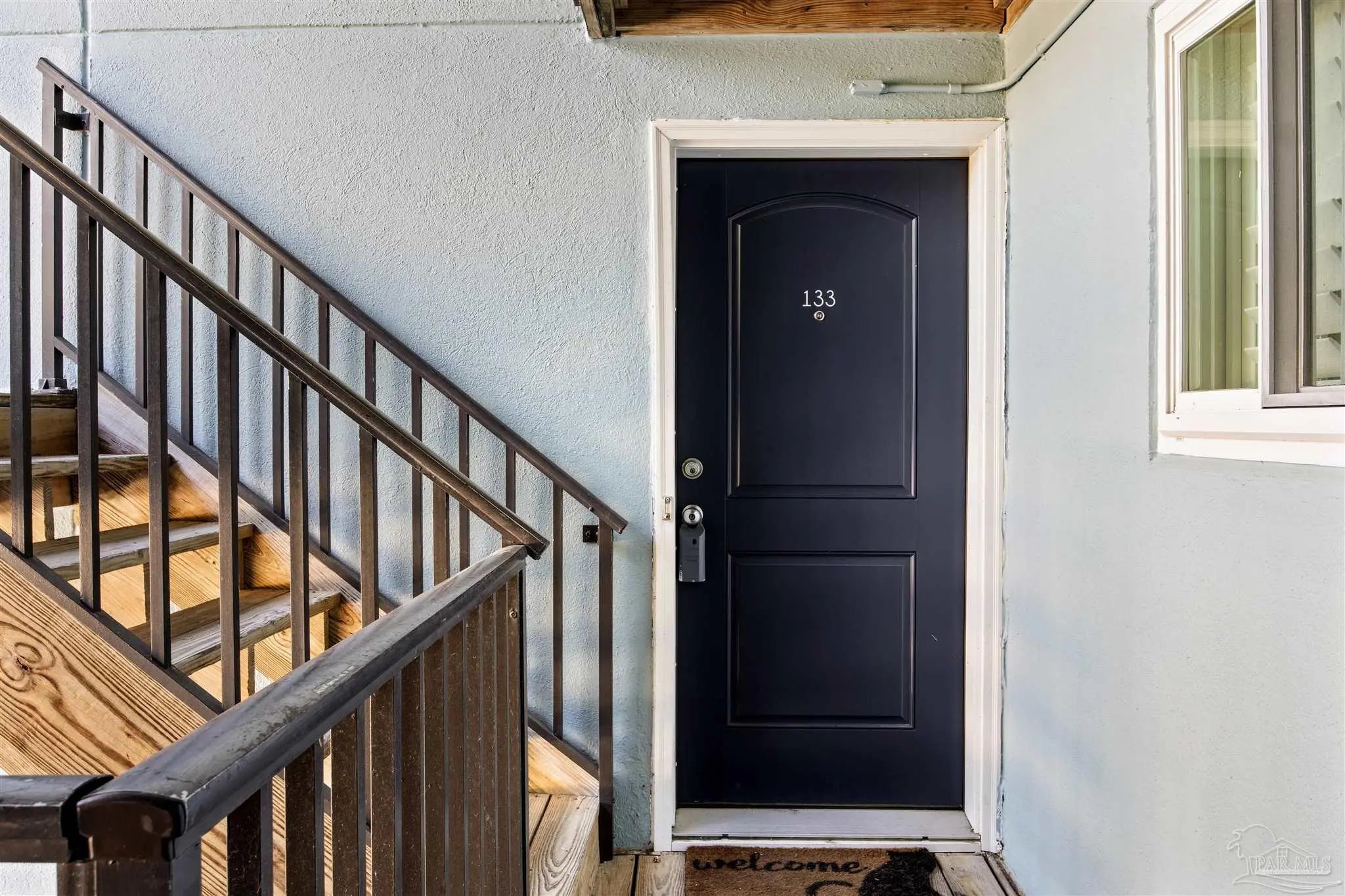 First-floor 2-bedroom, 2-bath condo in desirable Perdido Key offering waterway views, unforgettable sunsets, and direct access to Holiday Harbor docks from your private back balcony with steps down to the water. Sliding glass doors lead to the back patio, creating a seamless indoor-outdoor feel and inviting in the coastal breeze. The open living and dining area features an electric fireplace and wet bar, while the primary suite includes two large closets and a private bathroom with a spacious vanity and tub/shower combo. The unit also offers a spacious second bedroom and a second full bathroom with a tub/shower combo, ideal for guests or flexible living. Additional highlights include an in-unit washer and dryer and thoughtfully designed living space. The community offers resort-style amenities, including a sparkling pool, grilling areas, and secure storage for bikes and paddleboards. Ideally located just minutes from Johnson Beach, Lost Key Golf Course, the waterfront dog park, popular local restaurants, and miles of walking and biking paths, with easy access to NAS Pensacola, downtown Pensacola, and Orange Beach—coastal living at its best.