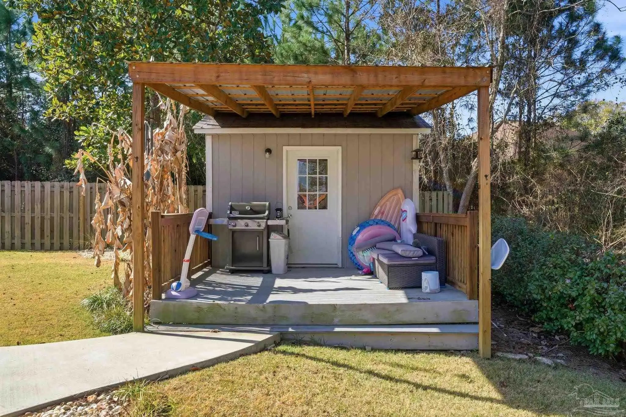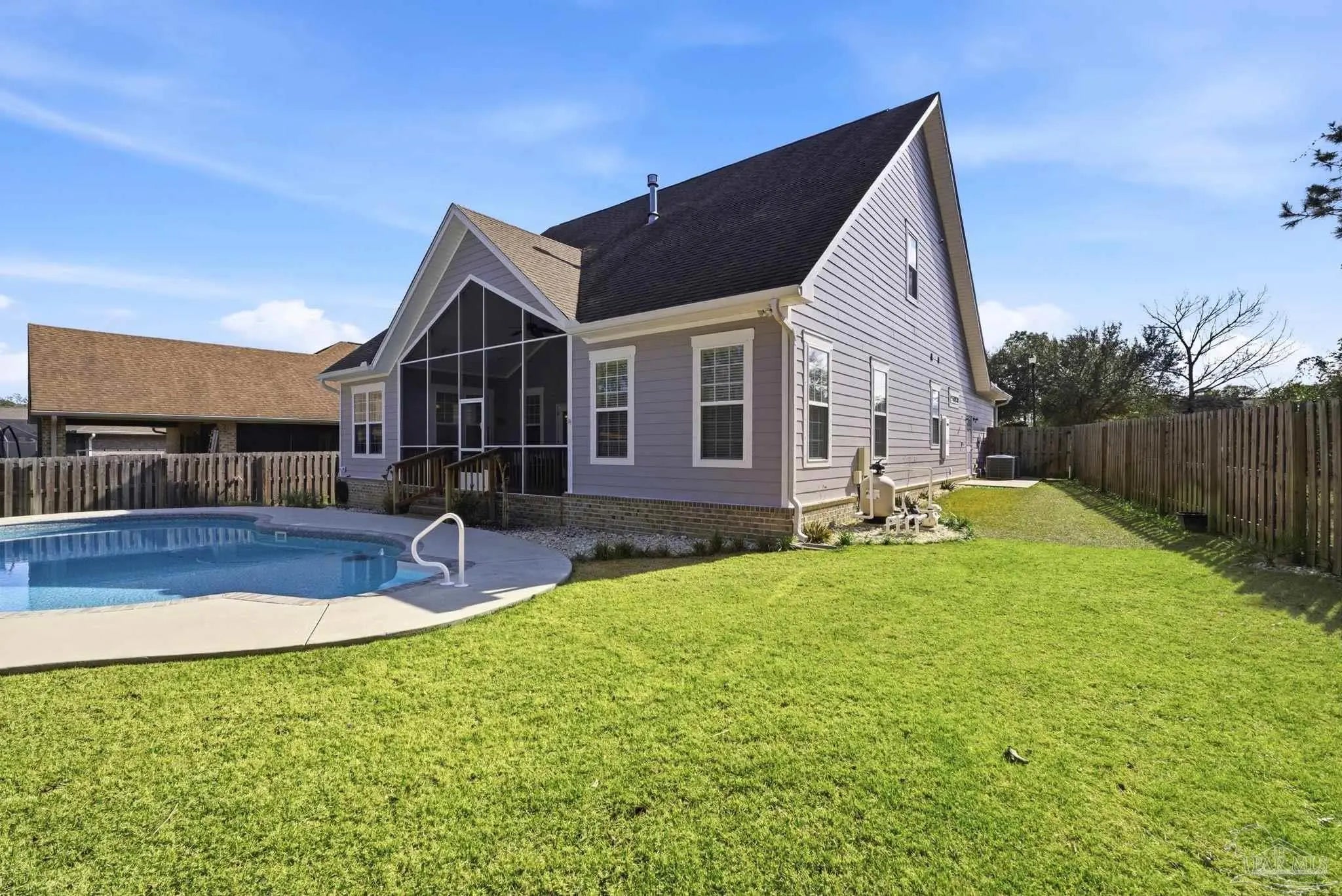 Private, custom-built Nature Trail pool home located on a quiet cul-de-sac and backing directly to the conservation area—offering rare privacy with no rear neighbors. This two-story home in Nature Trail has received a fresh coat of exterior paint and features an open-concept floor plan, tall ceilings, and Wood-look Tile floors throughout the main living areas. The kitchen showcases a brick hop-up island, brick backsplash, and seamless connection to the living and dining spaces, making it ideal for both entertaining and everyday living. The primary suite on the main level provides comfort and convenience, while a dedicated home office supports today’s flexible lifestyles. Upstairs offers two additional bedrooms, a full bath, and a large bonus room perfect for a media room, playroom, or second living space. Outdoor living is a standout feature with a private swimming pool (installed 2023), screened patio, and pool house/storage building, outdoor shower, all overlooking the peaceful wooded conservation backdrop. Why Relocators Love Nature Trail: • Guard-gated community with preserved green space • Miles of scenic walking trails • Resort-style amenities including clubhouse, pool, and fitness center • Active neighborhood with year-round events • Convenient Pensacola location near shopping, dining, NAS Pensacola, and the beaches Nature Trail offers the perfect balance of luxury, privacy, and community—making it one of Pensacola’s most sought-after neighborhoods.