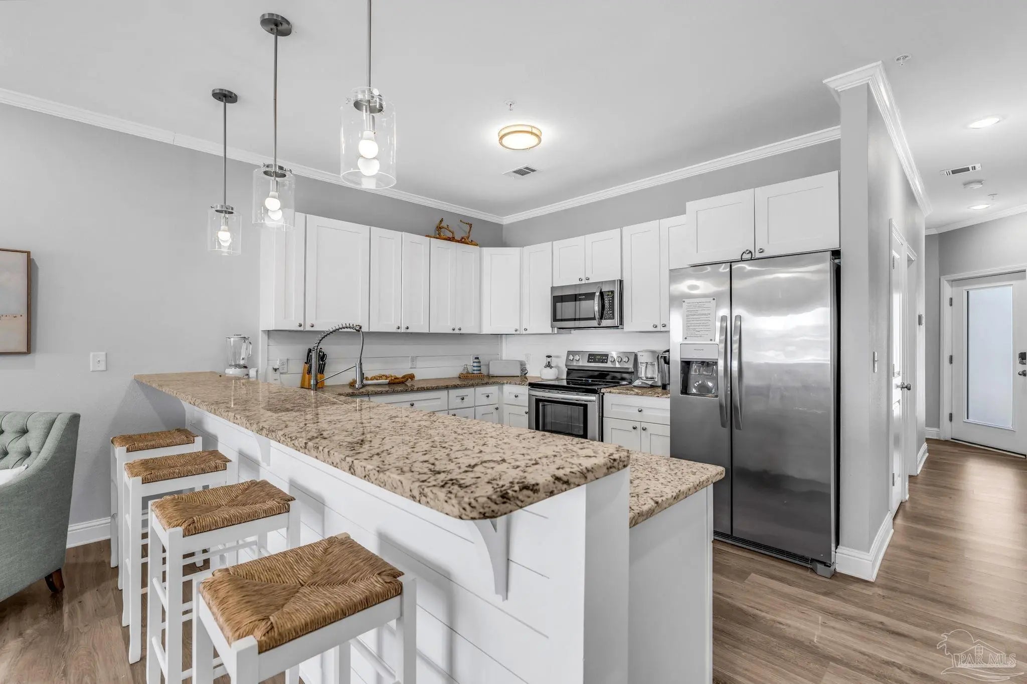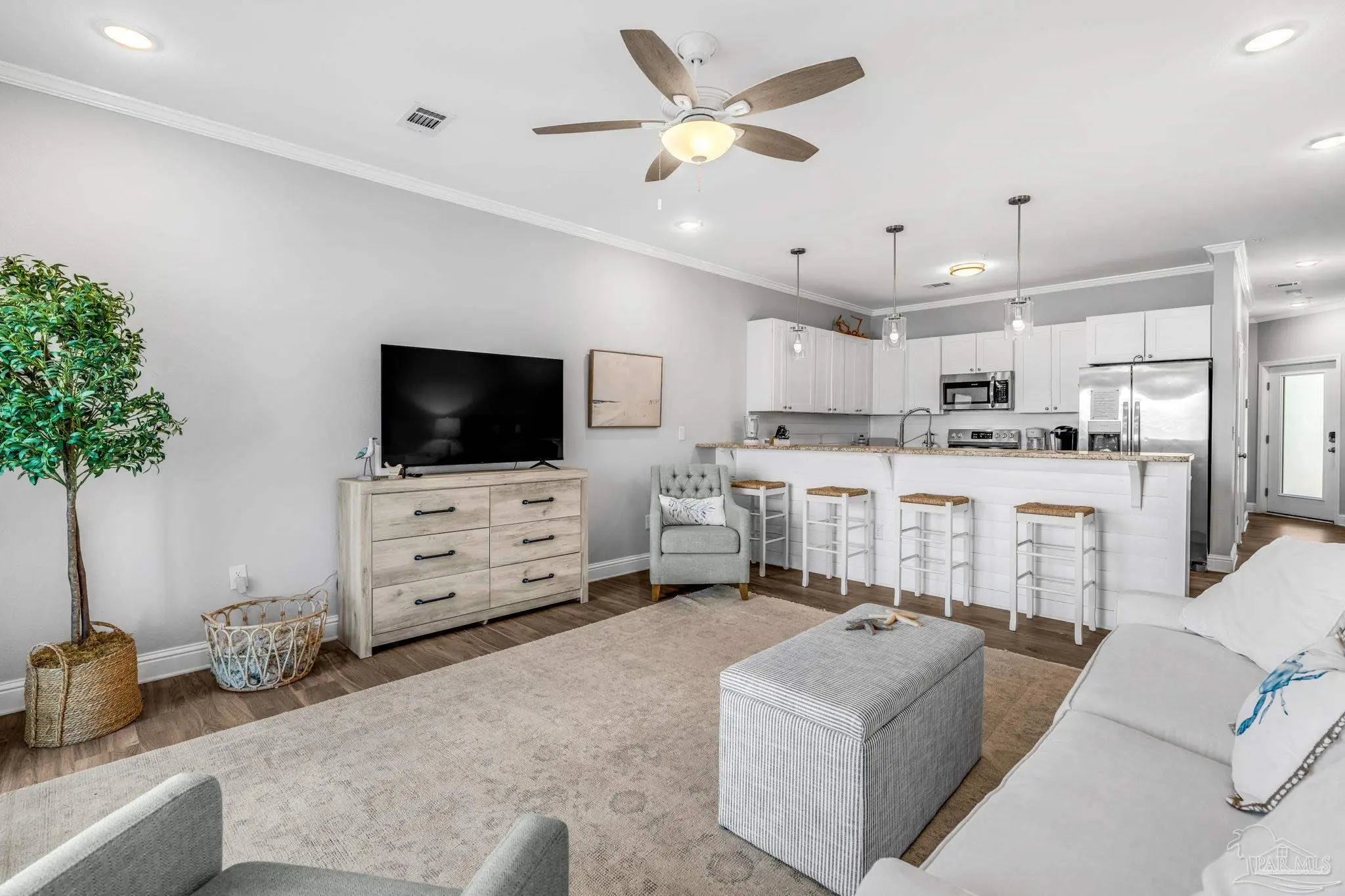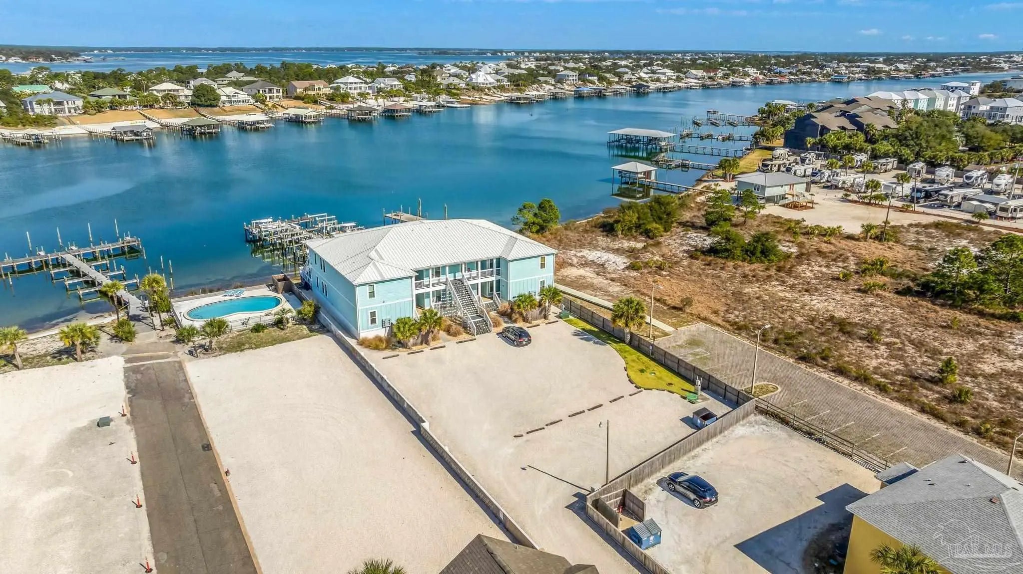 Welcome to modern coastal living at Pescador Landing #3A, a beautifully appointed 1-bedroom, 2-bath condo built in 2022 and perfectly positioned on Perdido Key. This 772 sq ft residence offers an open, light-filled layout with 10’ ceilings, LVP flooring, and elegant crown molding throughout. The modern kitchen and bathrooms feature granite countertops, complemented by 2022 appliances including stove, microwave, and dishwasher. Offered fully furnished, this condo is truly move-in ready and includes a stacked washer and dryer plus a convenient outside owner storage closet. A standout feature is the assigned boat slip with a 10,000 lb boat lift, making this an ideal home for boating enthusiasts. Enjoy peace of mind with all major systems—HVAC, water heater, and appliances—installed in 2022. Pescador Landing is an intimate community of just 12 residences, featuring a community deck and private parking. With no nightly rental restrictions, this property offers excellent flexibility for personal use, long-term living, or investment potential. HOA dues include trash, water/sewer, basic cable, pest control, association maintenance, and common area & building insurance, providing low-maintenance ownership. Whether you’re looking for a full-time coastal retreat, a weekend escape, or a smart investment near the water, Pescador Landing #3A delivers modern comfort with boating access in a prime Perdido Key location.