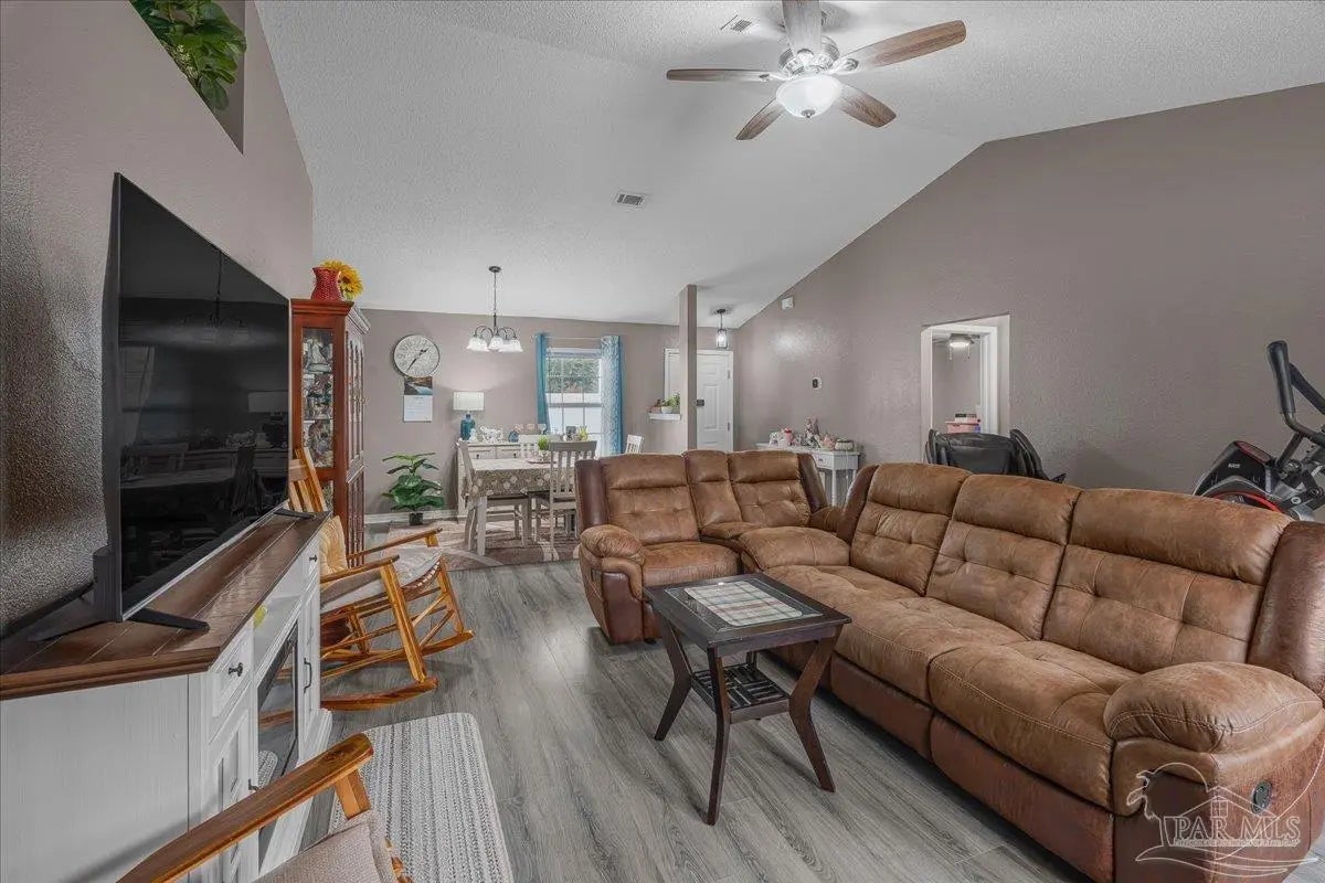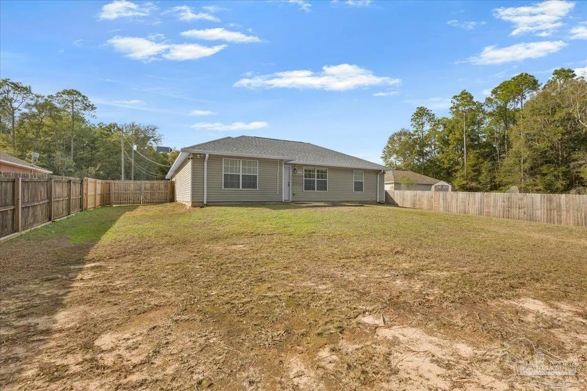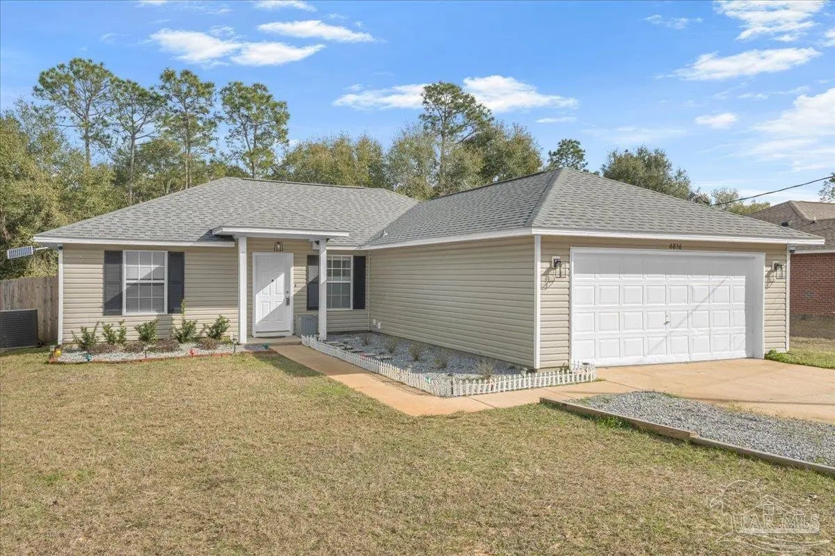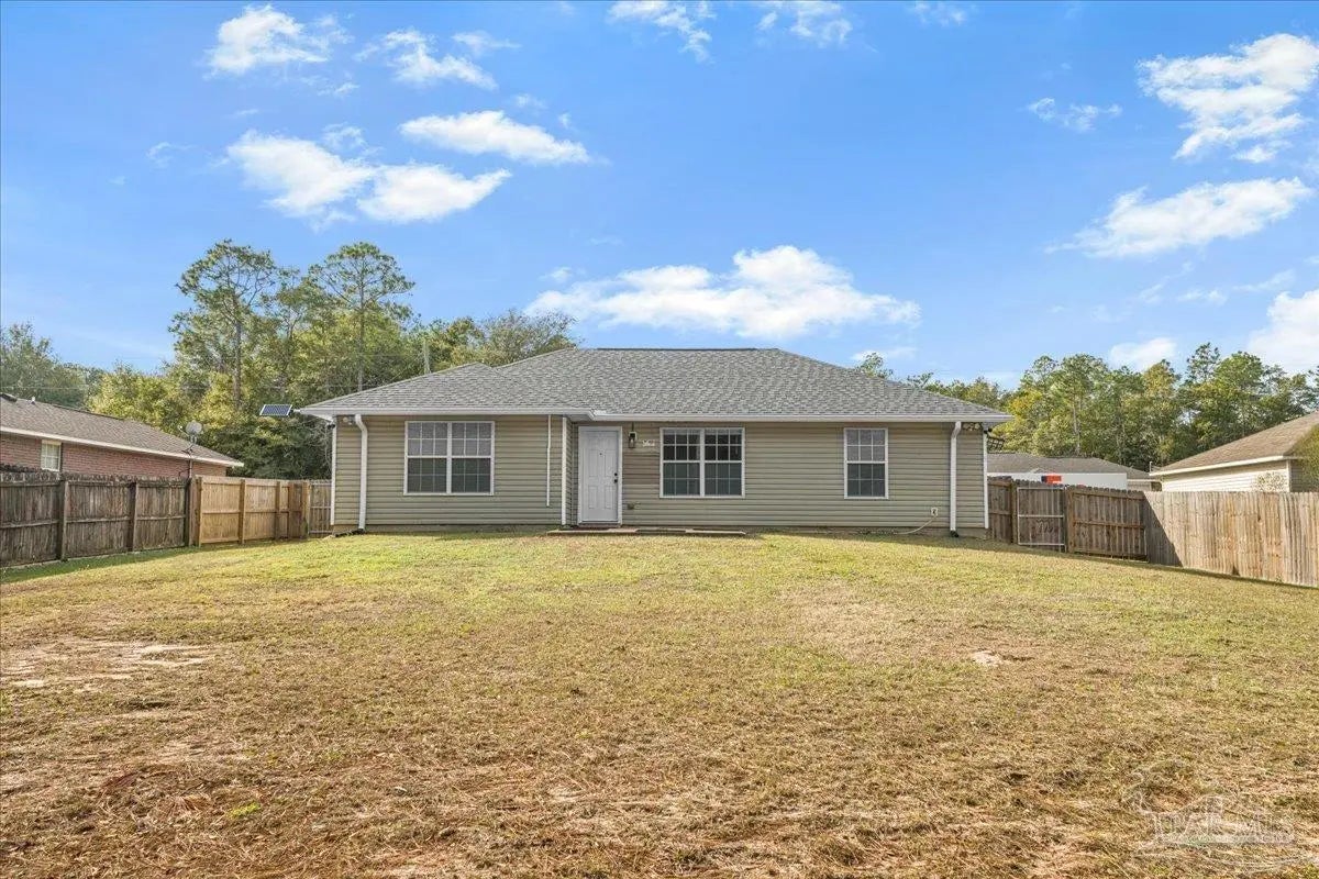 Welcome to this charming three-bedroom, two-bath home located in Milton, close to WHITING FIELD Naval Air Station and Nice Schools, offering comfort, space, and great curb appeal. As you step inside, you are greeted by a spacious living room highlighted by VAULTED CEILINGS that create an open, airy atmosphere—perfect for both everyday living and entertaining guests. LVP FLOORING creates a smooth transition from room to room. Open to the living area, the dining area flows seamlessly into the kitchen. The kitchen is thoughtfully designed and features SOLID WOOD CABINETRY and STAINLESS-STEEL appliances providing both durability and classic style, along with large PANTRY and plenty of workspace to accommodate all your cooking needs. Adjacent dining space makes family meals and gatherings easy and inviting. The primary bedroom serves as a relaxing retreat SPLIT for added privacy, complete with a generous sized WALK-IN CLOSET and private bath with a DOUBLE VANITY for added convenience. Two additional bedrooms are ample in size, offering flexibility for family, guests, or a home office, and share a well-appointed second bathroom. The secondary bath features a NEW VANITY. Step outside to enjoy the fully PRIVACY-FENCED BACKYARD, ideal for pets, kids, or outdoor entertaining. The home sits on over 1/3 ACRE, providing plenty of room for expansion, to garden, add outdoor features, or simply enjoy the open space. With a roof installed in 2017 and a new water heater installed in 2024 you will have peace of mind for years to come. Call us today for your private showing!