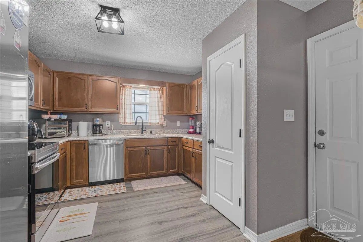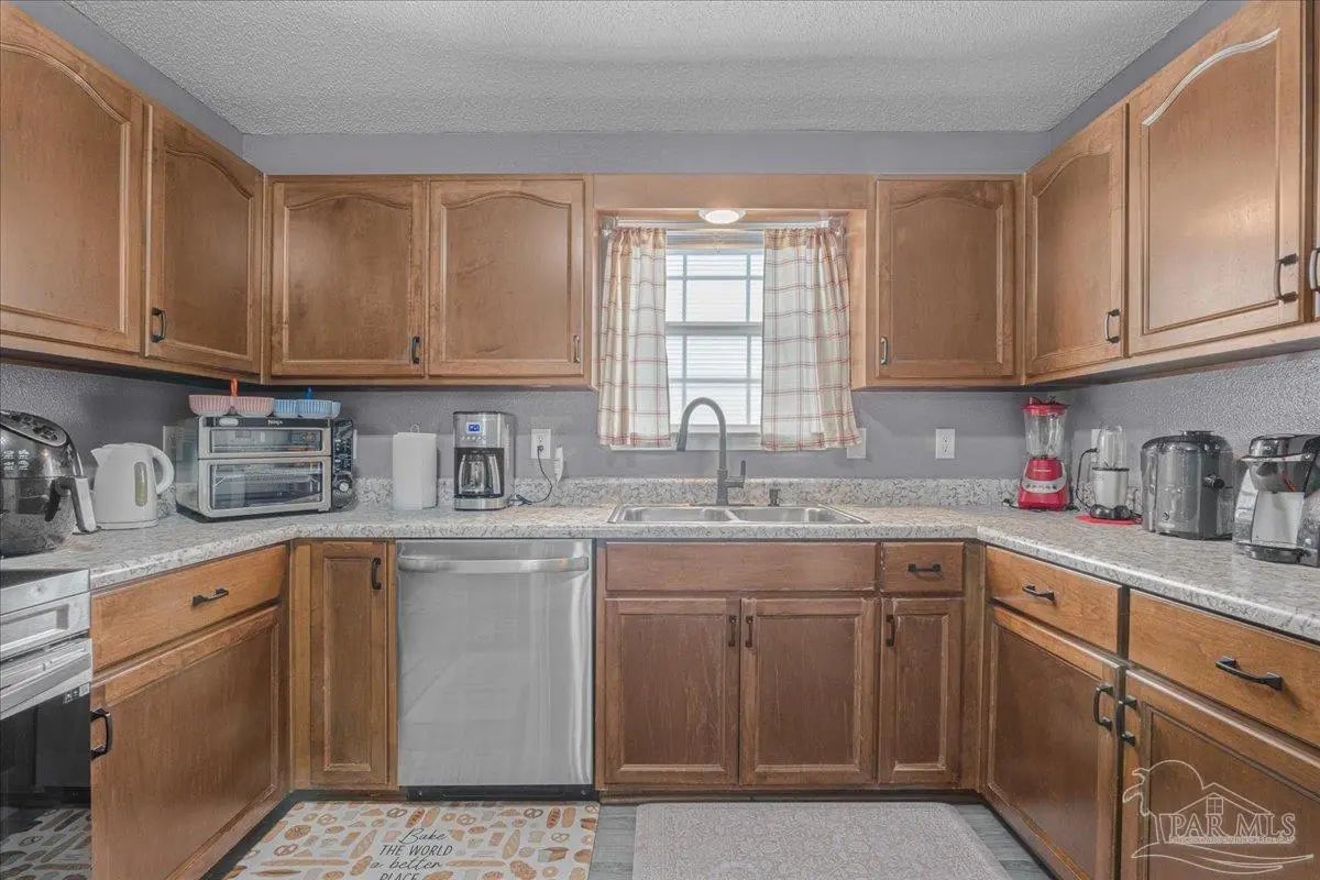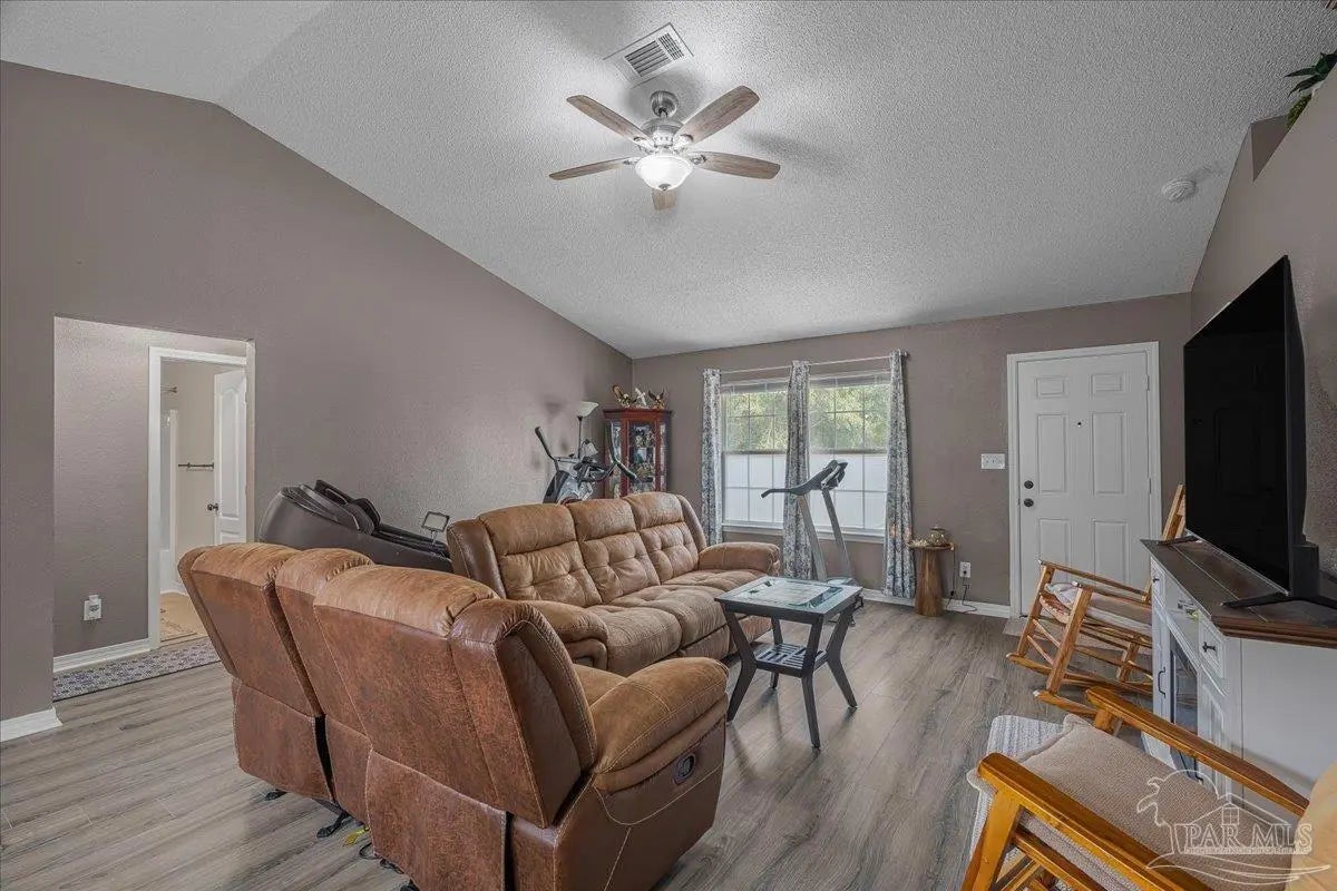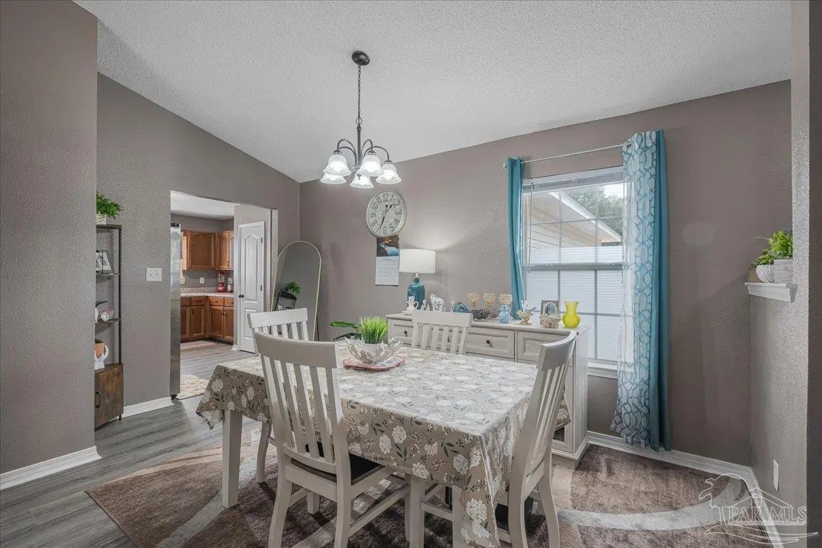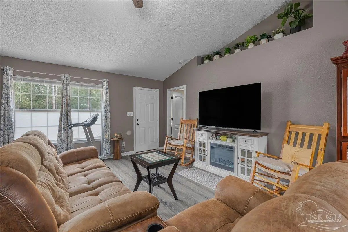 Welcome to this charming three-bedroom, two-bath home located in Milton, close to WHITING FIELD Naval Air Station and Nice Schools, offering comfort, space, and great curb appeal. As you step inside, you are greeted by a spacious living room highlighted by VAULTED CEILINGS that create an open, airy atmosphere—perfect for both everyday living and entertaining guests. LVP FLOORING creates a smooth transition from room to room. Open to the living area, the dining area flows seamlessly into the kitchen. The kitchen is thoughtfully designed and features SOLID WOOD CABINETRY and STAINLESS-STEEL appliances providing both durability and classic style, along with large PANTRY and plenty of workspace to accommodate all your cooking needs. Adjacent dining space makes family meals and gatherings easy and inviting. The primary bedroom serves as a relaxing retreat SPLIT for added privacy, complete with a generous sized WALK-IN CLOSET and private bath with a DOUBLE VANITY for added convenience. Two additional bedrooms are ample in size, offering flexibility for family, guests, or a home office, and share a well-appointed second bathroom. The secondary bath features a NEW VANITY. Step outside to enjoy the fully PRIVACY-FENCED BACKYARD, ideal for pets, kids, or outdoor entertaining. The home sits on over 1/3 ACRE, providing plenty of room for expansion, to garden, add outdoor features, or simply enjoy the open space. With a roof installed in 2017 and a new water heater installed in 2024 you will have peace of mind for years to come. Call us today for your private showing!