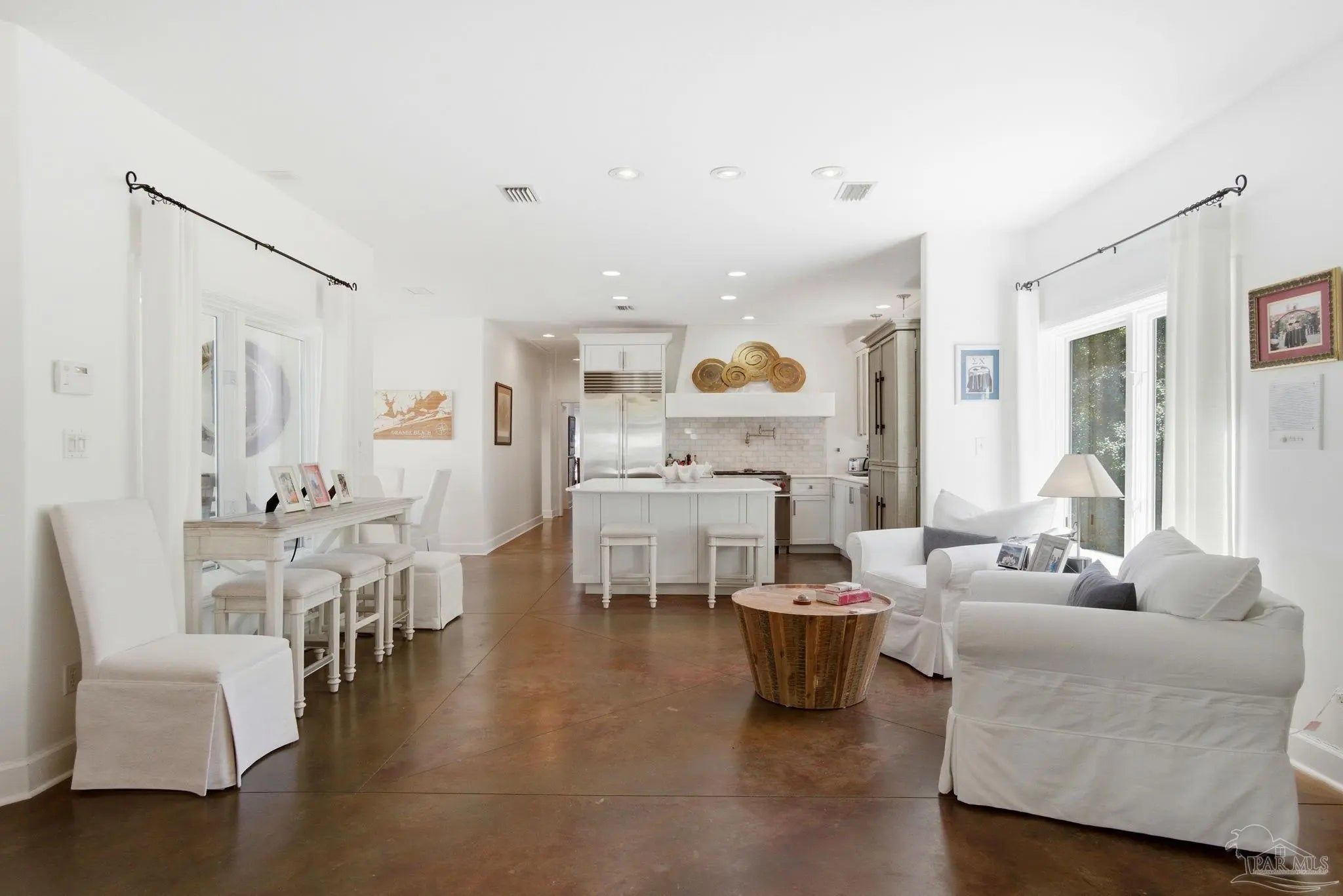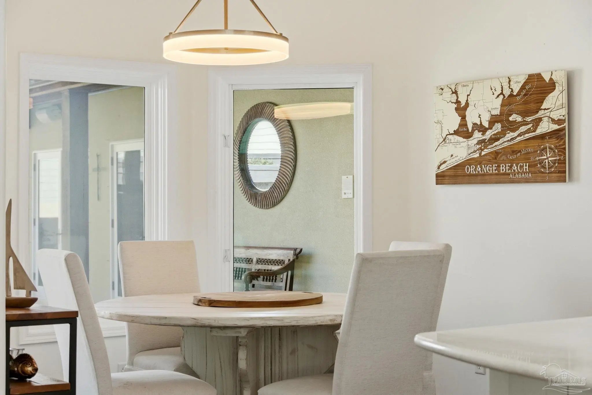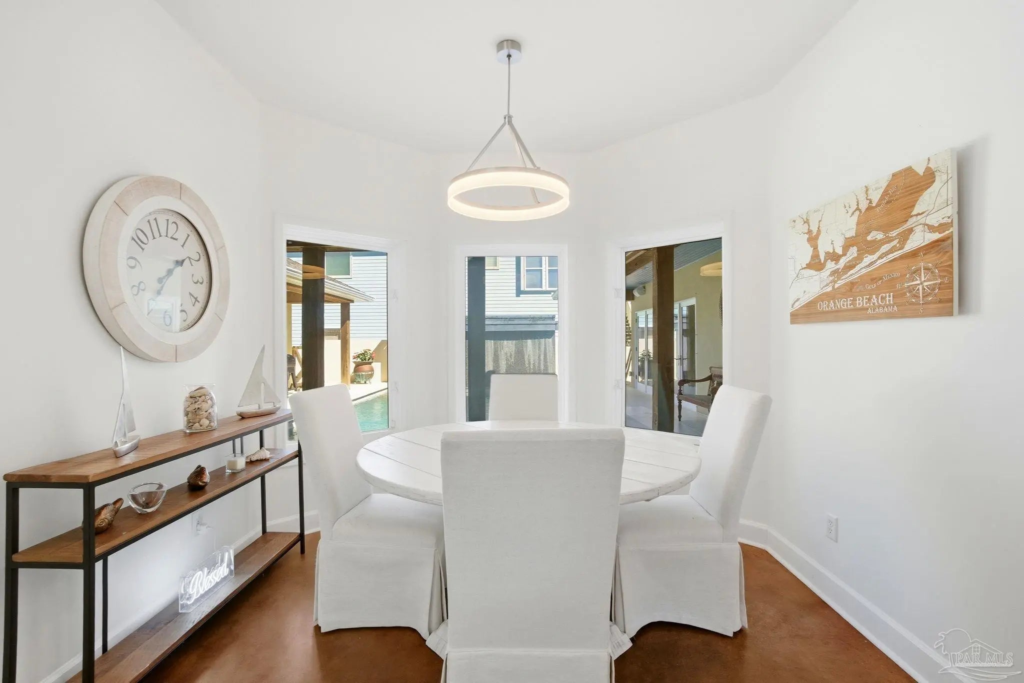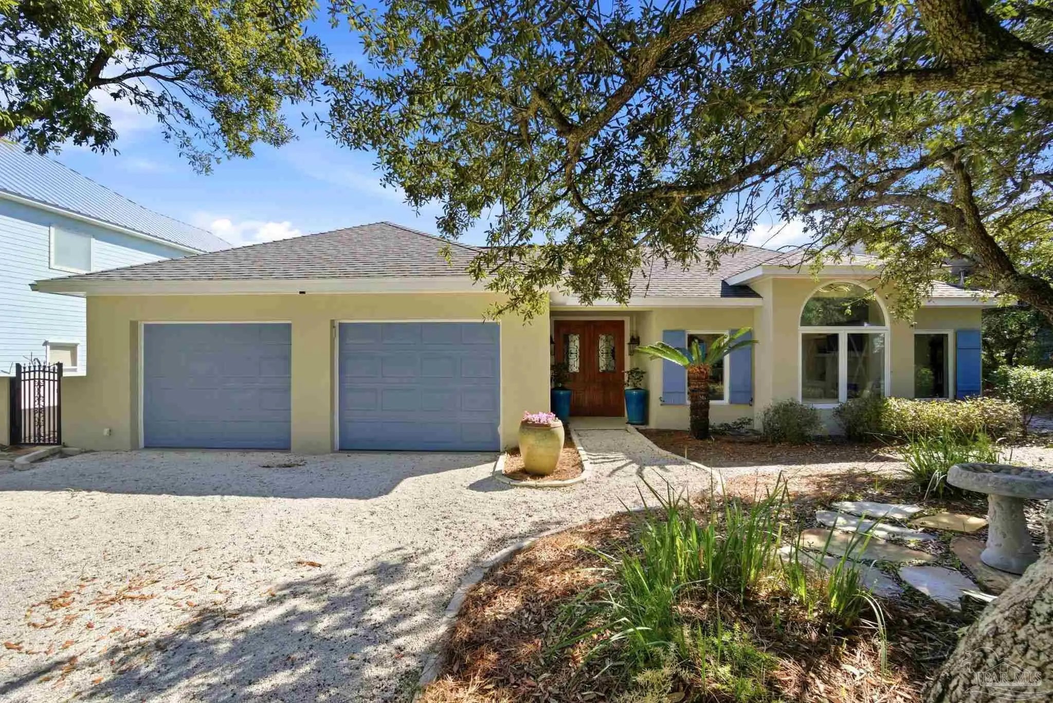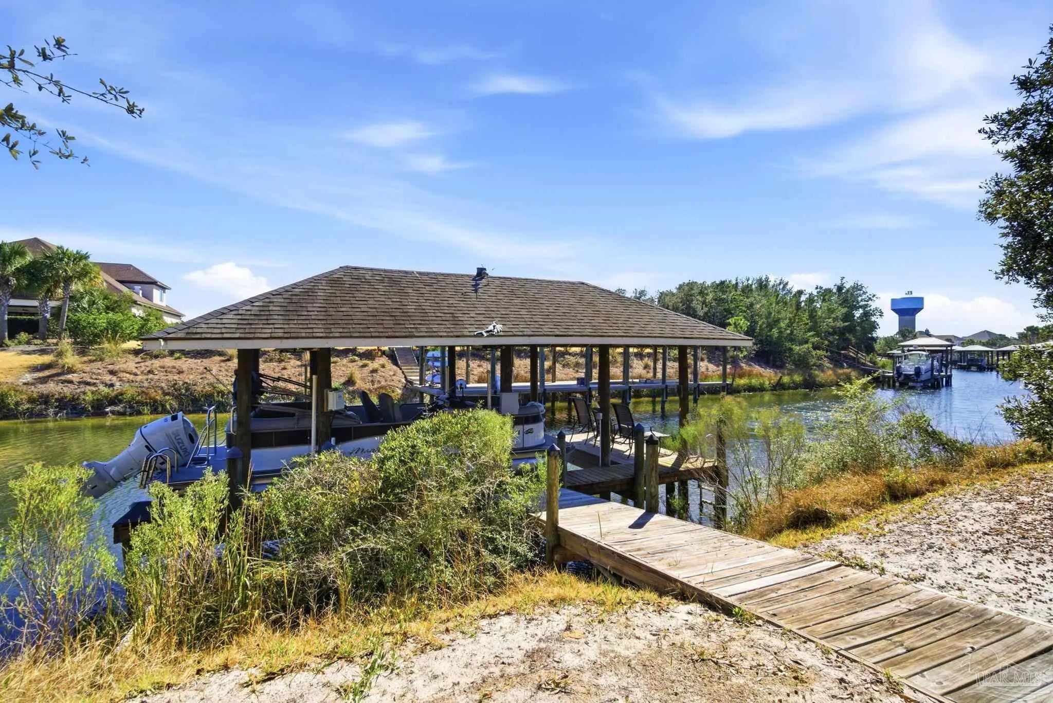 Experience elevated island living on Ono Island in Orange Beach, a private, gated community celebrated for its exclusiveness, privacy, & natural beauty. This 1 story coastal enclave offers a lifestyle unlike anywhere else in Coastal Alabama, where boating, waterfront views, and peaceful surroundings define everyday life. This stunning 3-bedroom, 3-bath waterfront home captures the essence of refined coastal living with water views, a central courtyard, pool, granite waterfall, & canal front boathouse with lift. The driveway is lined with landscaping and offers ample space for extra parking. Step through the wood & wrought iron double doors into a private courtyard that serves as the heart of the residence. A granite waterfall & privacy wall create a breathtaking backdrop, while the covered entertaining area provides the perfect setting for relaxing, hosting guests, or enjoying the coastal breeze around the pool. The primary suite is generously sized & features an elegant ensuite with dual vanities, white Carrara marble countertops, custom cabinetry, a tiled walk in shower, & a private water closet. A third bedroom has been converted into a home office with built in bookshelves, offering flexibility for work or added living space. Designed with entertaining & everyday comfort in mind, the open living & kitchen area offers an inviting layout ideal for gatherings & NEW HVAC offers peace of mind. The kitchen features custom cabinetry, white Carrara marble countertops, a Wolf gas range & hood, Sub Zero refrigerator, wine cooler, & large island with built in storage & a discreet trash bin. Concrete flooring throughout the home adds to the modern coastal aesthetic & low maintenance appeal. Enjoy waterfront living outdoors with private pier, covered boathouse/boat slip with lift, providing easy access to nearby waterways & endless days on the water. Embrace an incredible waterfront way of life. See for yourself - call today!
