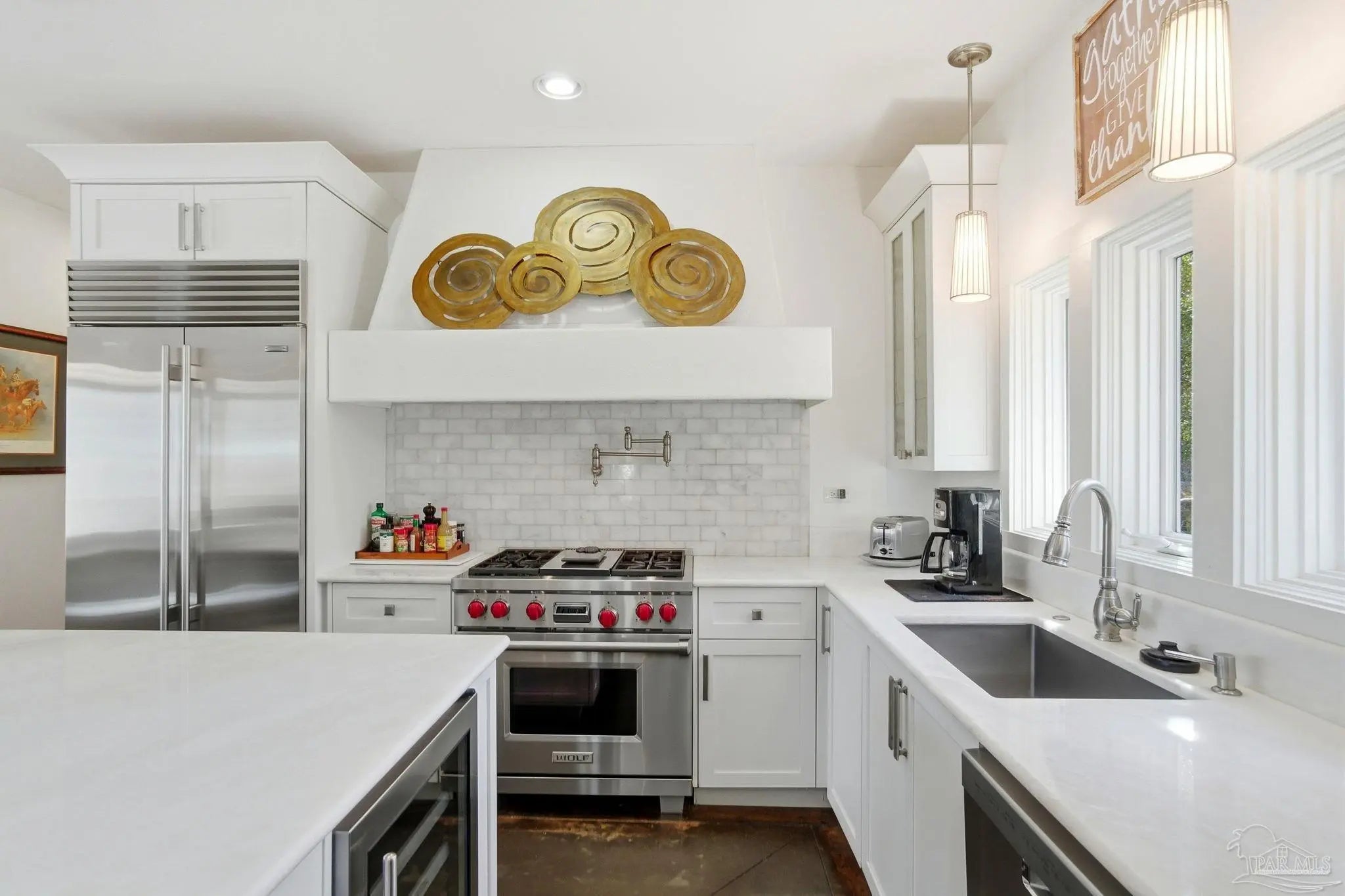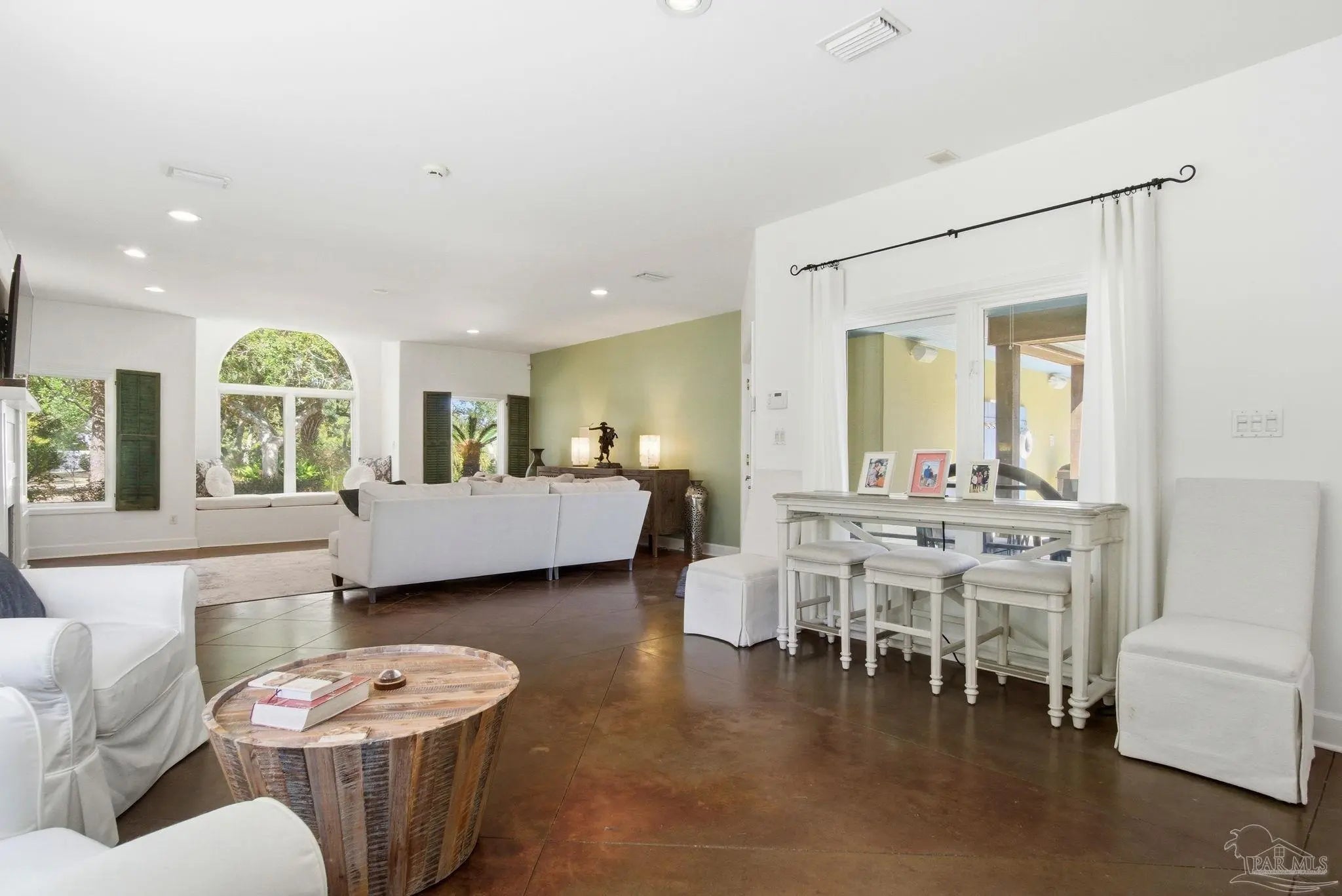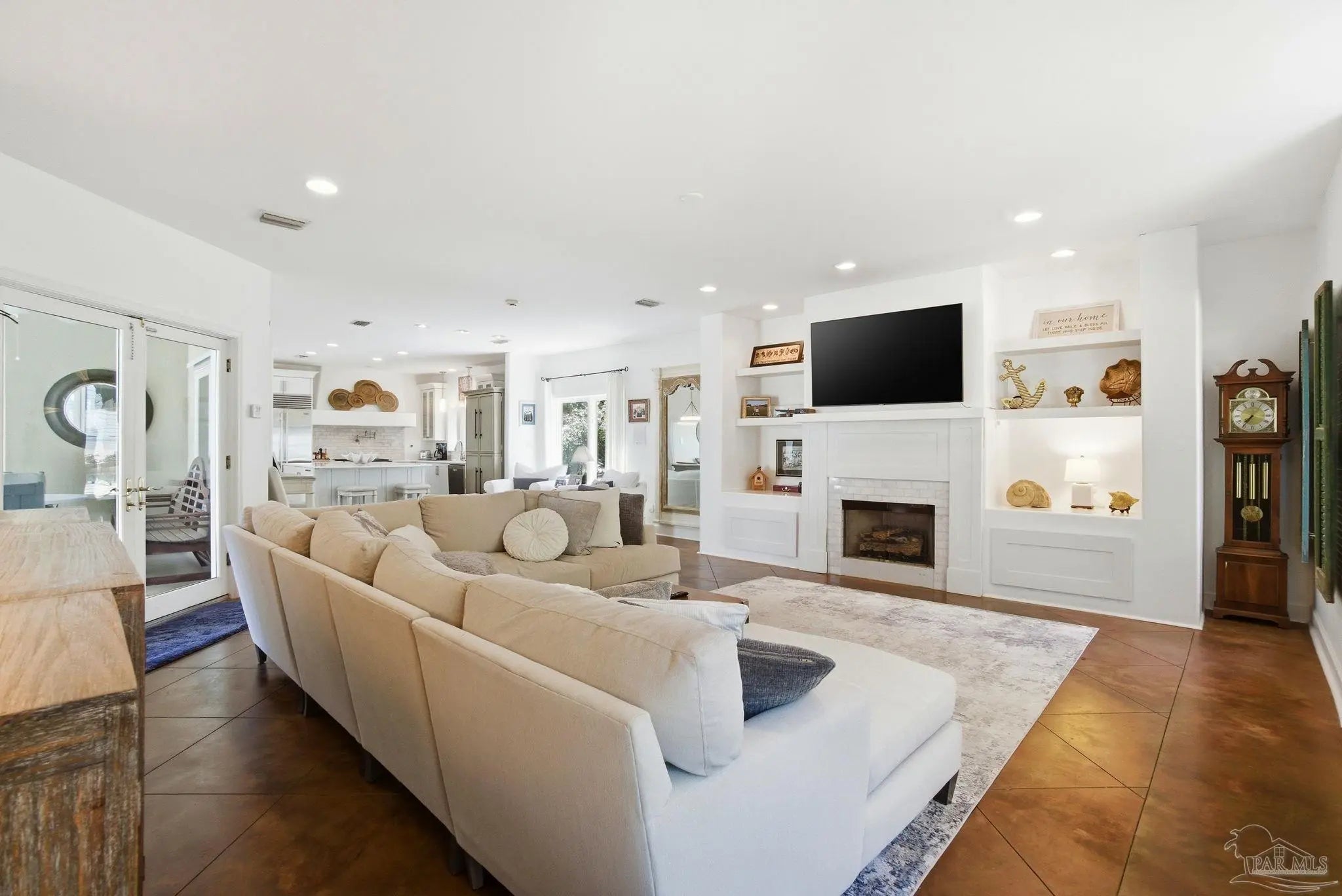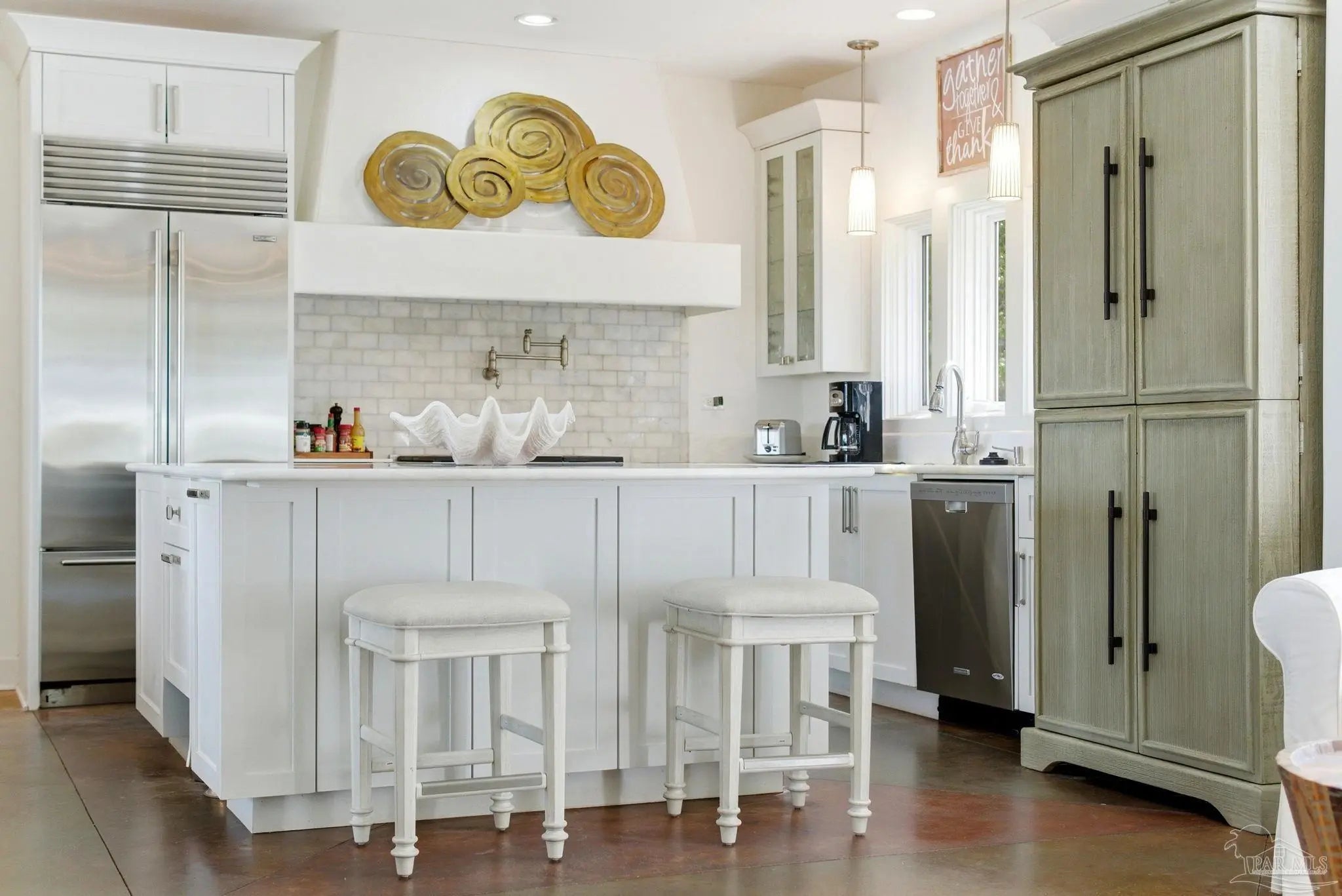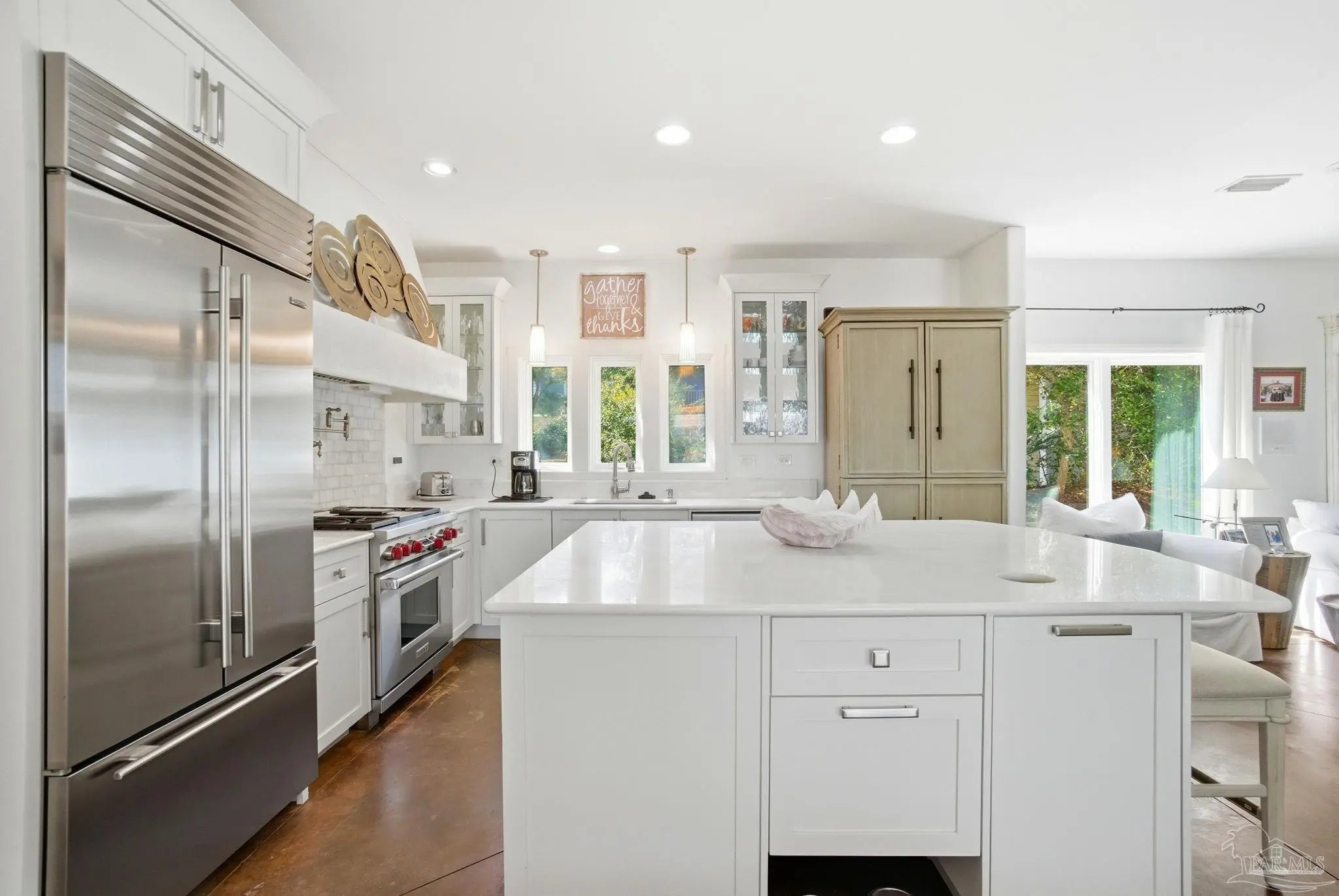 Experience elevated island living on Ono Island in Orange Beach, a private, gated community celebrated for its exclusiveness, privacy, & natural beauty. This 1 story coastal enclave offers a lifestyle unlike anywhere else in Coastal Alabama, where boating, waterfront views, and peaceful surroundings define everyday life. This stunning 3-bedroom, 3-bath waterfront home captures the essence of refined coastal living with water views, a central courtyard, pool, granite waterfall, & canal front boathouse with lift. The driveway is lined with landscaping and offers ample space for extra parking. Step through the wood & wrought iron double doors into a private courtyard that serves as the heart of the residence. A granite waterfall & privacy wall create a breathtaking backdrop, while the covered entertaining area provides the perfect setting for relaxing, hosting guests, or enjoying the coastal breeze around the pool. The primary suite is generously sized & features an elegant ensuite with dual vanities, white Carrara marble countertops, custom cabinetry, a tiled walk in shower, & a private water closet. A third bedroom has been converted into a home office with built in bookshelves, offering flexibility for work or added living space. Designed with entertaining & everyday comfort in mind, the open living & kitchen area offers an inviting layout ideal for gatherings & NEW HVAC offers peace of mind. The kitchen features custom cabinetry, white Carrara marble countertops, a Wolf gas range & hood, Sub Zero refrigerator, wine cooler, & large island with built in storage & a discreet trash bin. Concrete flooring throughout the home adds to the modern coastal aesthetic & low maintenance appeal. Enjoy waterfront living outdoors with private pier, covered boathouse/boat slip with lift, providing easy access to nearby waterways & endless days on the water. Embrace an incredible waterfront way of life. See for yourself - call today!