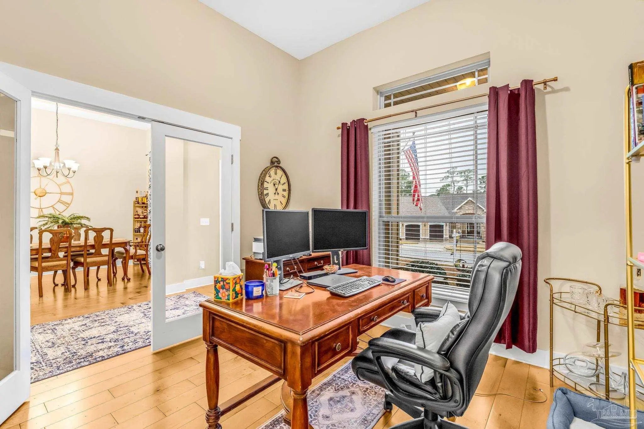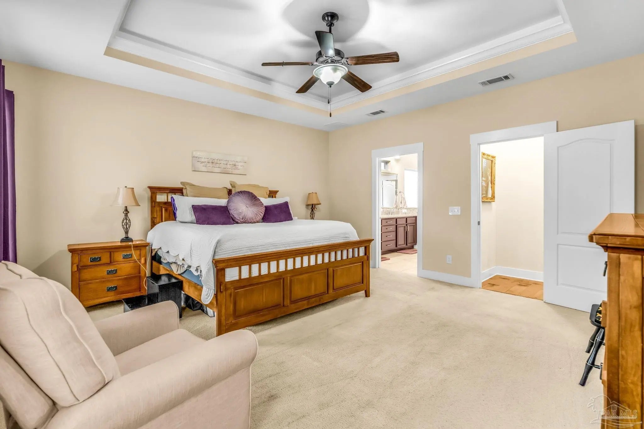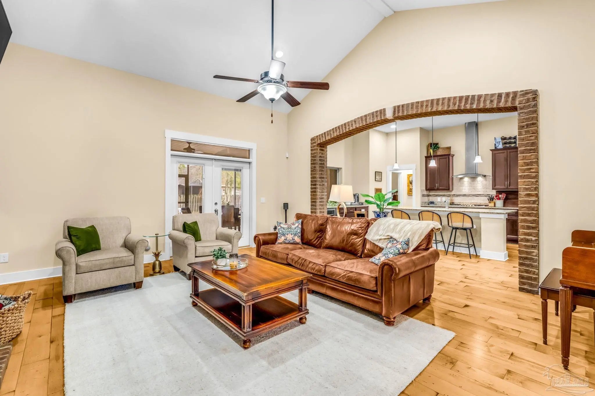 - Bookcases, Cathedral Ceiling(s), Ceiling Fan(s), Crown Molding, High Ceilings