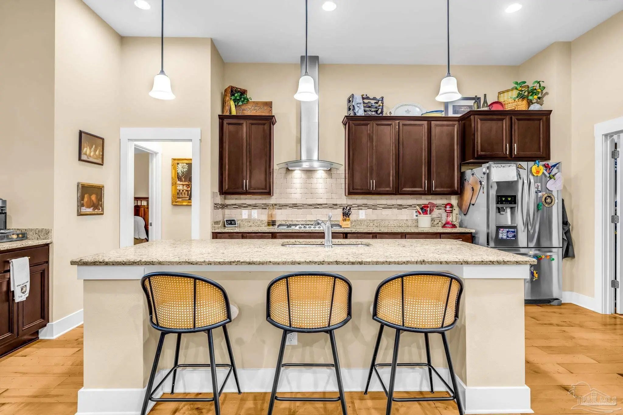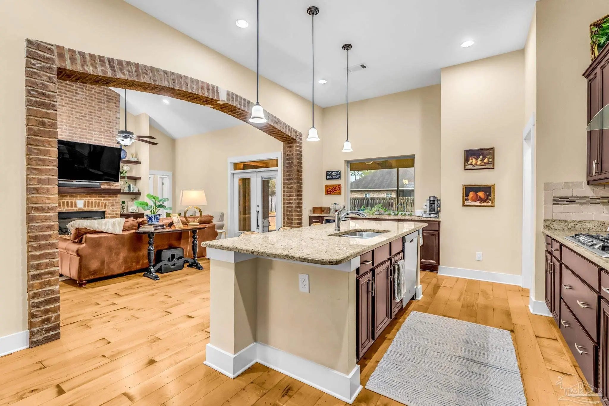 TURN KEY READY! .Located within the prestigious, gated enclave of Nature Trail, this distinguished all-brick 5-bedroom, 3-bath residence offers elevated design and refined comfort in one of the area’s most upscale neighborhoods. The home showcases 9’ ceilings, rich hardwood flooring, tile in main living space areas with carpet in the bedrooms. The expansive open living space is anchored by a dramatic floor-to-ceiling brick natural gas fireplace with custom built-in cabinetry, while a striking brick archway elegantly defines the transition into the kitchen, enhancing both architectural character and flow. Set on a premium homesite with ample room for a future in-ground pool, the outdoor living area features a screened & covered porch, complete with wet bar and gas grill connection—designed for sophisticated entertaining. Thoughtful upgrades include oversized gutters, a full irrigation system with dedicated water meter, and a REME HALO whole-house air purification system. Residents of Nature Trail enjoy gated privacy, scenic walking trails, an elegant clubhouse and lodge, fitness center, resort-style pool, tennis and basketball courts, and playground, all surrounded by beautifully preserved natural landscape—offering an exceptional executive lifestyle defined by luxury, exclusivity, and comfort. THIS WILL NOT LAST at this price!